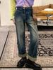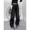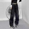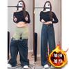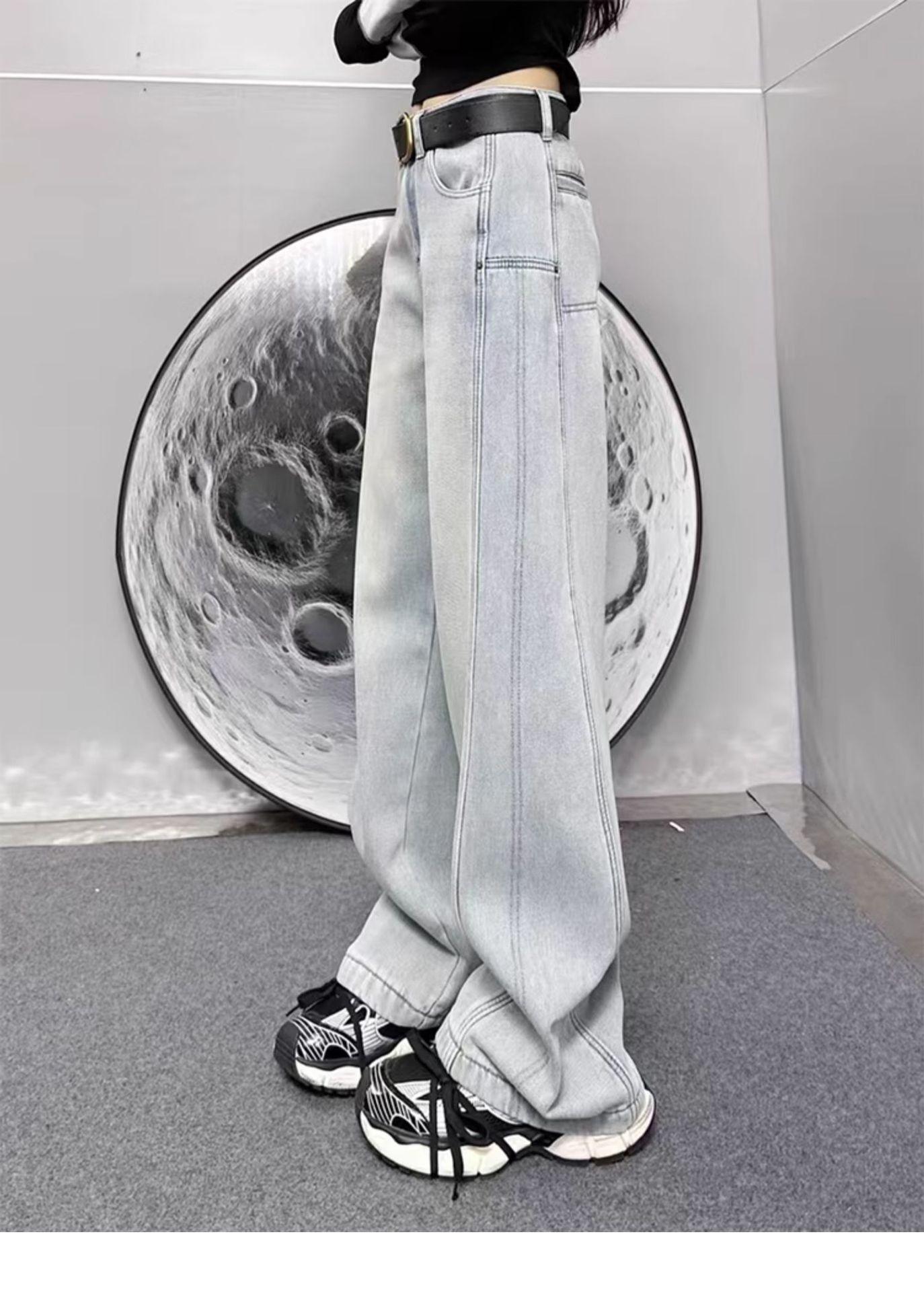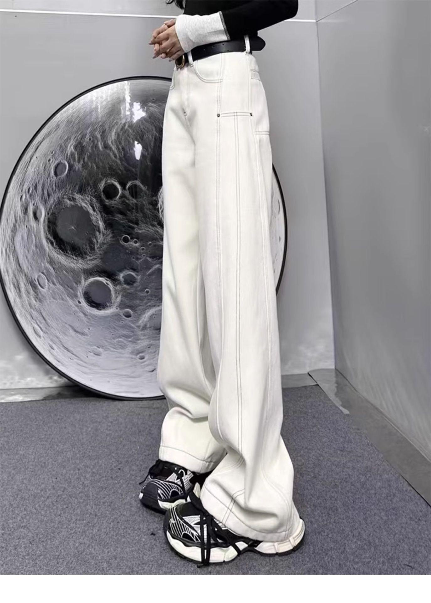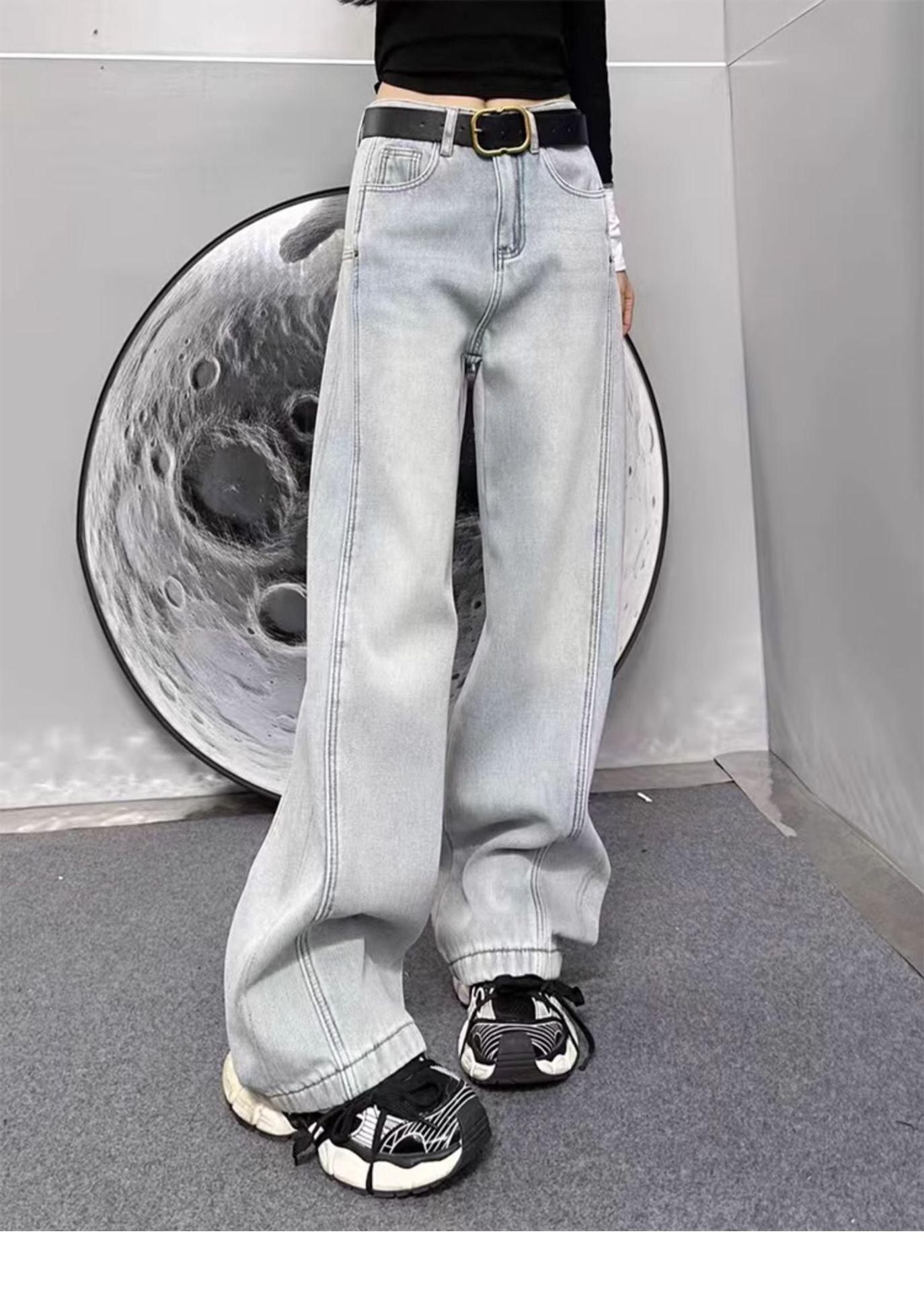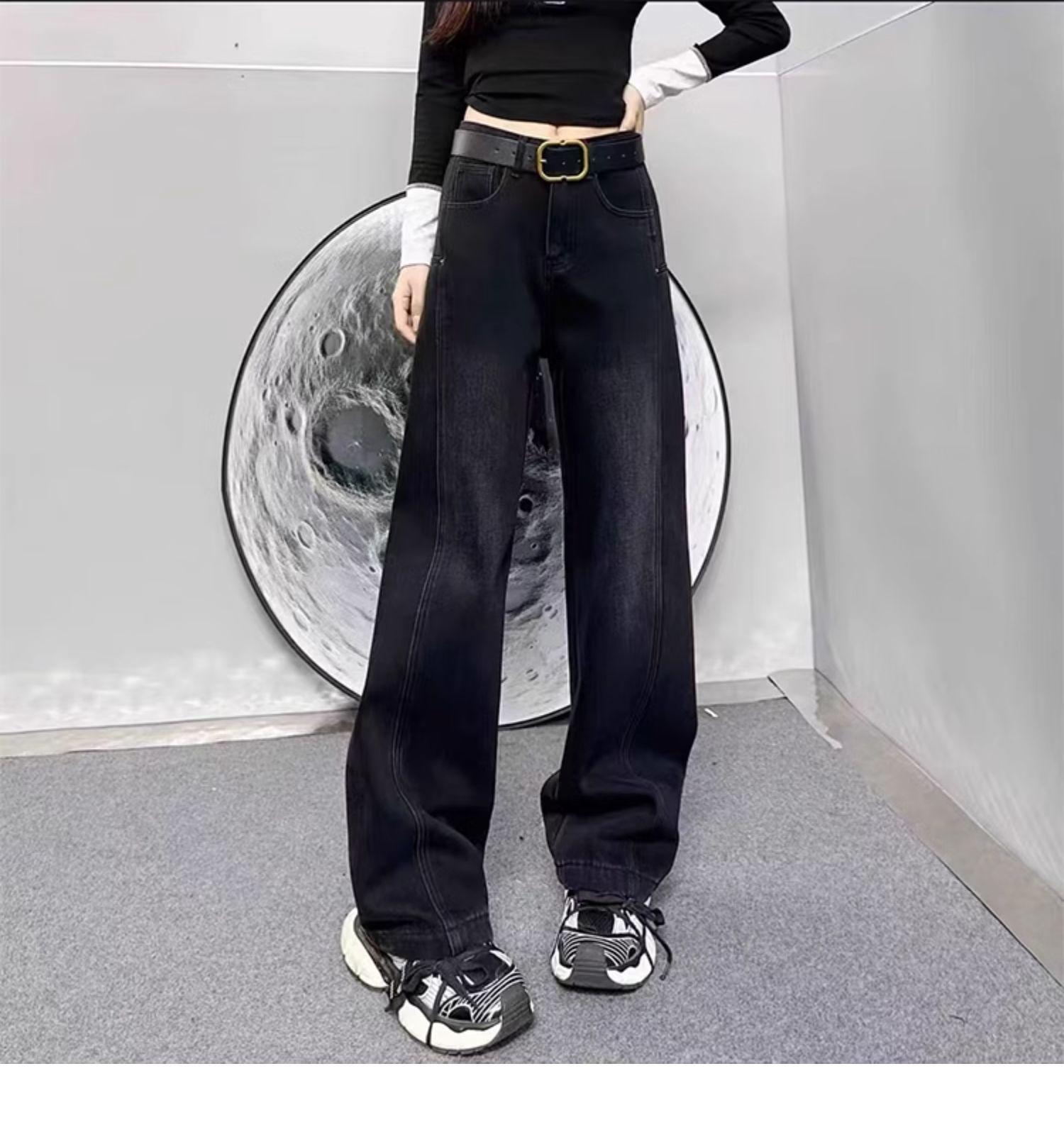 Jeans Rectos de Terciopelo de Talla Grande para Mujer Otoño e Invierno 2025 mm Gorditos Figura de Pera Sueltos Cintura Alta Adelgazantes Pantalones de Pierna Ancha