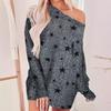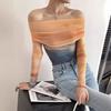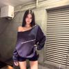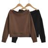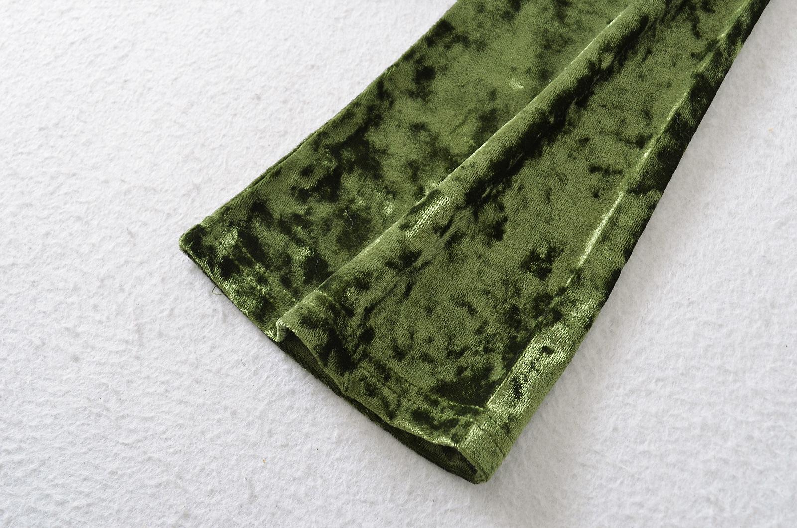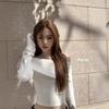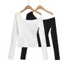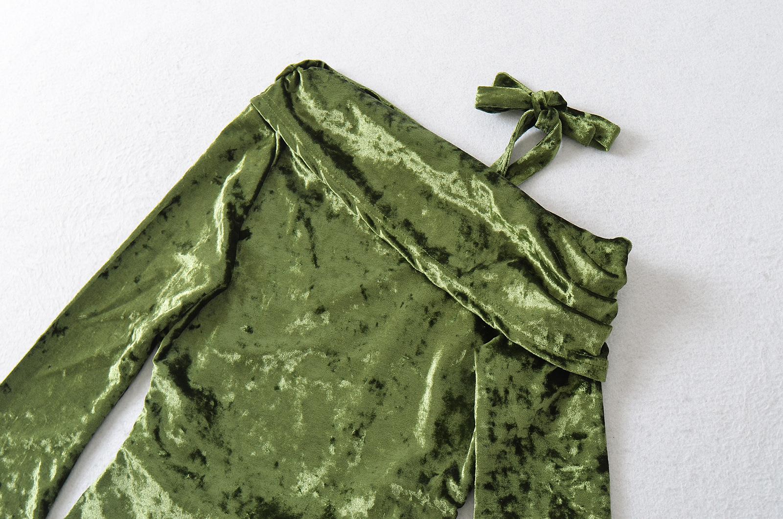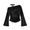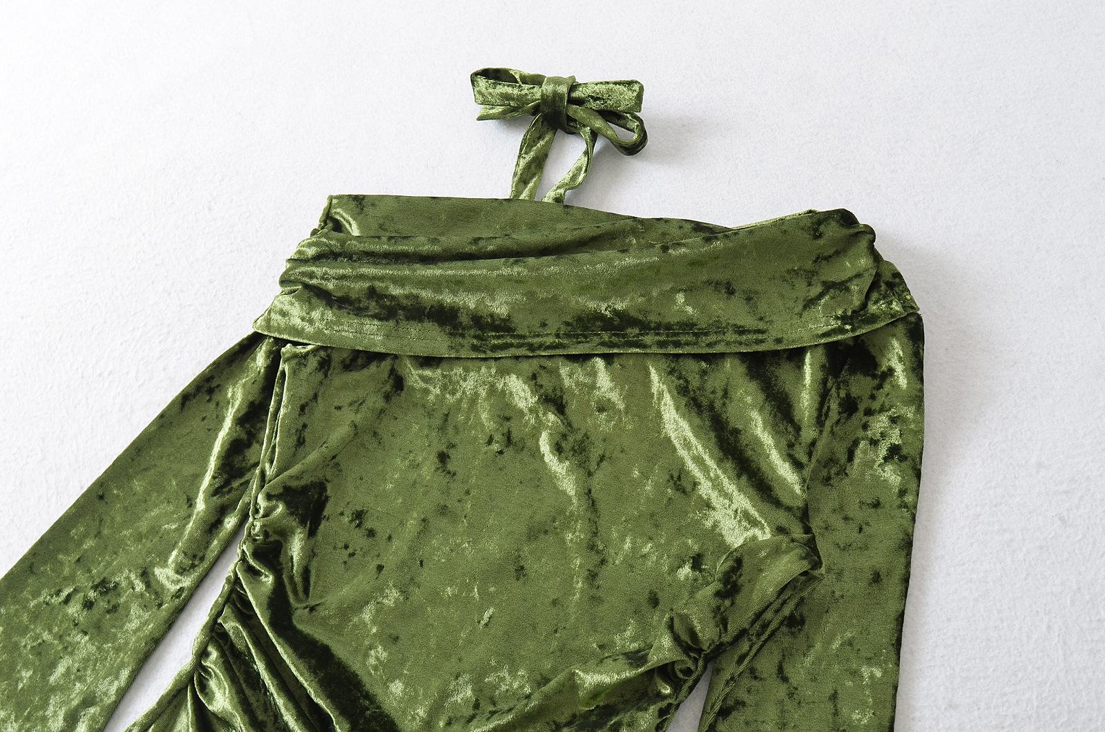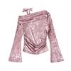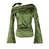 A916-24 Invierno Nuevo Estilo Americano Estilo Deseo Puro Ladrillo Piedra Terciopelo Tirante Inclinado Manga Larga Trompeta Plisada Ajustada Camiseta
