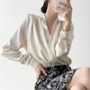 Camisa de manga larga blanca satinada para mujer, primavera y otoño 2025, nuevo diseño, cuello en punta pequeño, camisa profesional para viajes diarios.