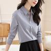 Camisa informal elegante a rayas para mujer, estilo profesional, para ir al trabajo, cuello polo holgado, manga larga, primavera 2025