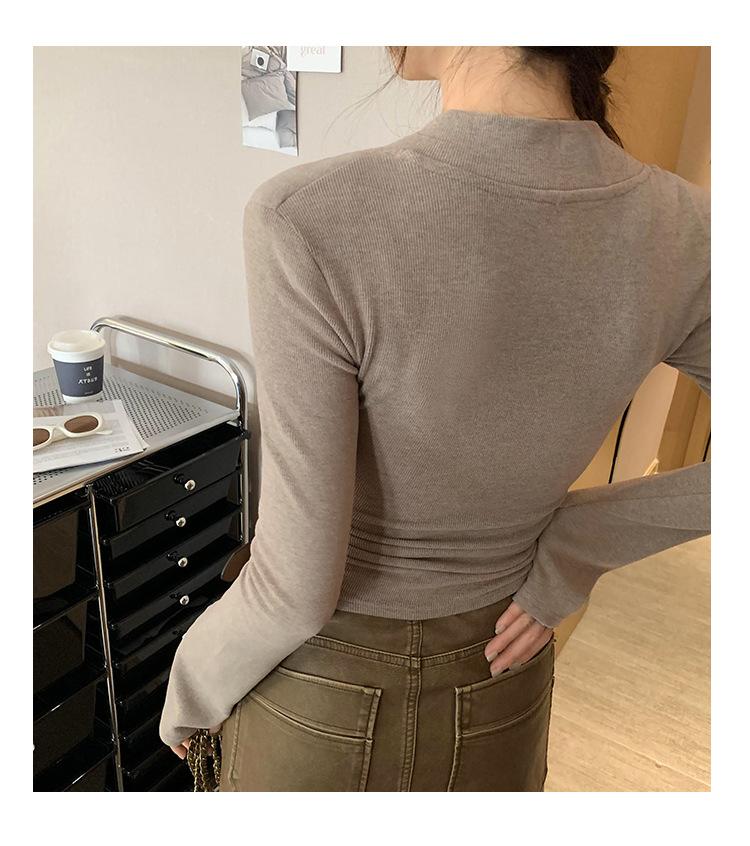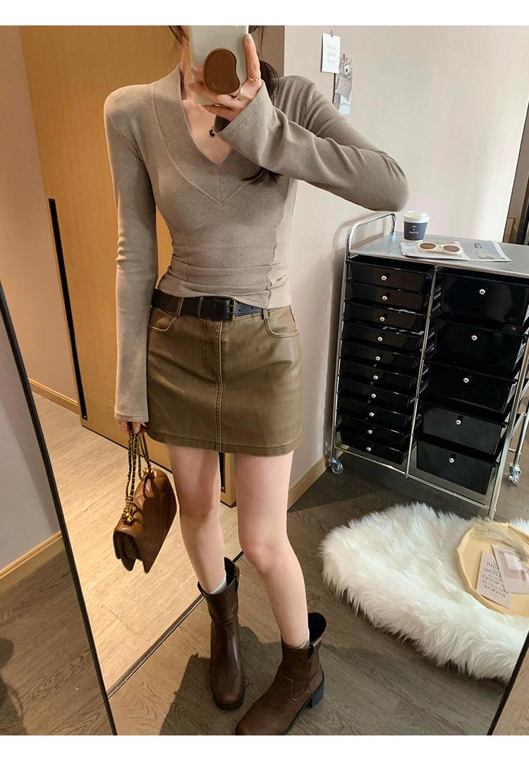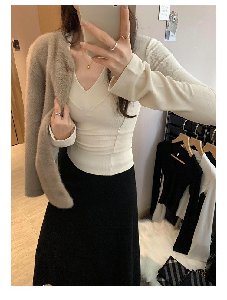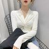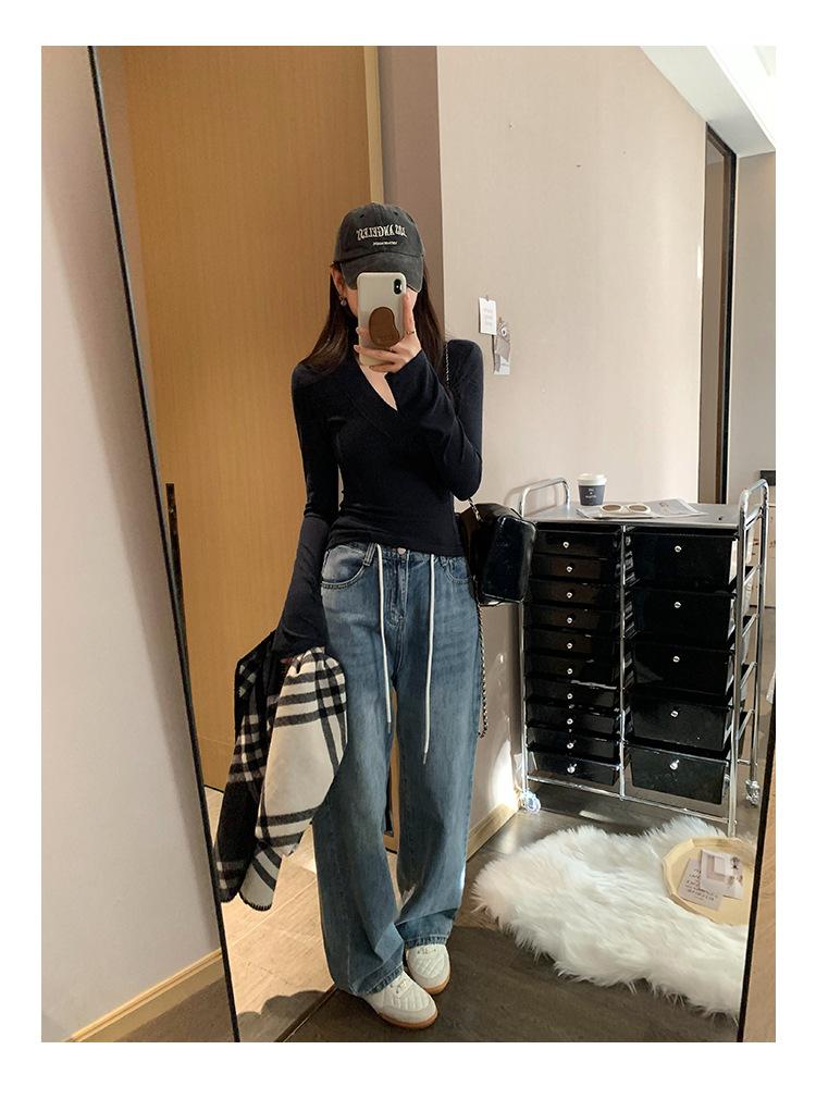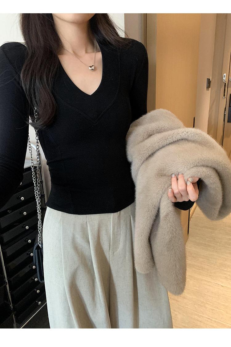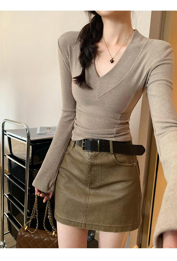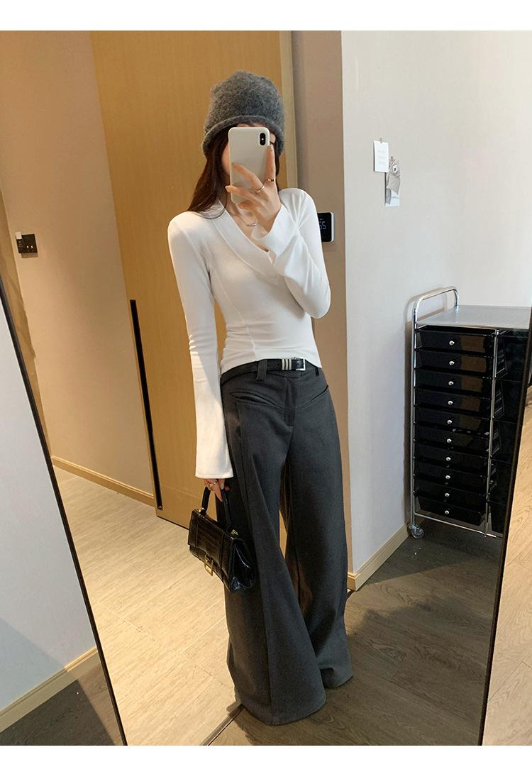 Estilo Yujie Sexy Ajustado con Hombreras Cuello en V Camiseta Básica para Mujer Estilo Otoño 2025 Camiseta Interior para Mujer