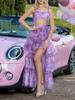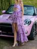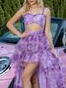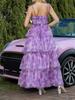 Vestido elegante de malla estilo princesa con estampado de princesa, falda con volantes y tirantes, estilo europeo y americano, 2025
