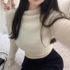 Camiseta de Fondo de Punto de Manga Larga para Mujer de Cachemira de Cuello Alto Diseño Torcido de Hilo Ajuste Holgado Cálida a la Moda Interior