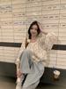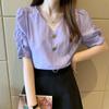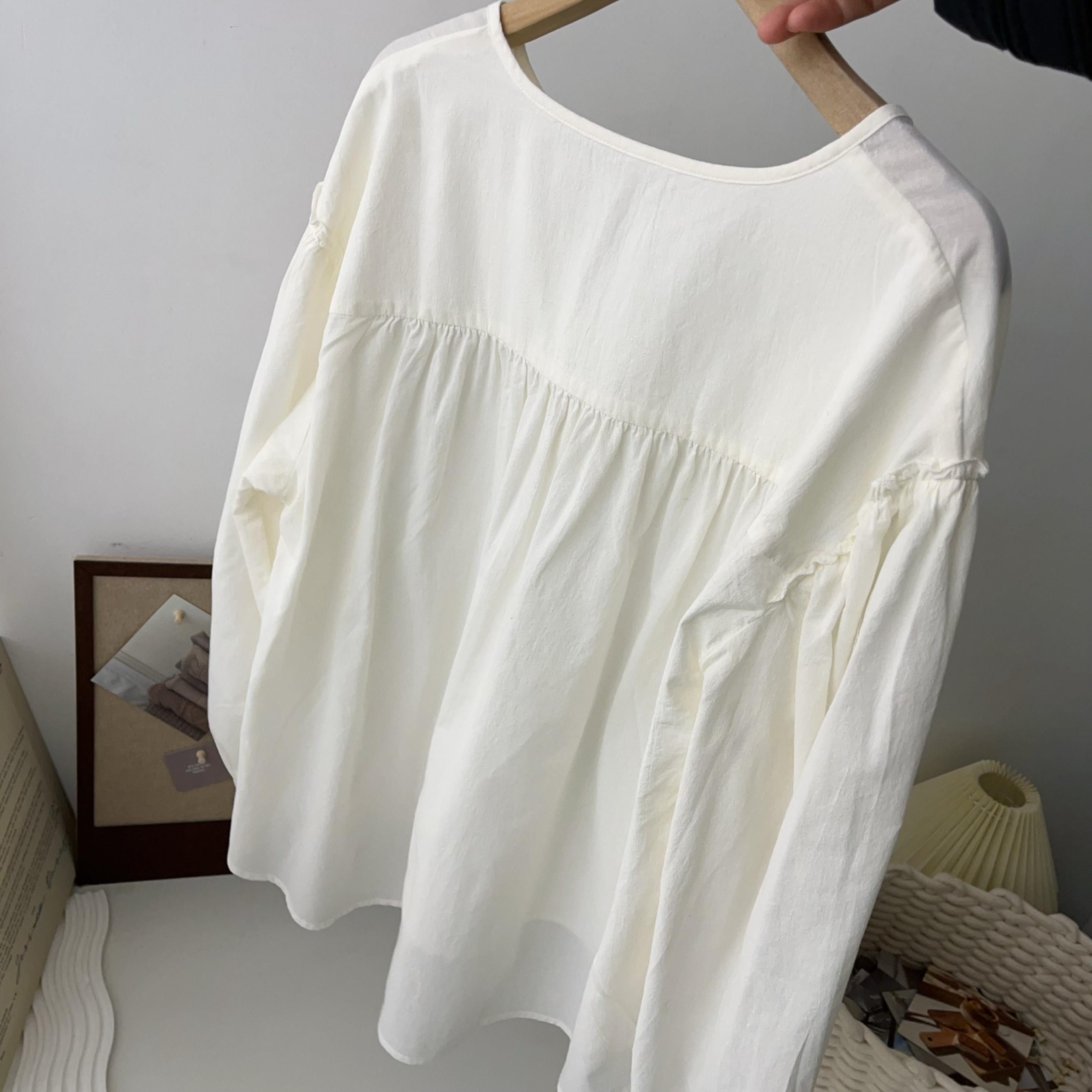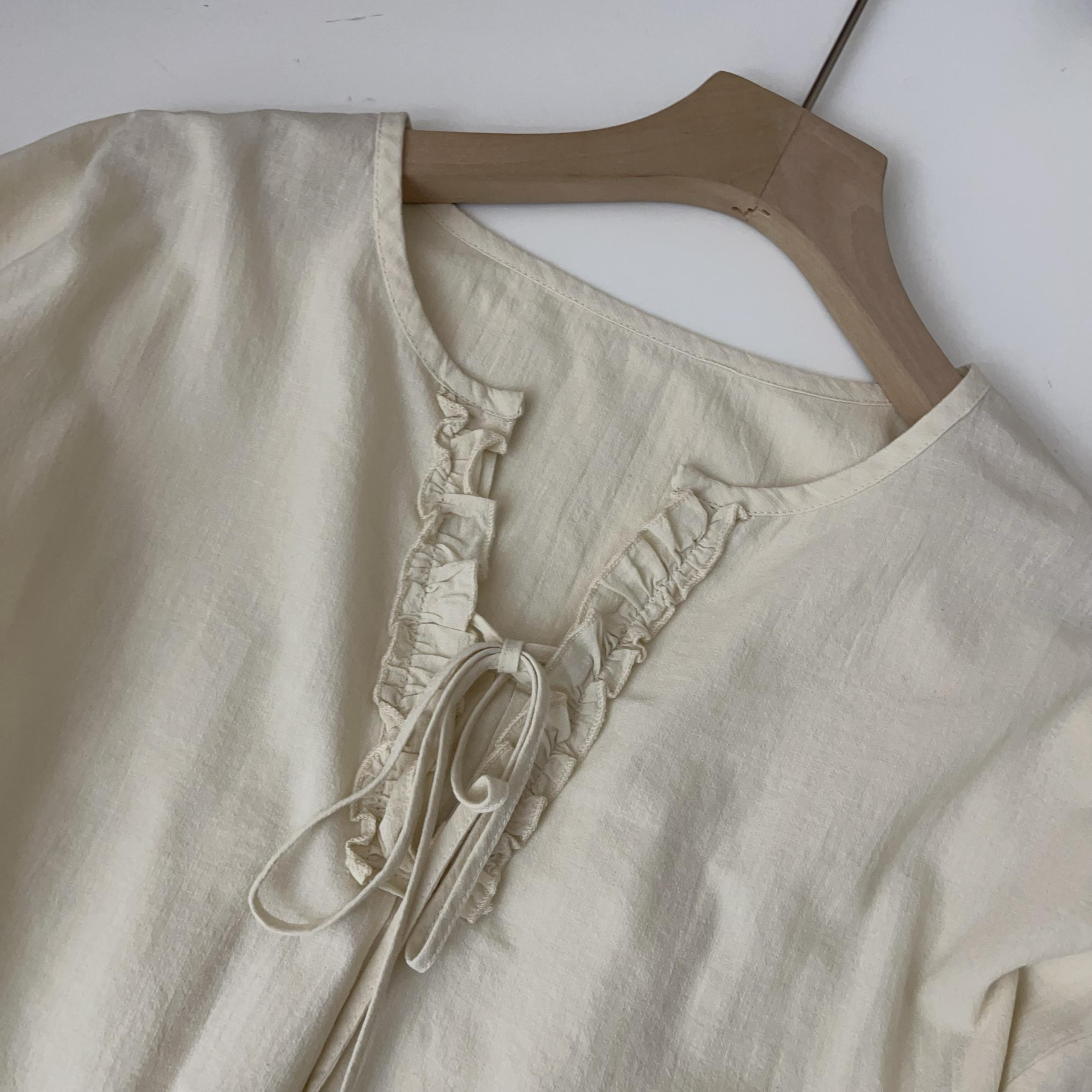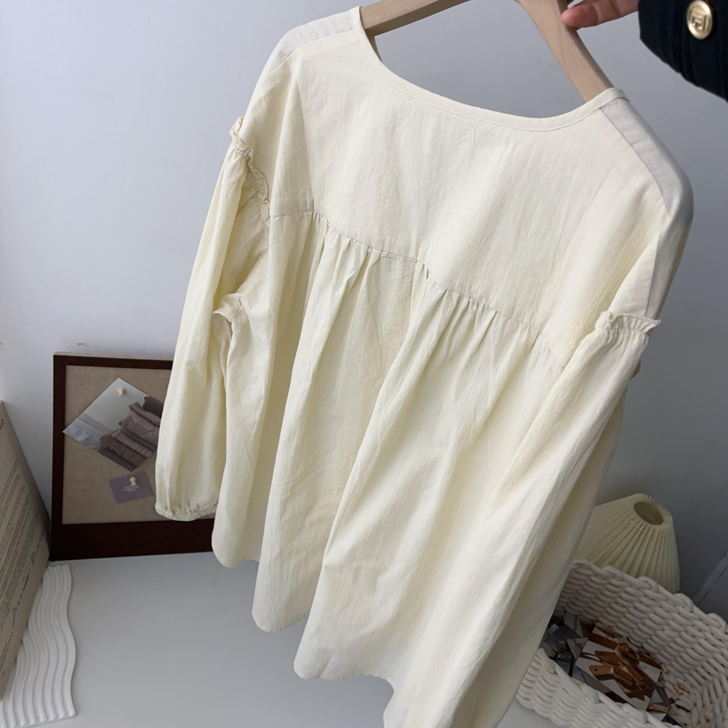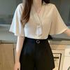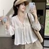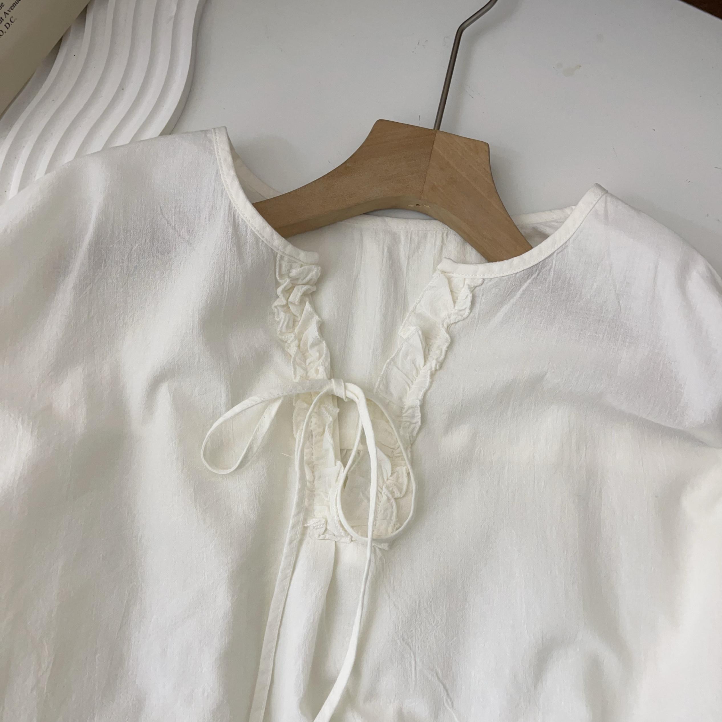 Camisa holgada y adelgazante de estilo coreano para mujer, con cuello en V, con cordones y combinable, para principios de primavera