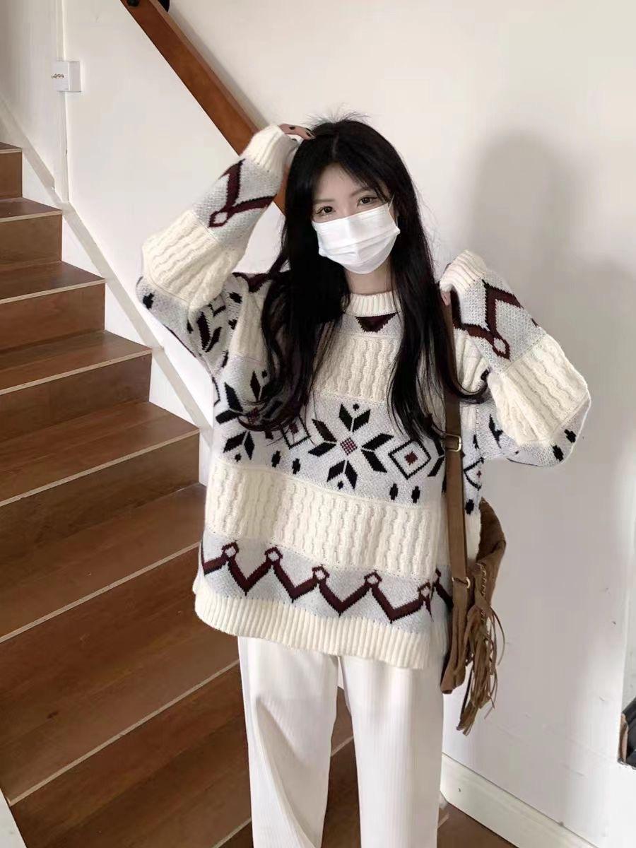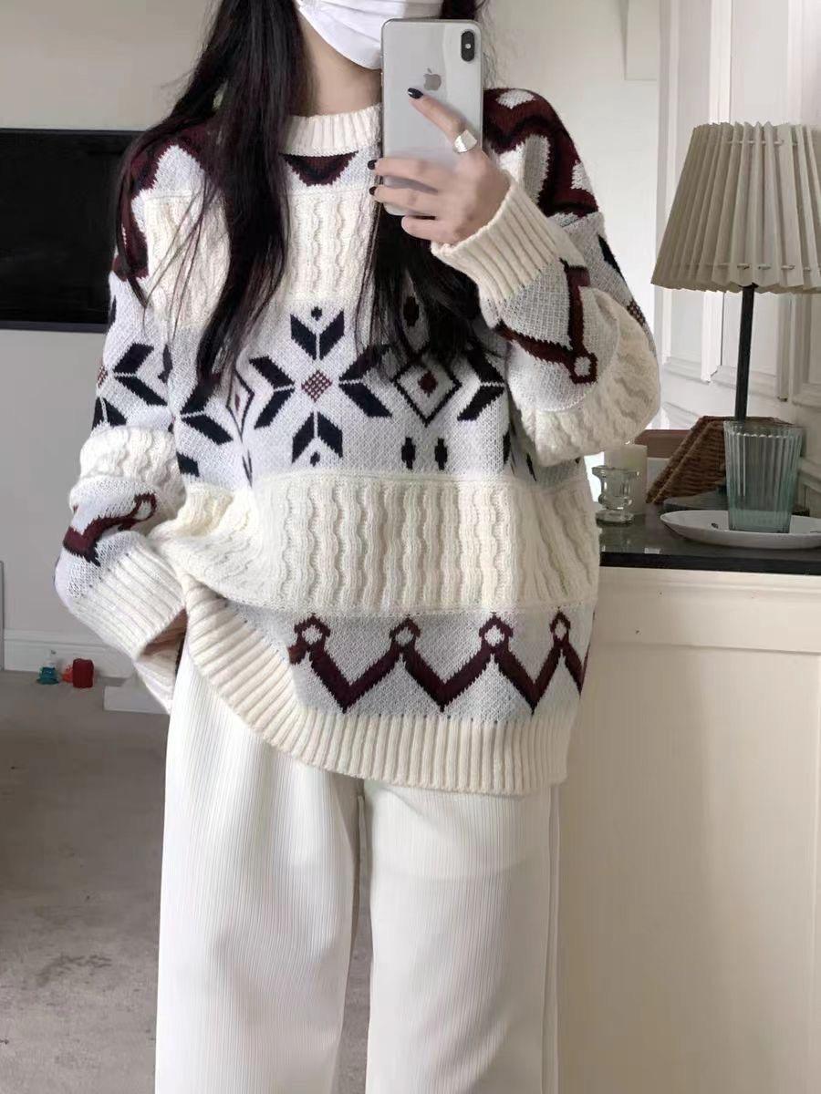 Suéter Delicado y Transpirable de Manga Larga para Mujer Invierno 2024 Nuevo Sentido del Diseño para Uso Exterior Holgado Suave y Ceroso Top de Punto