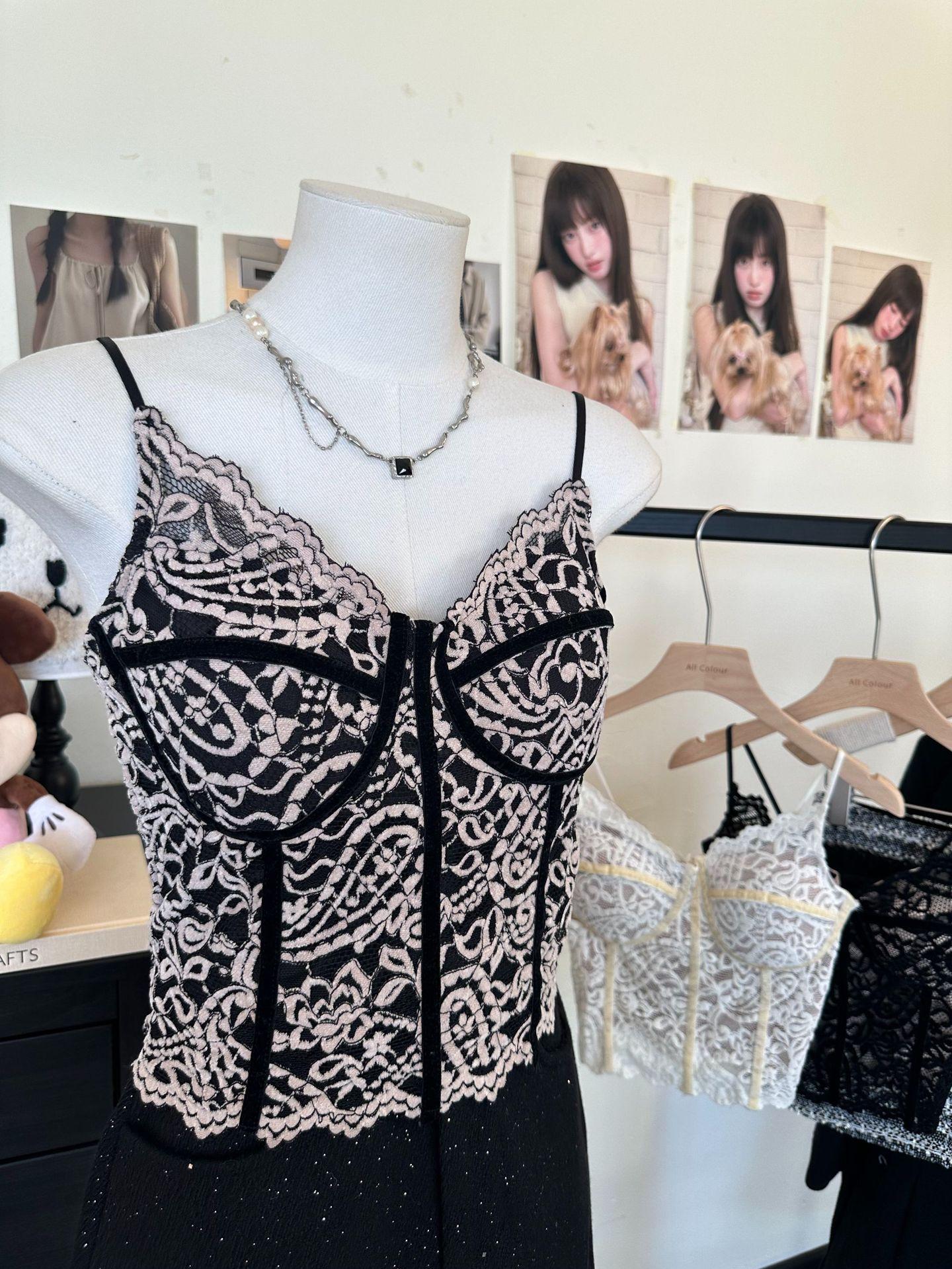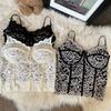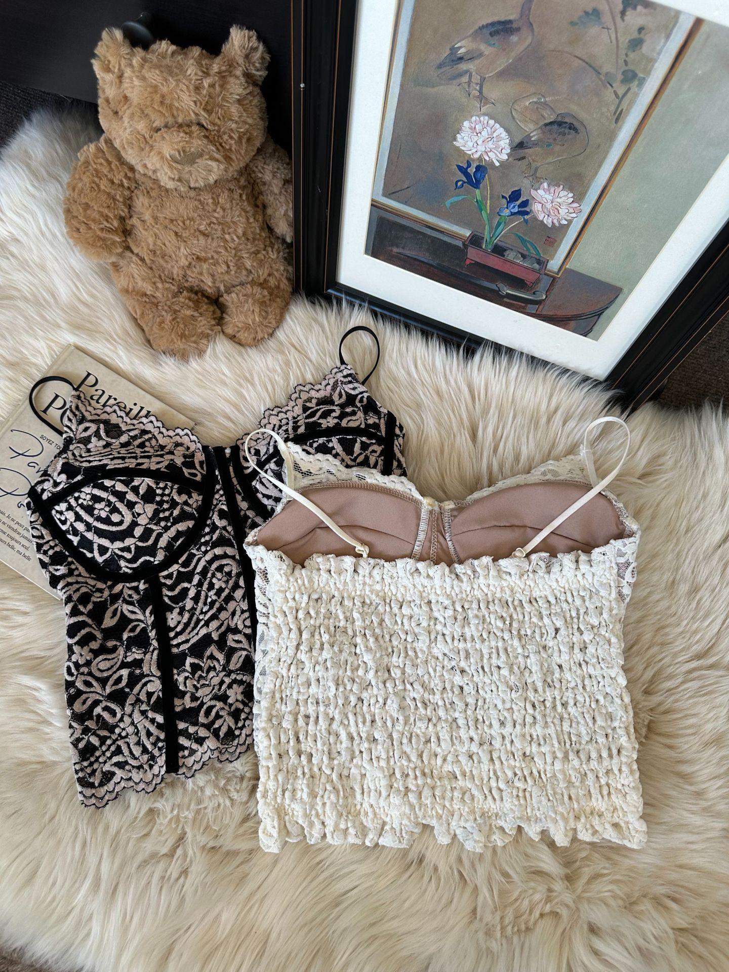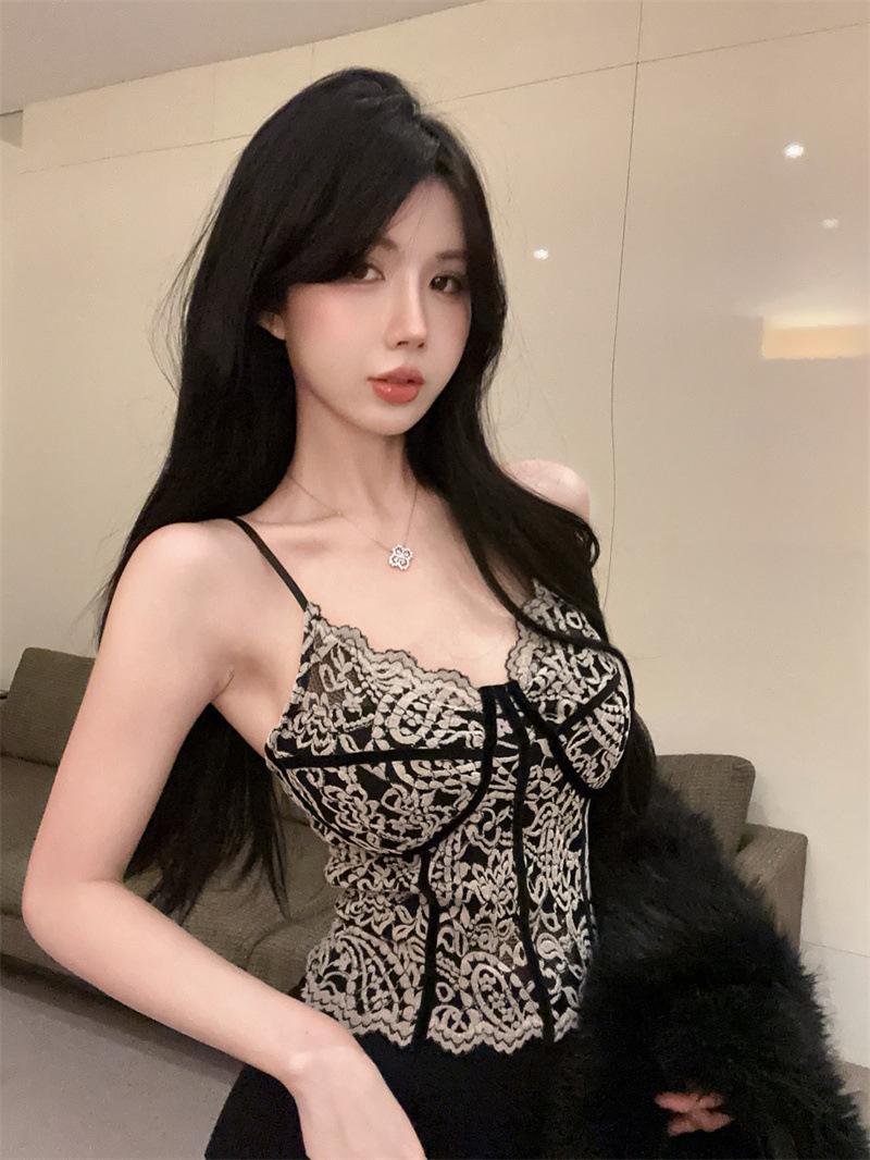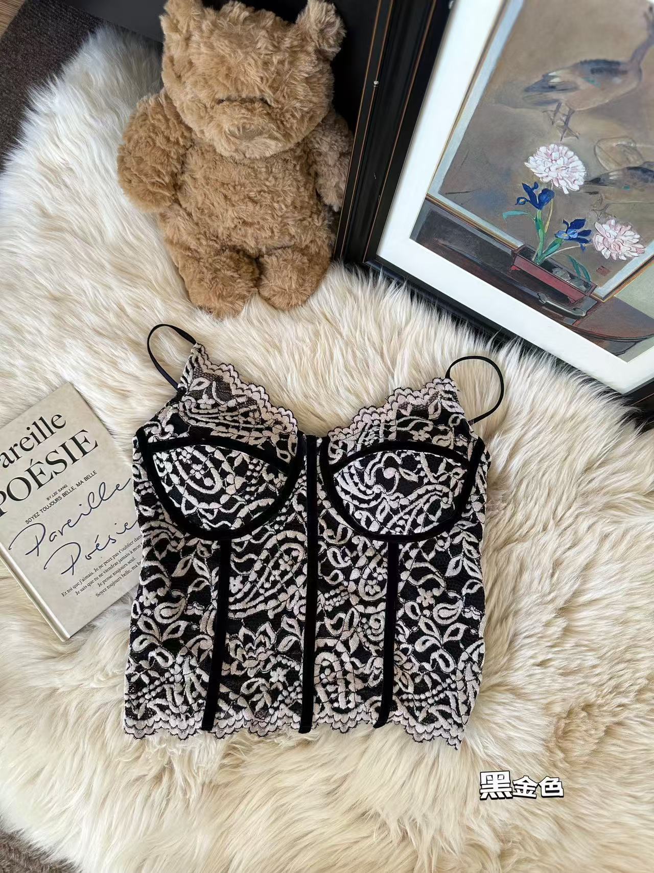 Camisola de Encaje Bordado Pure Desire para Mujer Estilo Francés Estilo Socialité Spice Girl Reductora Top Base con Almohadilla en el Pecho para Mujer 2258