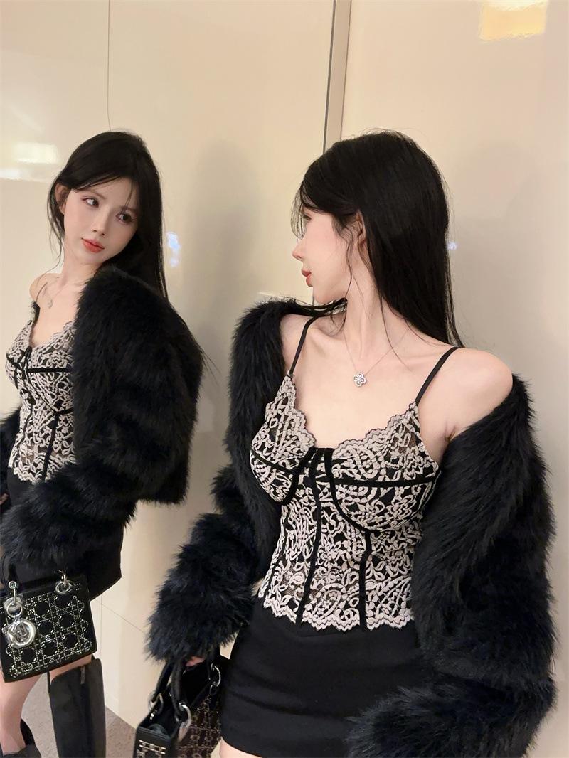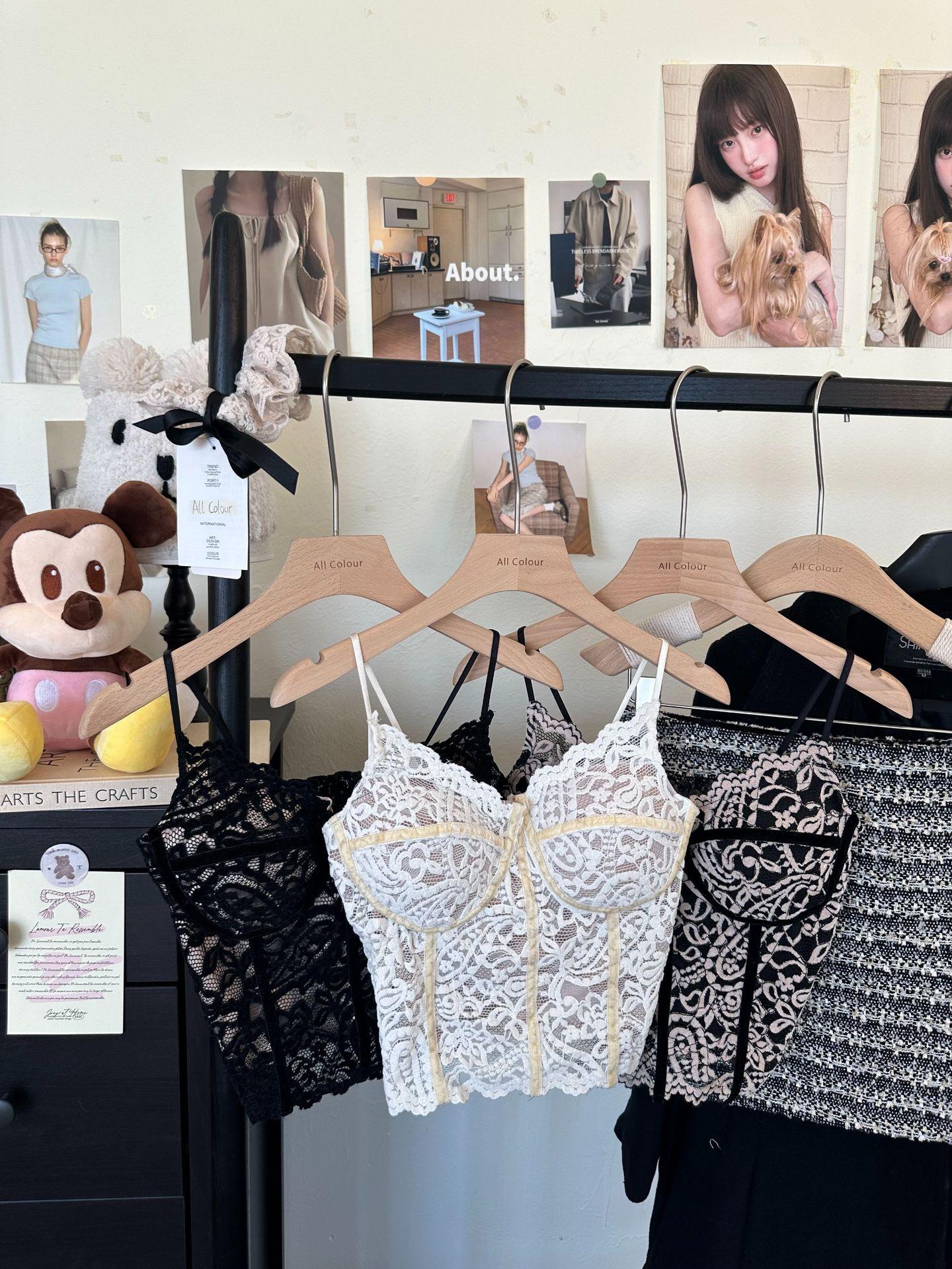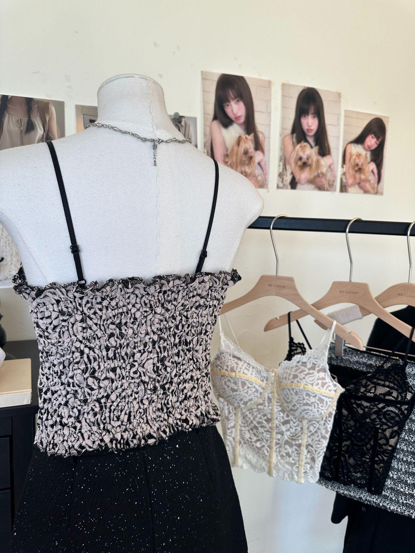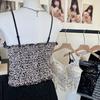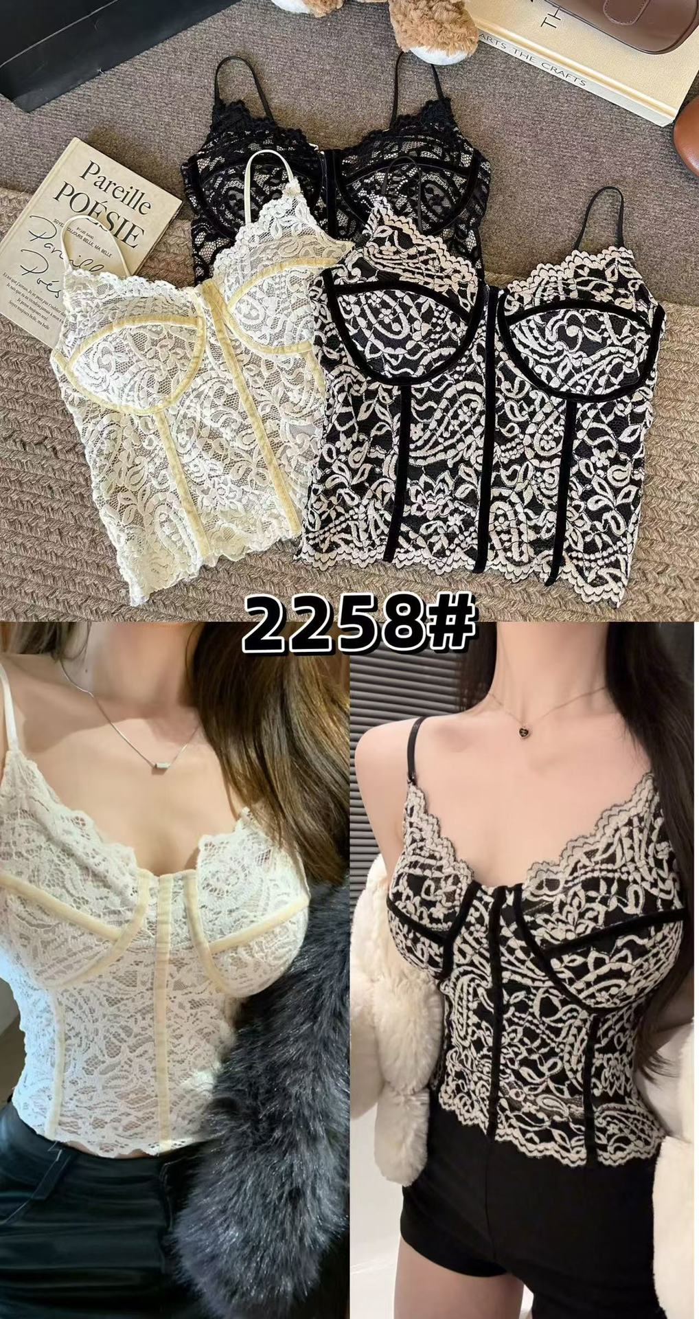Camisola de Encaje Bordado Pure Desire para Mujer Estilo Francés Estilo Socialité Spice Girl Reductora Top Base con Almohadilla en el Pecho para Mujer 2258
