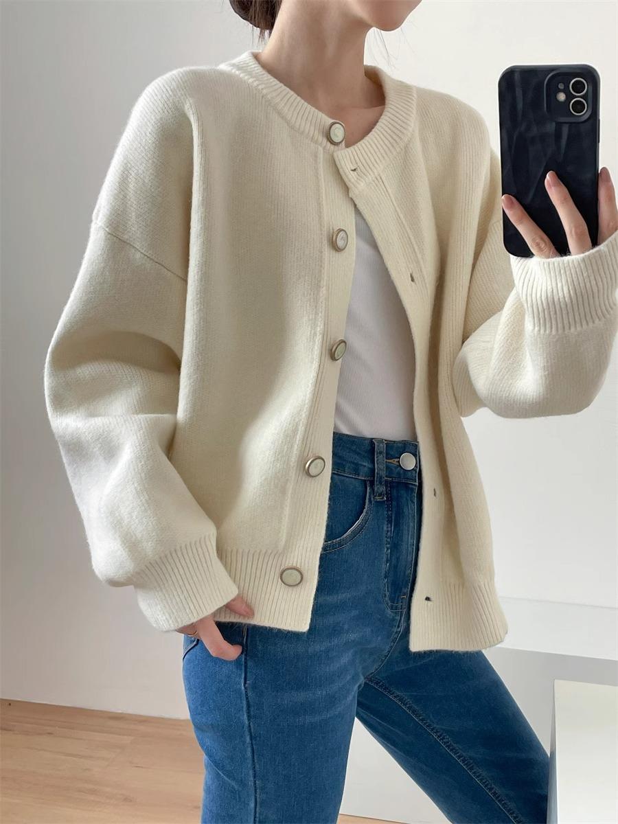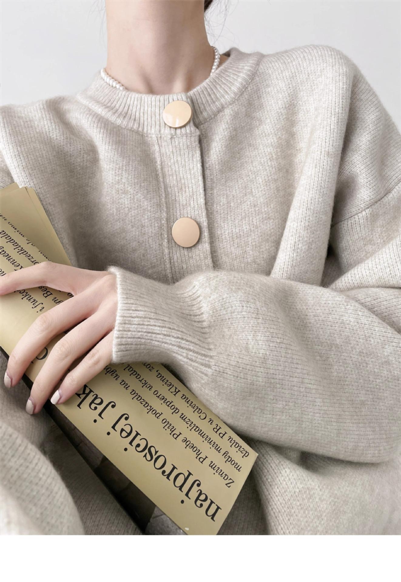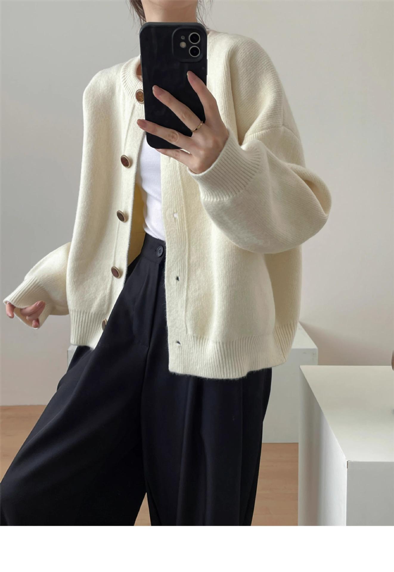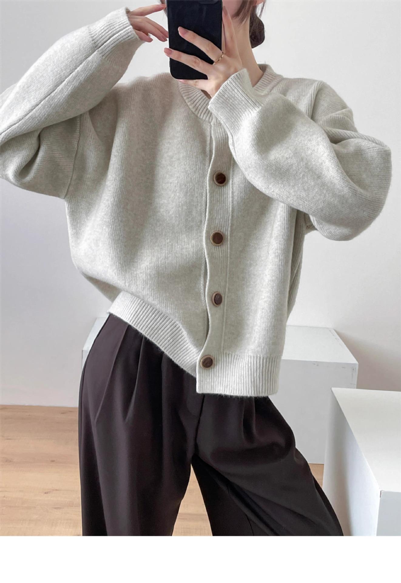 Chaqueta tipo cárdigan de punto de una sola fila con botones grandes, color liso, estilo holgado, cuello redondo, para otoño e invierno