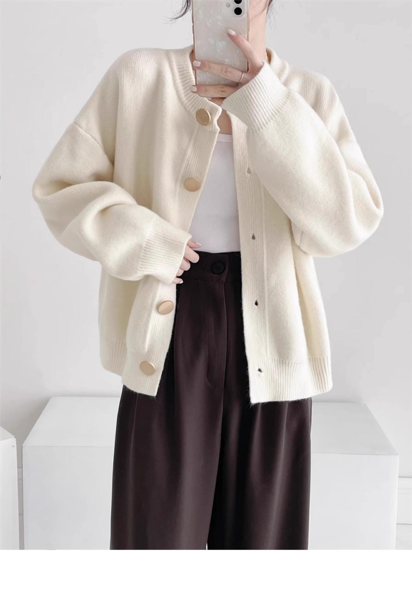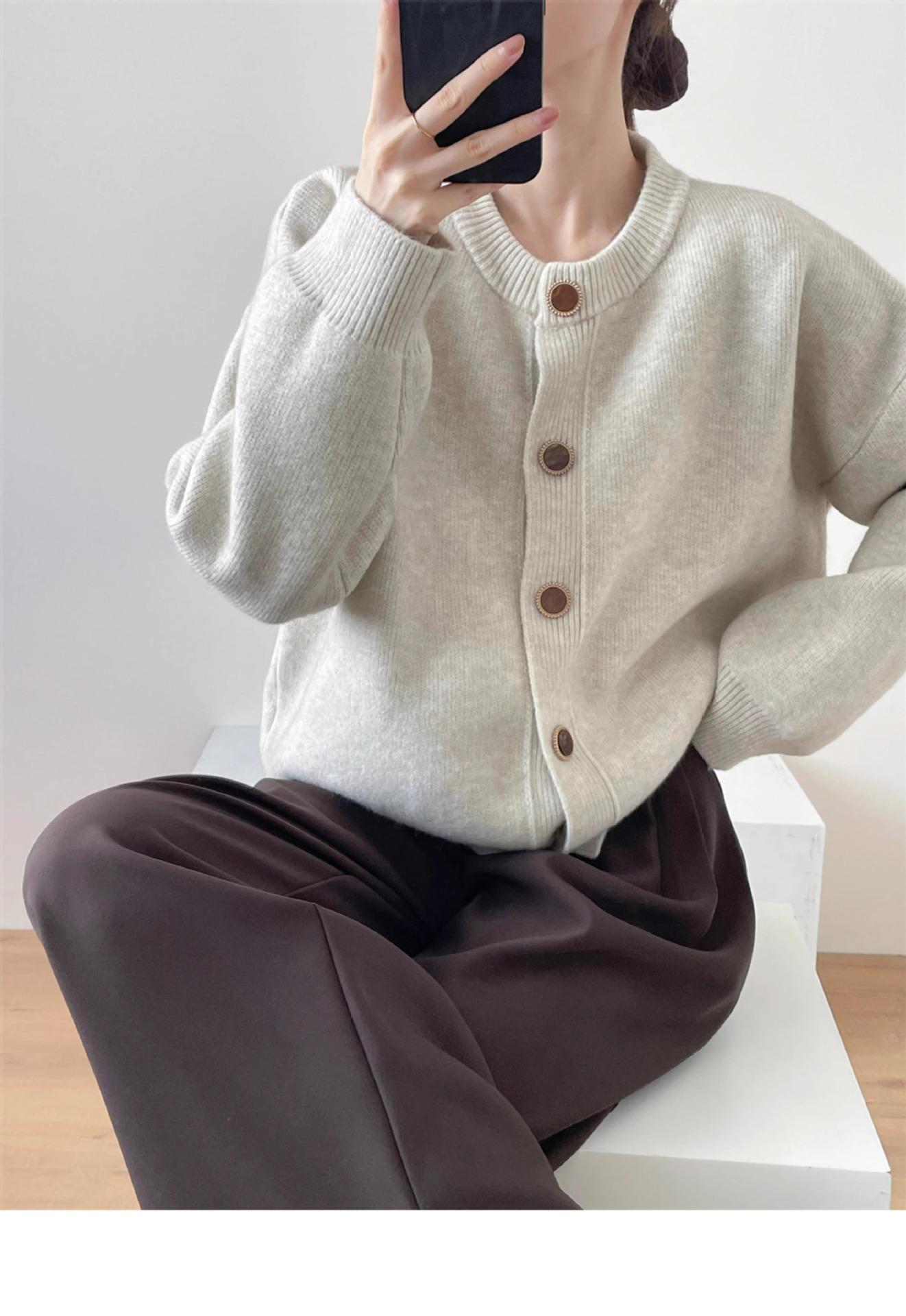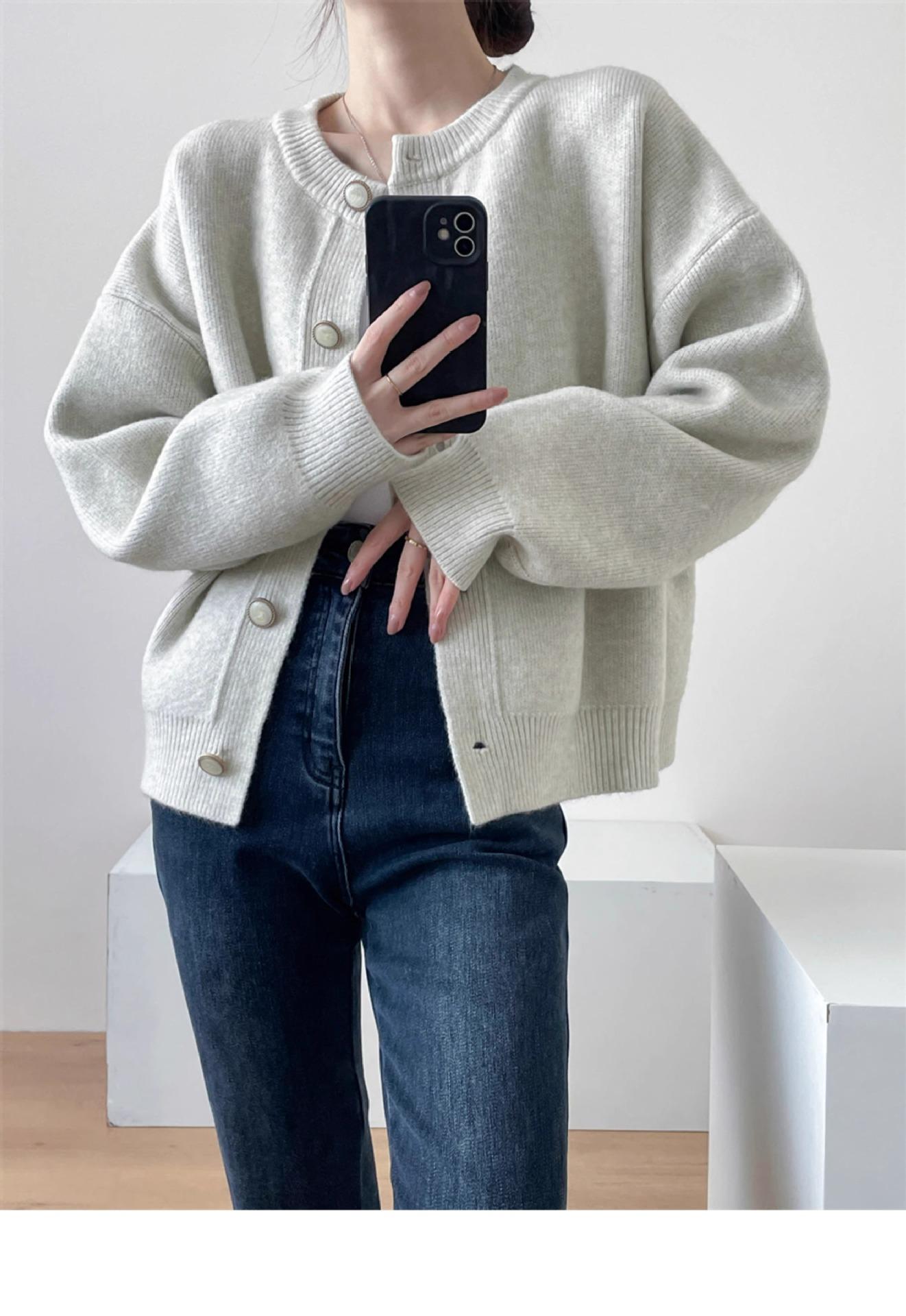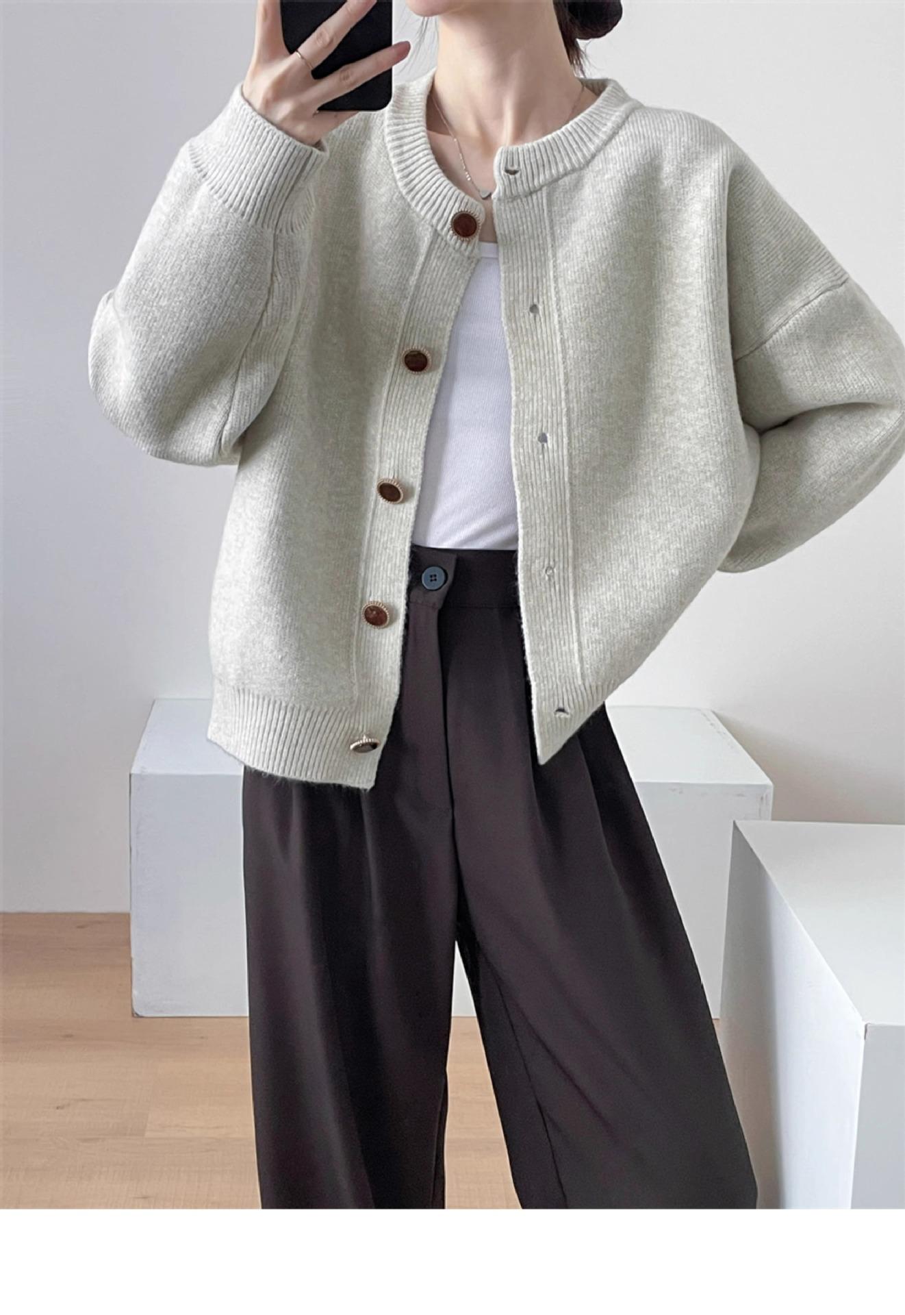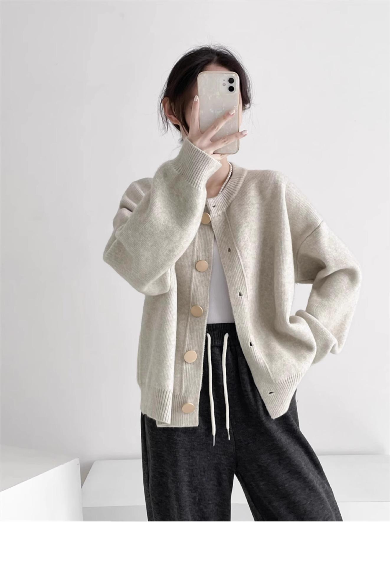 Chaqueta tipo cárdigan de punto de una sola fila con botones grandes, color liso, estilo holgado, cuello redondo, para otoño e invierno