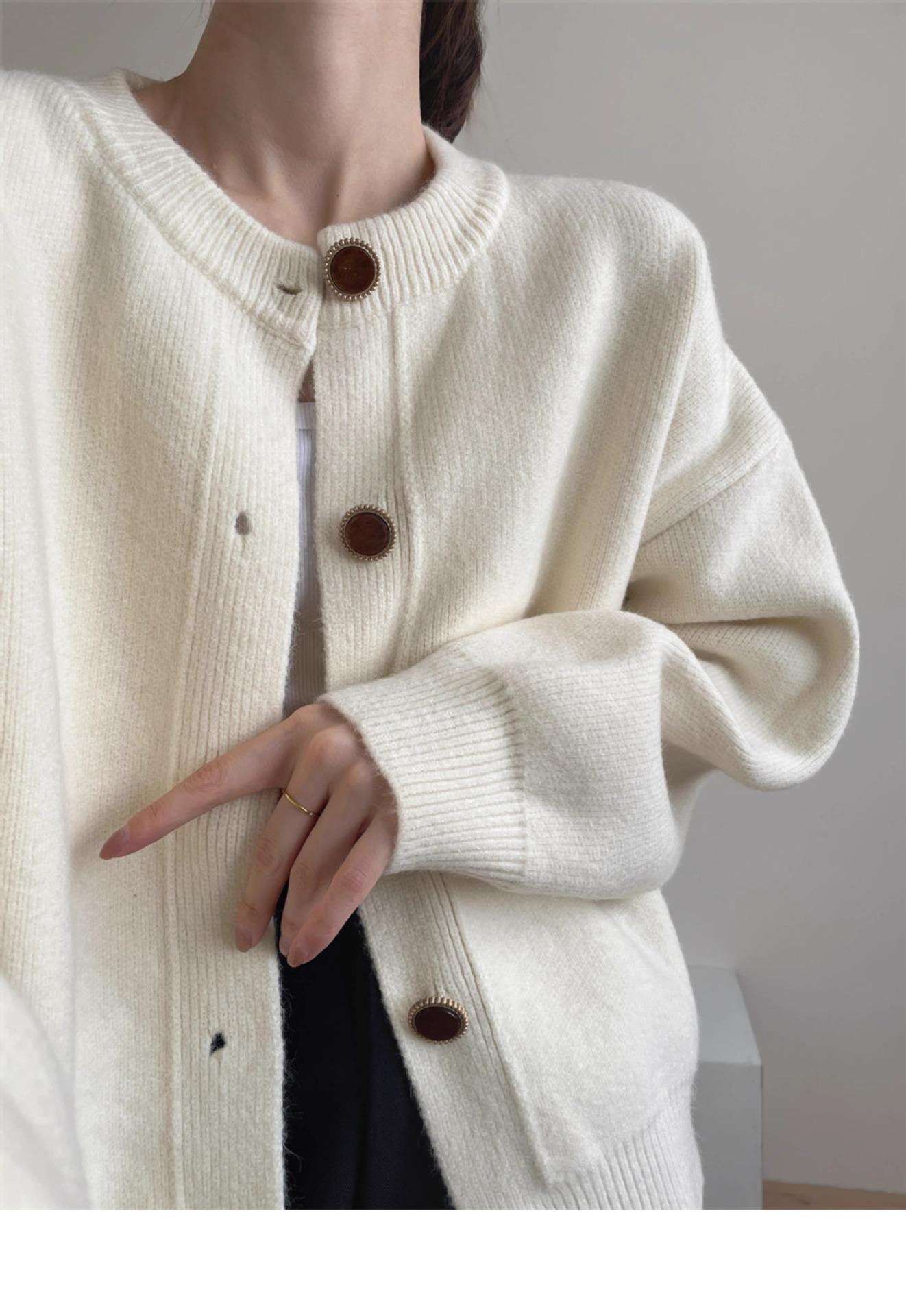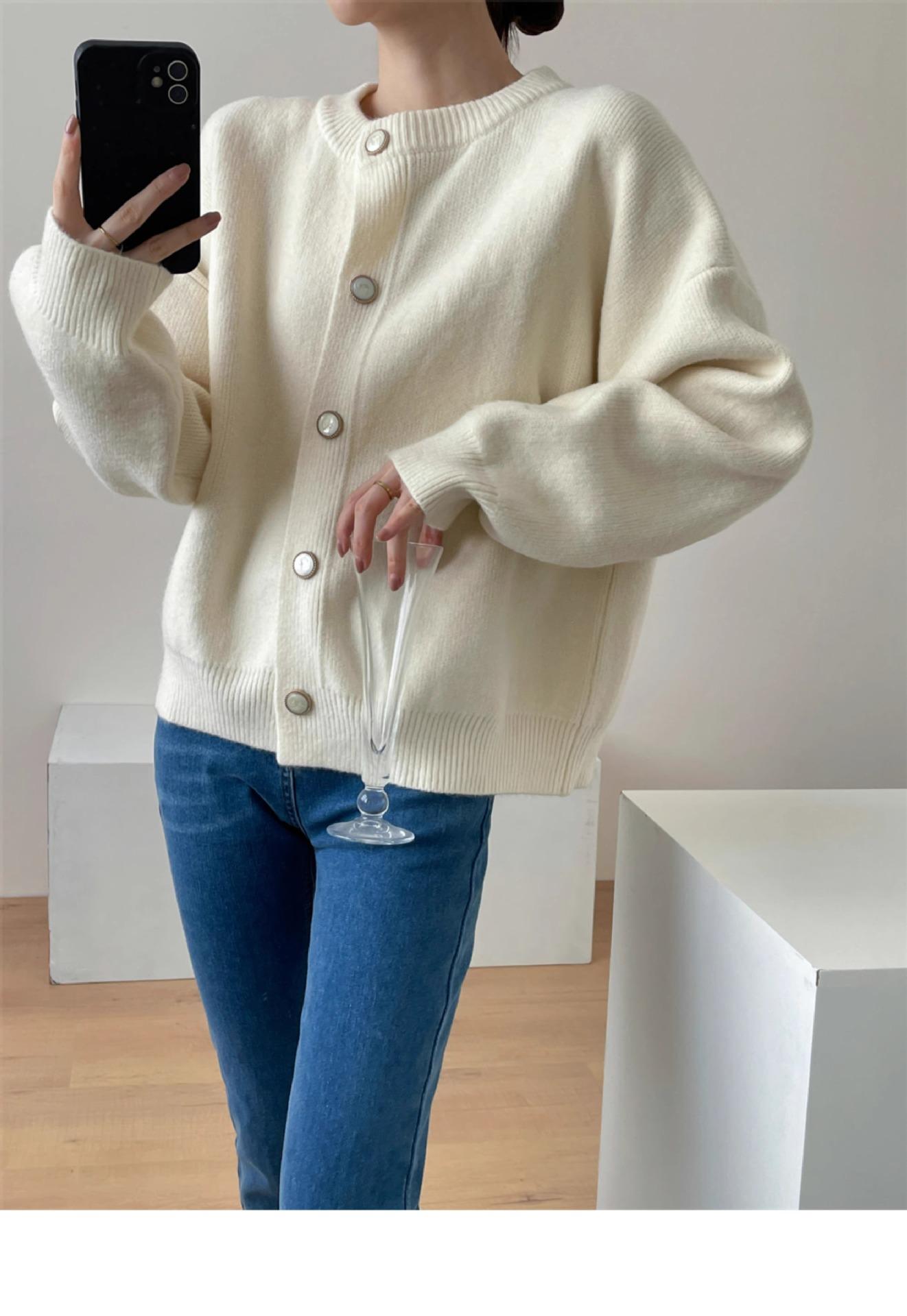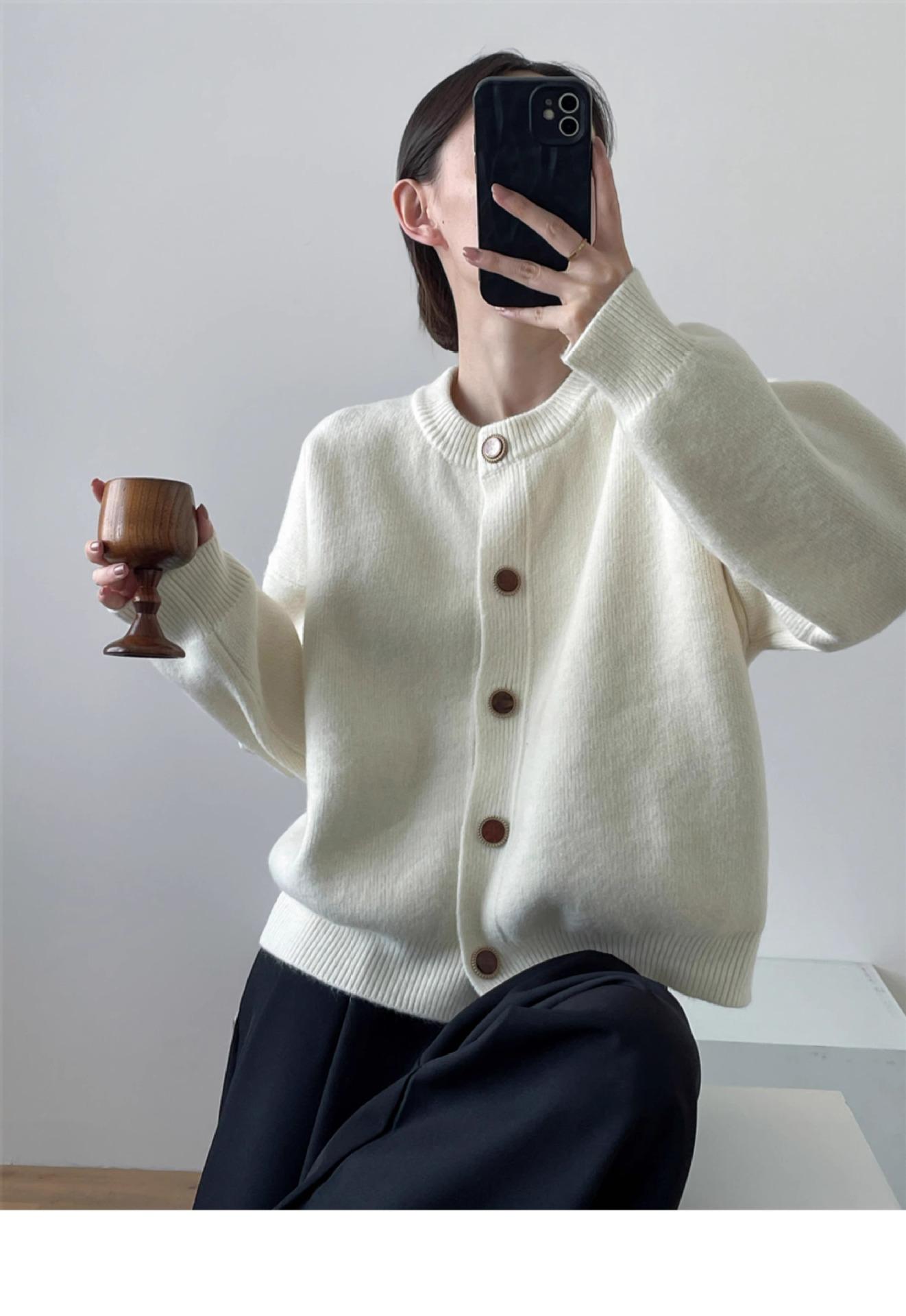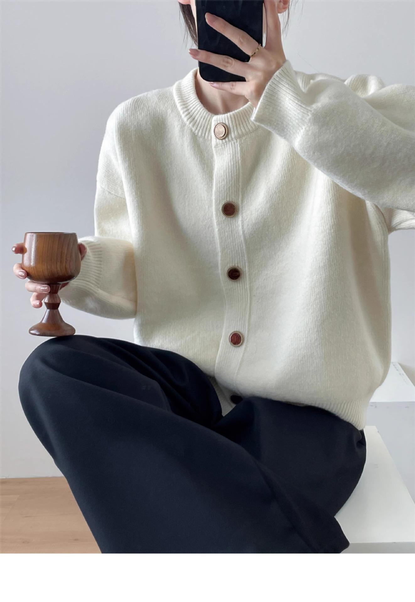 Chaqueta tipo cárdigan de punto de una sola fila con botones grandes, color liso, estilo holgado, cuello redondo, para otoño e invierno