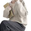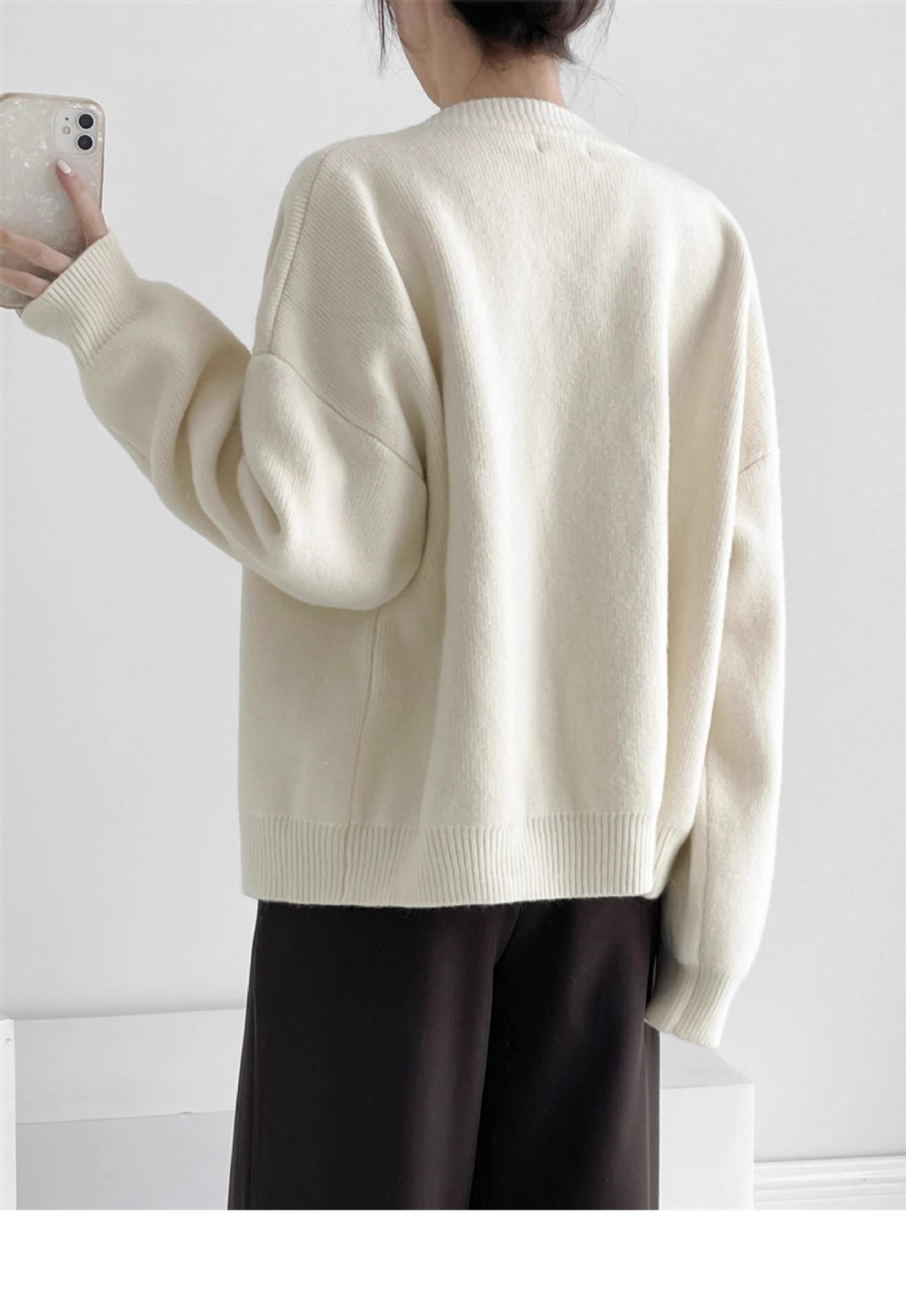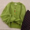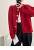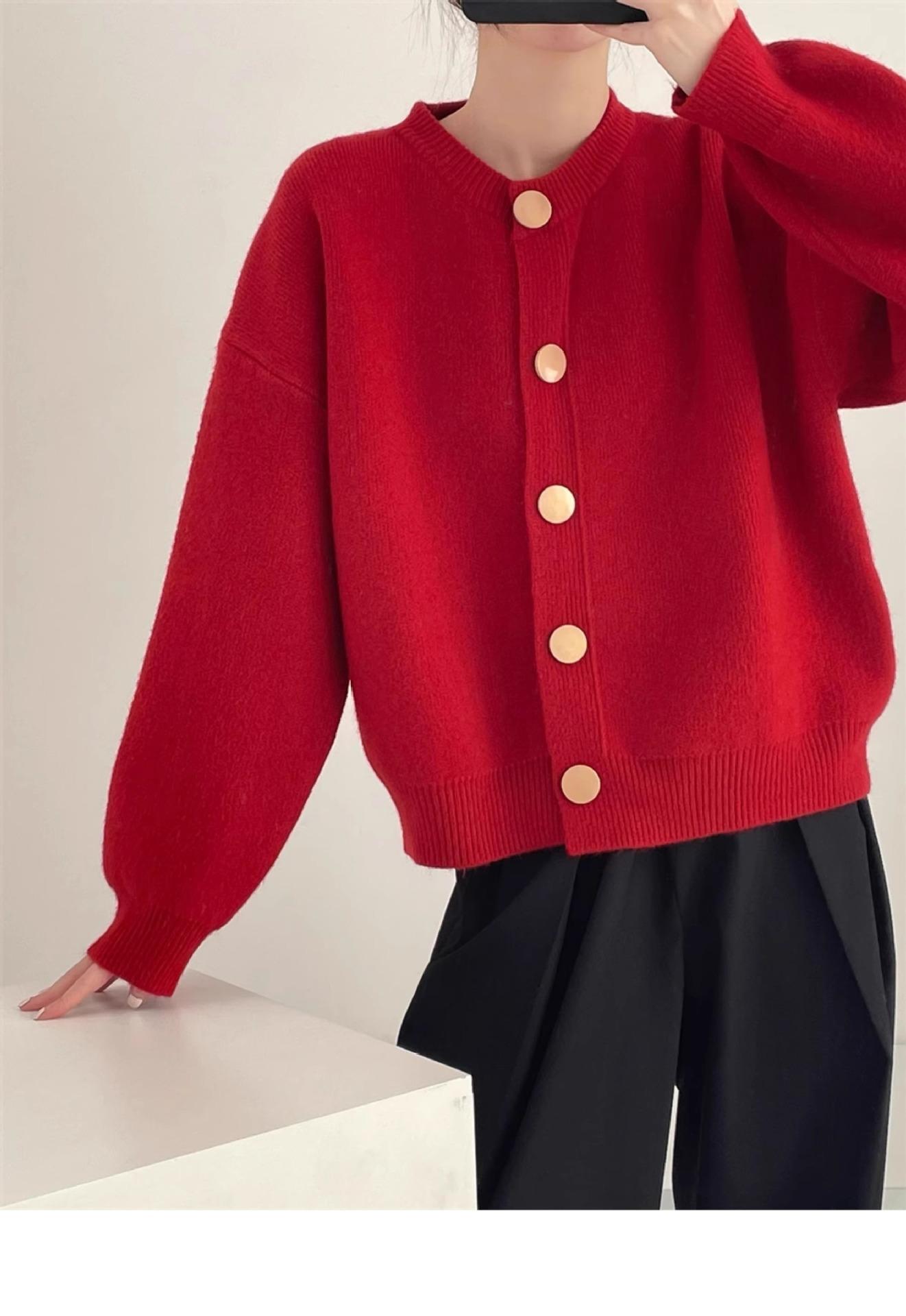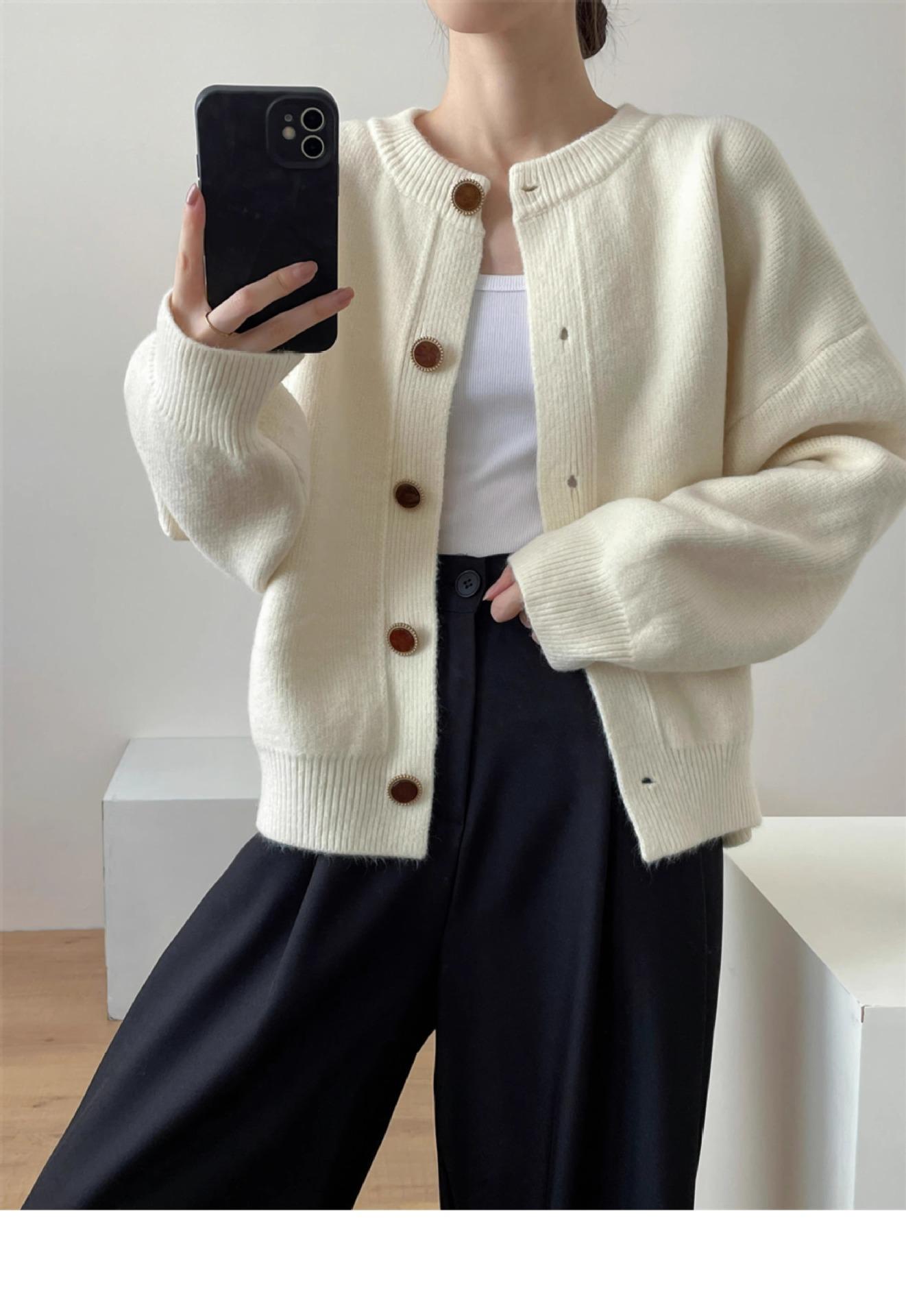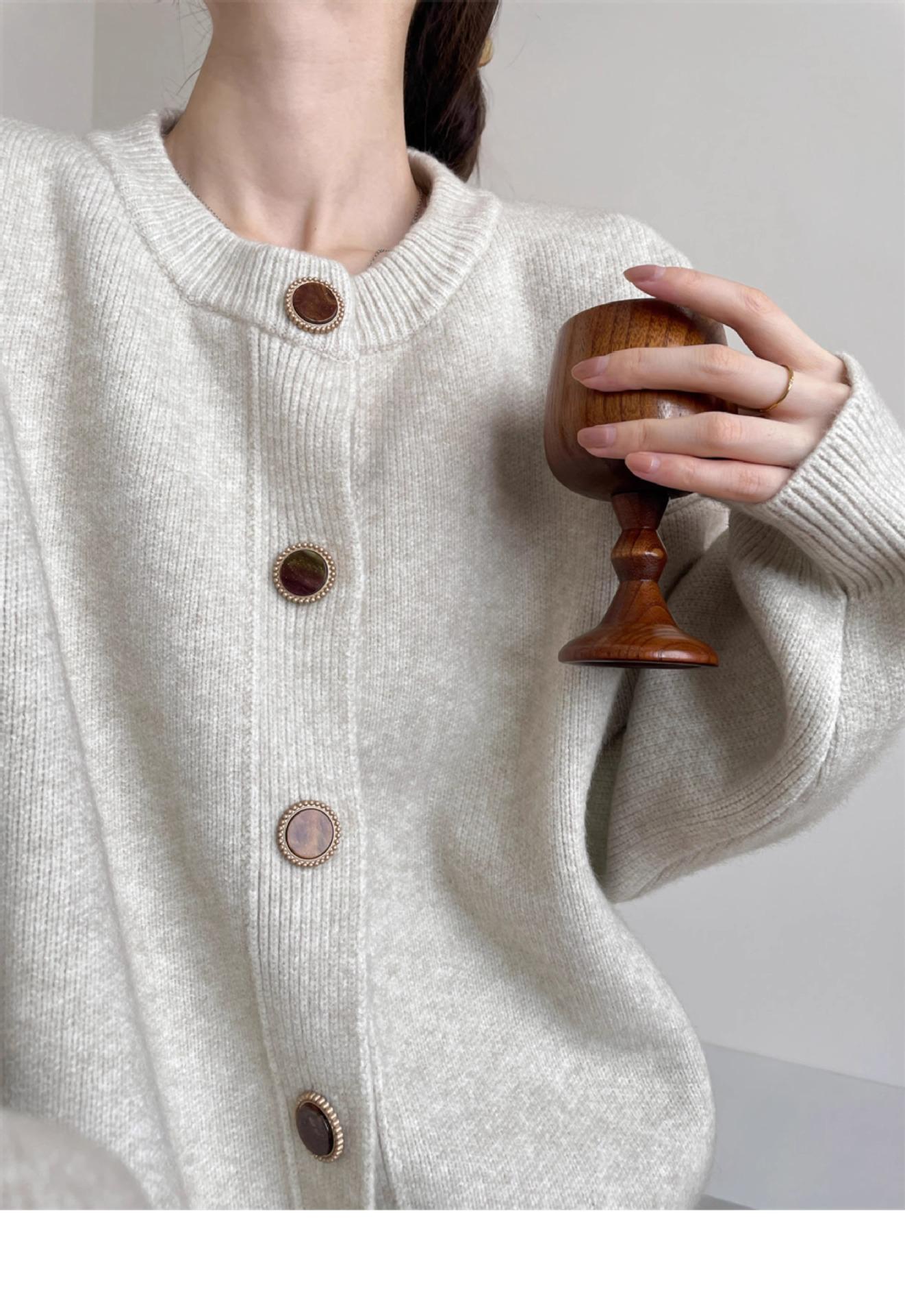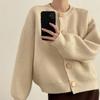 Chaqueta tipo cárdigan de punto de una sola fila con botones grandes, color liso, estilo holgado, cuello redondo, para otoño e invierno
