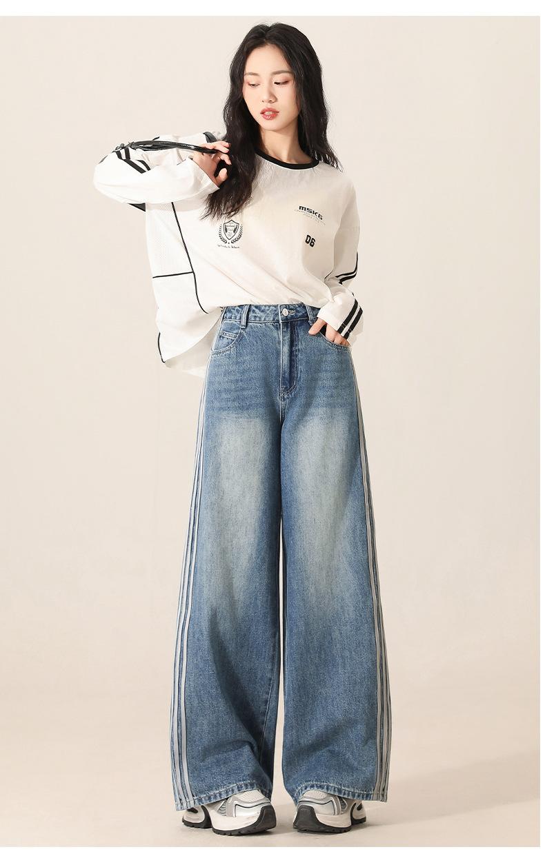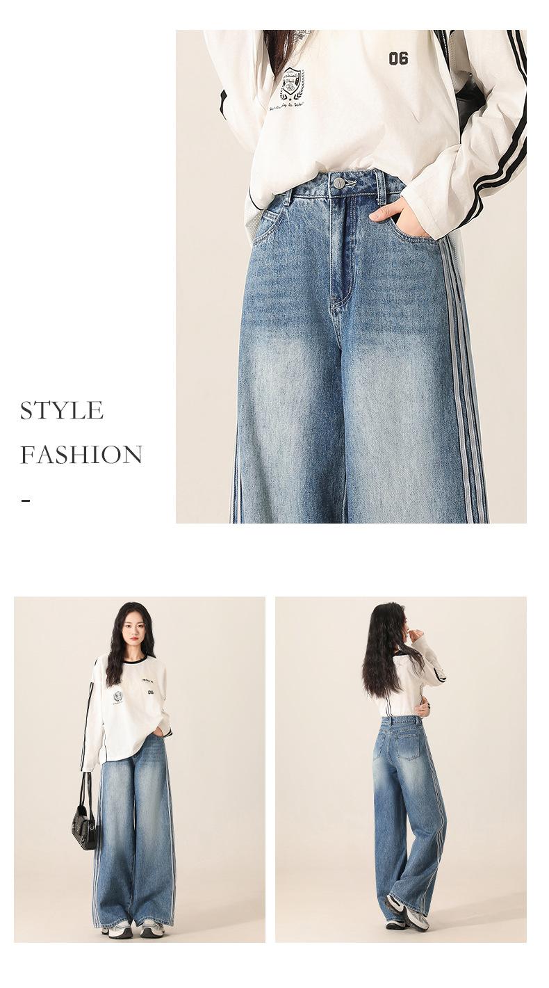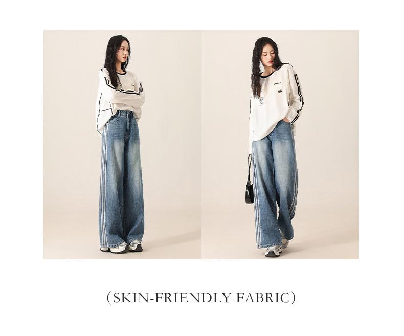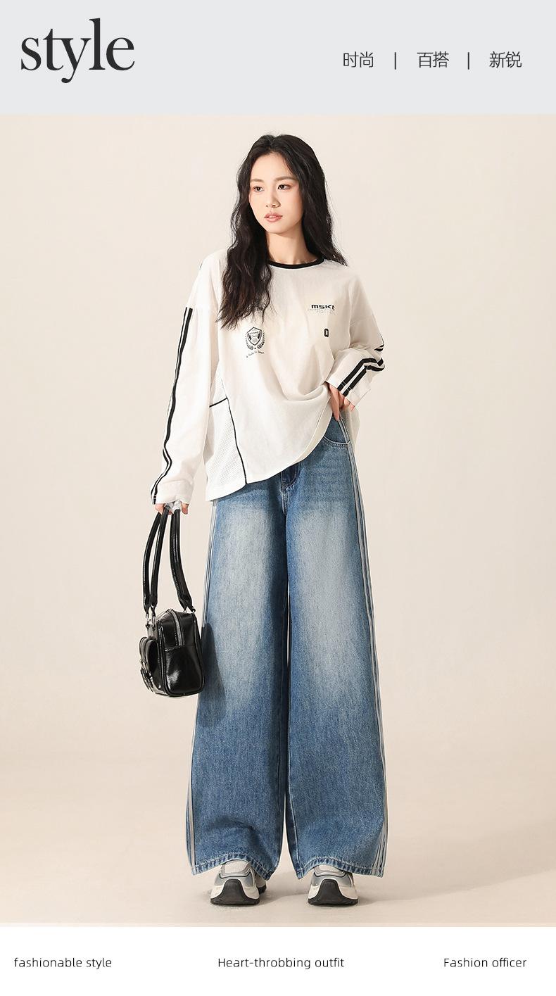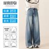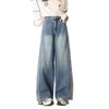 Jeans de pierna ancha azul claro para mujer en otoño 2025 Nuevo diseño de cintura alta Corte holgado adelgazante Pantalones rectos largos