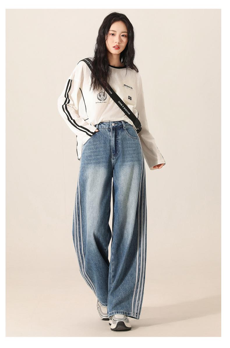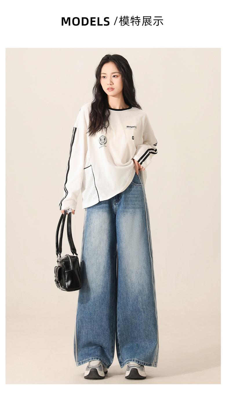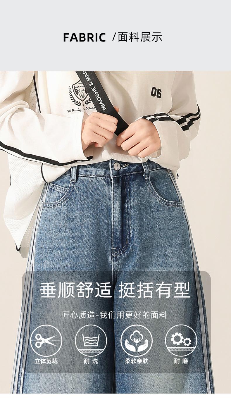 Jeans de pierna ancha azul claro para mujer en otoño 2025 Nuevo diseño de cintura alta Corte holgado adelgazante Pantalones rectos largos