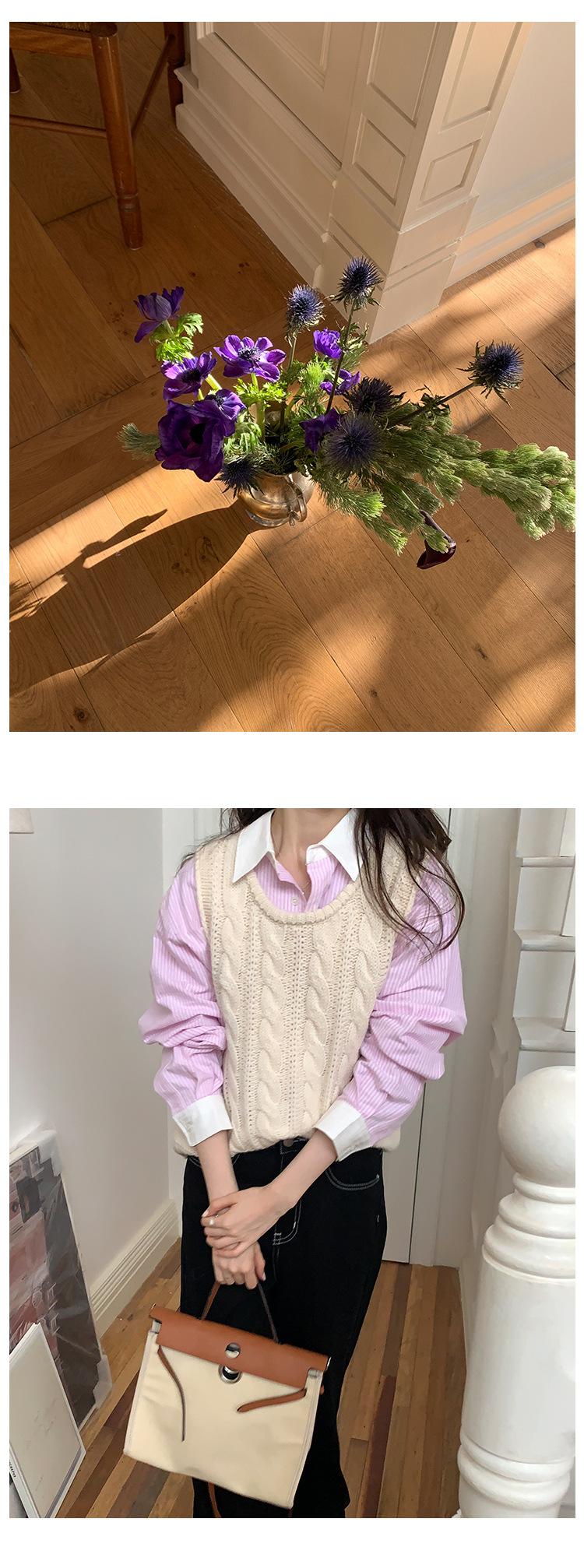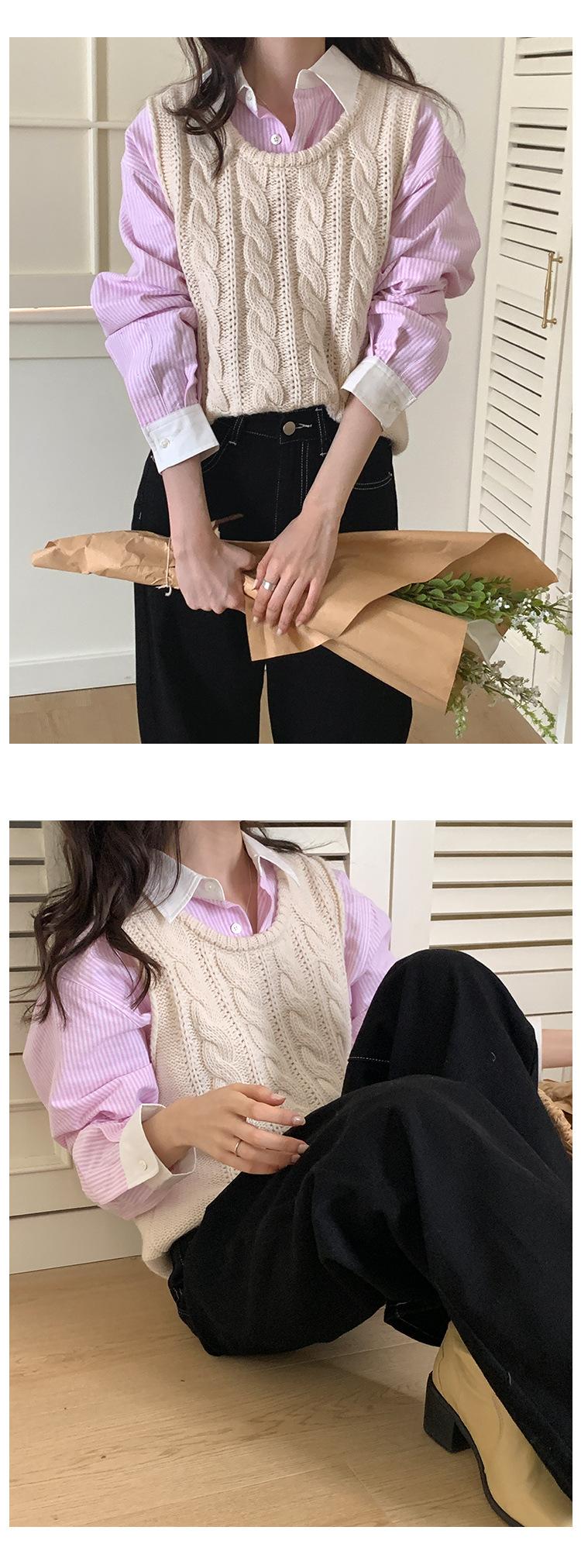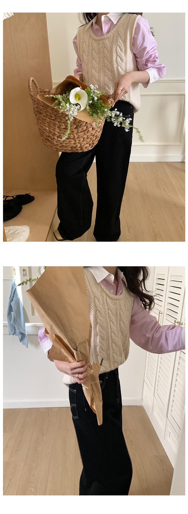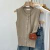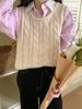Chaleco de Punto Coreano Versátil en Capas para Mujer Otoño 2025 Nuevo Suelto y Versátil Blanco Trenzado sin Mangas