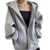 Suéter Holgado con Capucha 2025 Nuevo Abrigo de Primavera y Otoño para Mujer Gris Estilo Americano Pareja Cárdigan con Cremallera Top Invierno