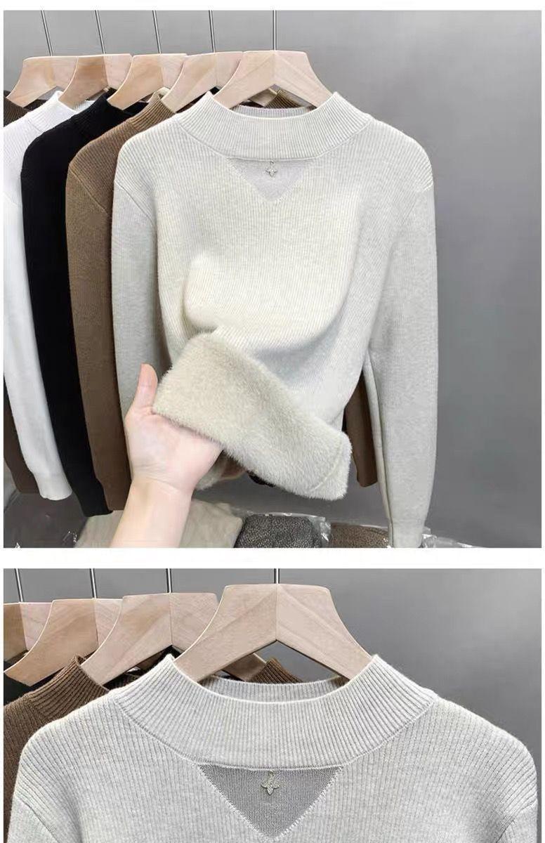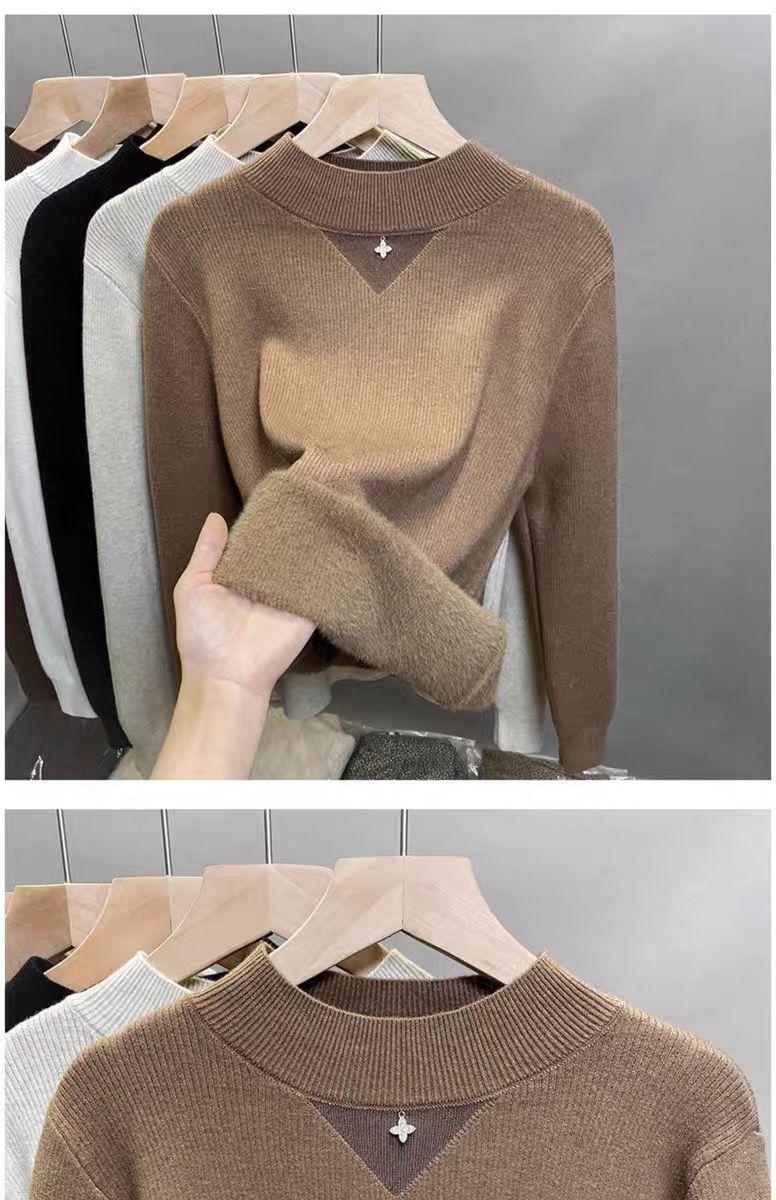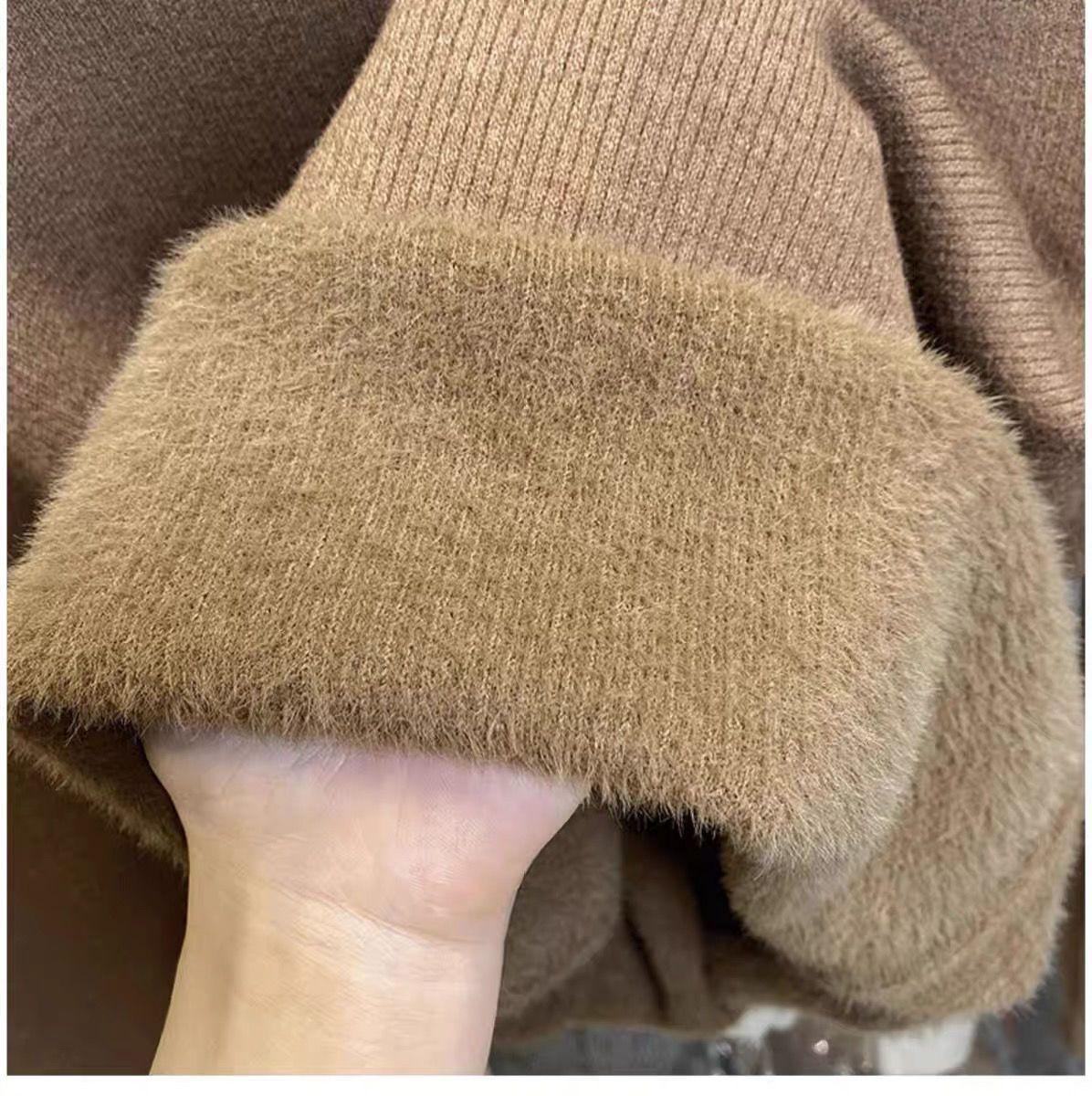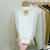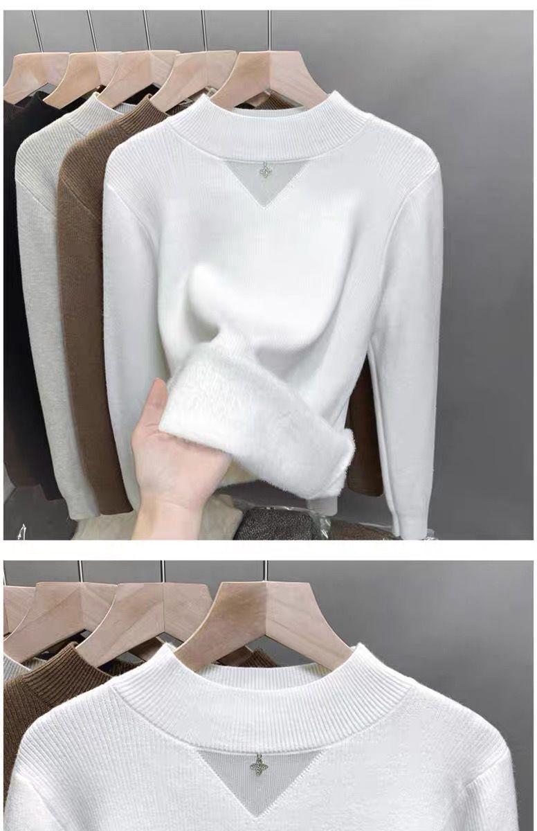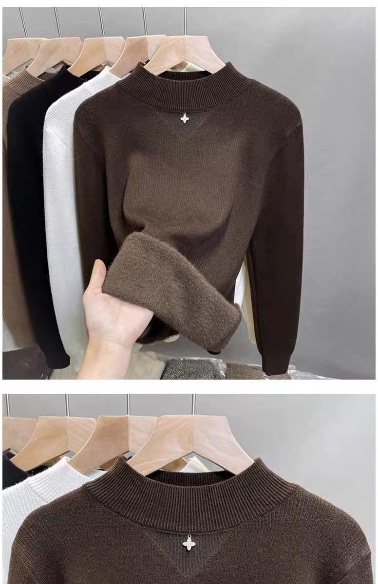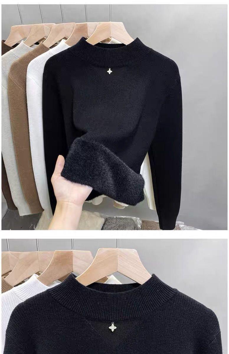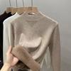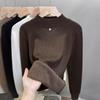 Suéter de Cuello Alto Medio para Mujer Otoño e Invierno con Forro Polar Grueso Camisa Base Moderna Interior de Una Pieza Terciopelo Top de Punto de Alta Gama