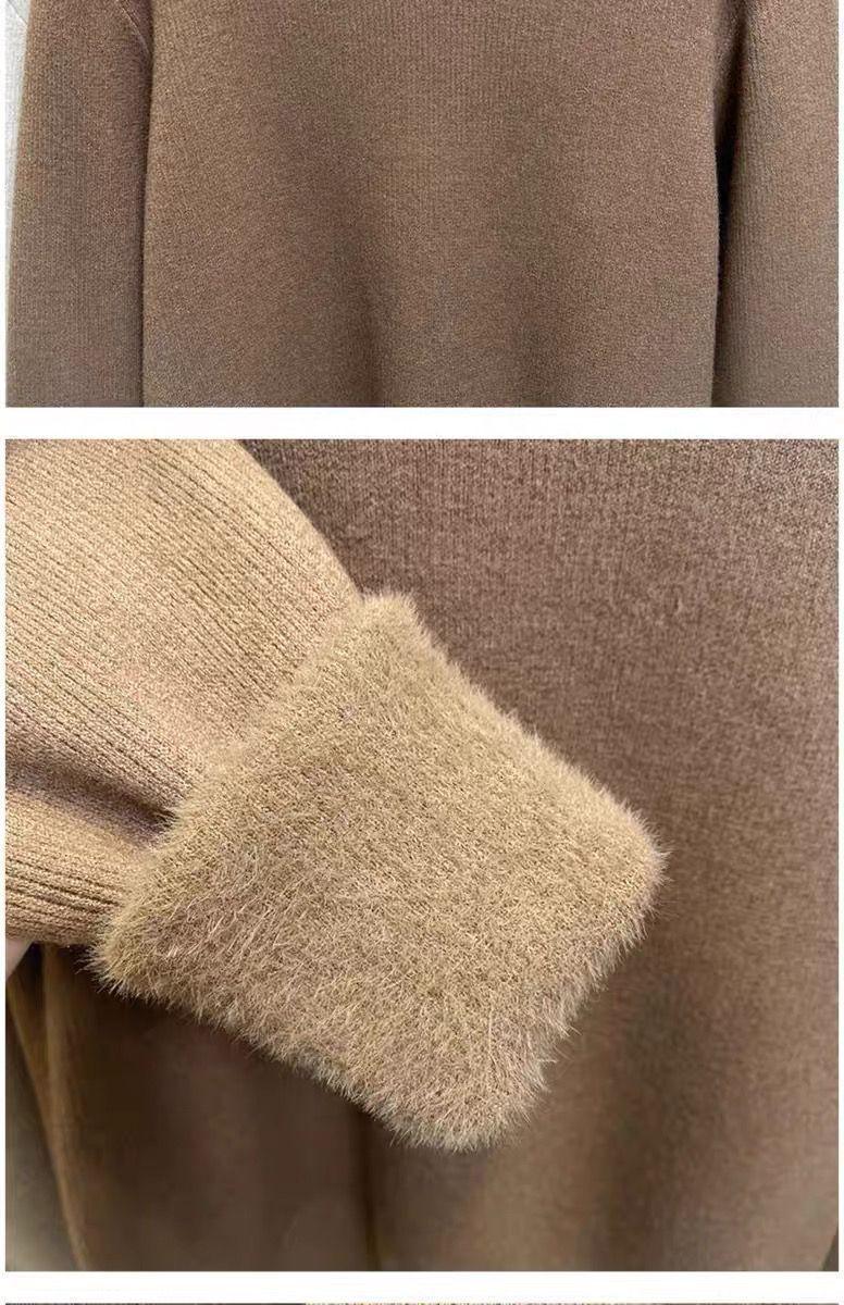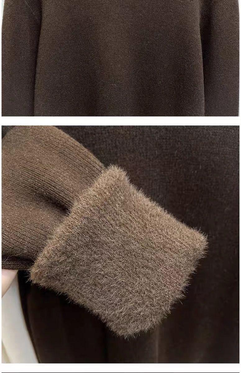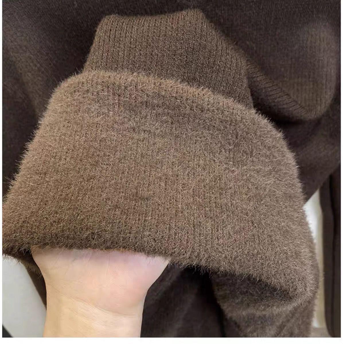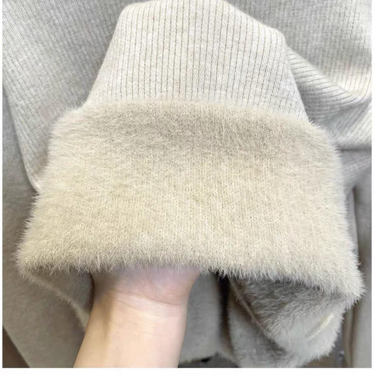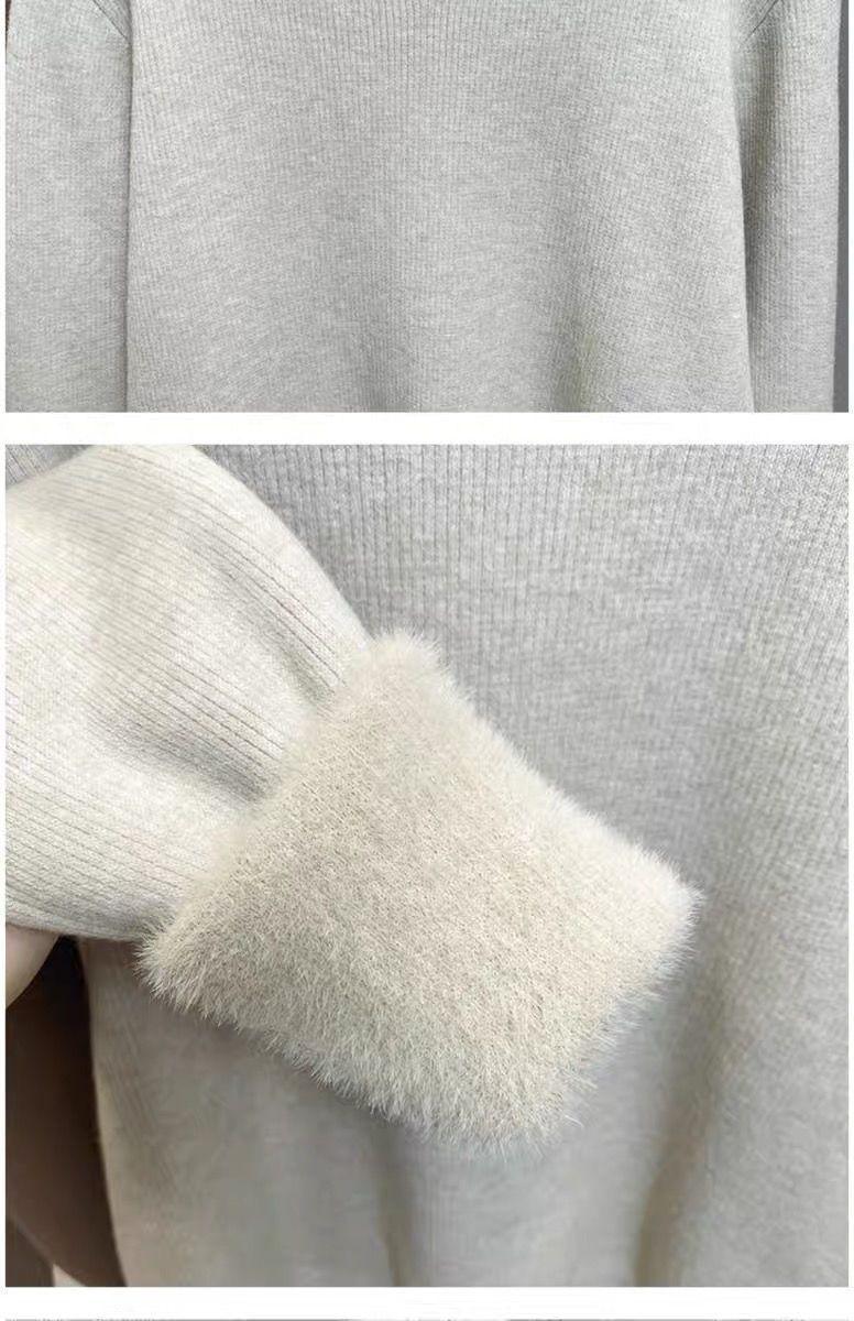 Suéter de Cuello Alto Medio para Mujer Otoño e Invierno con Forro Polar Grueso Camisa Base Moderna Interior de Una Pieza Terciopelo Top de Punto de Alta Gama