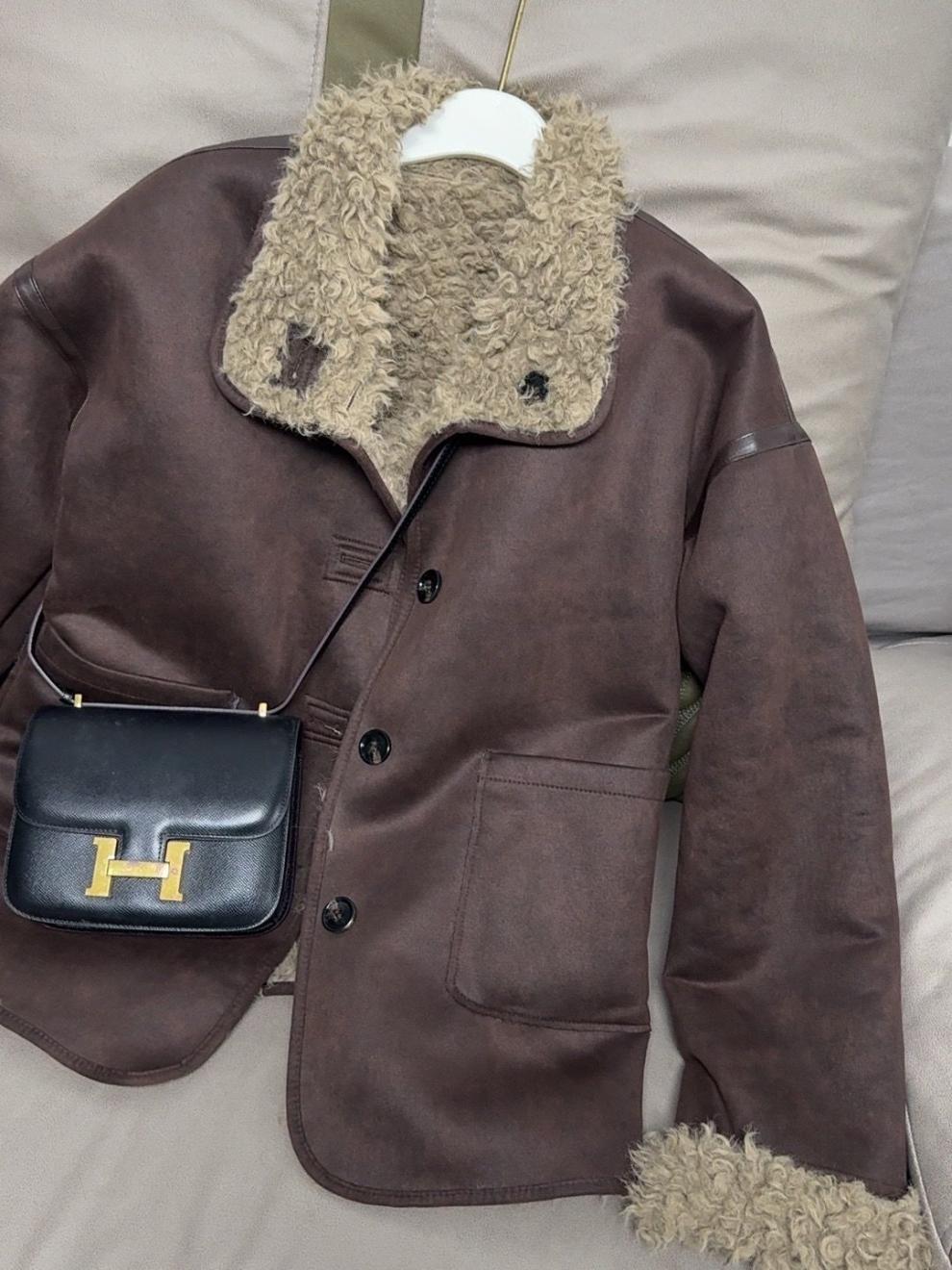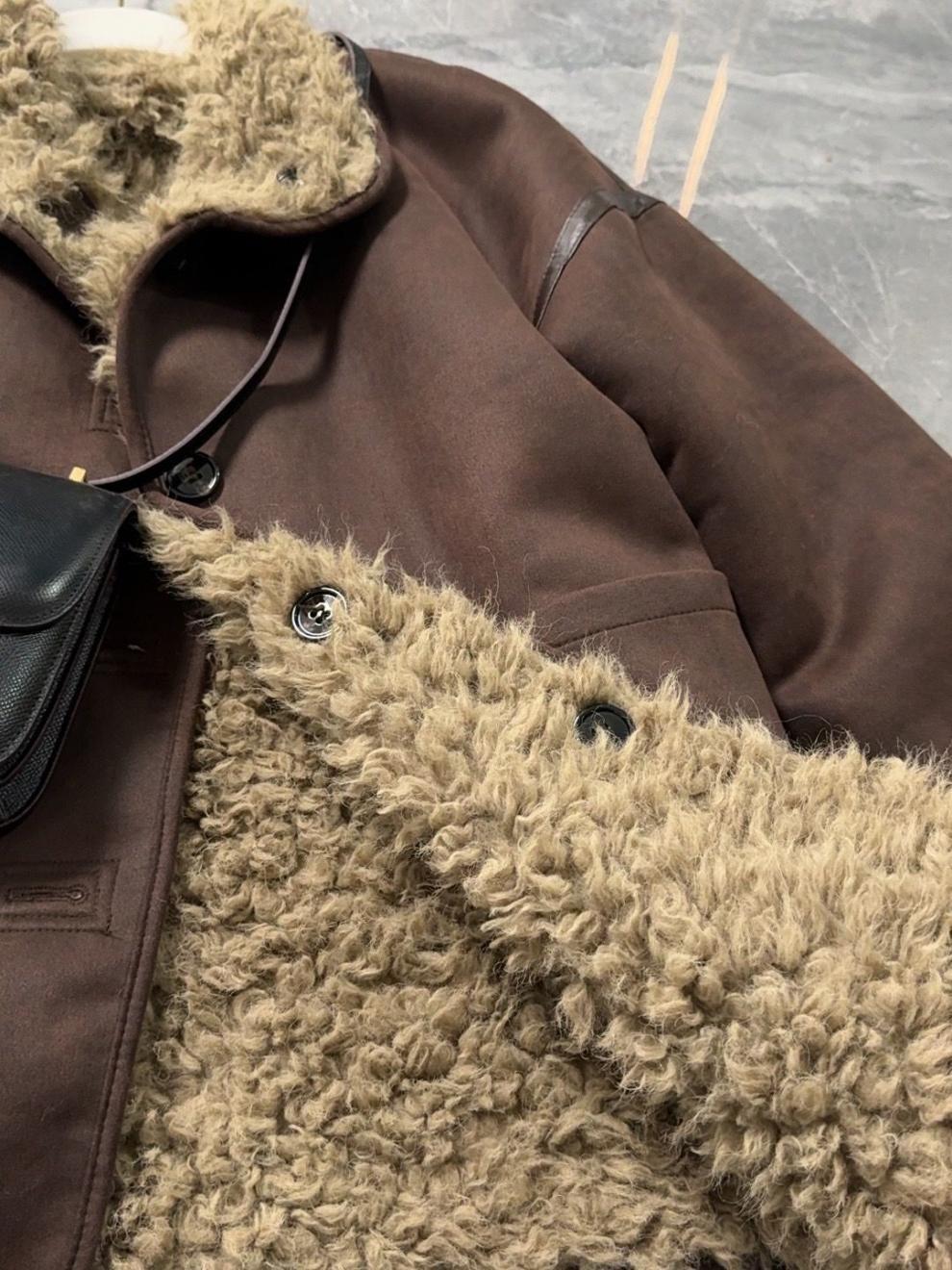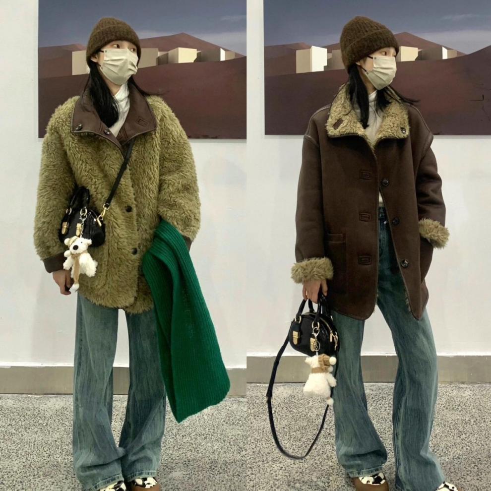 Shanli Dadi Chaqueta de una pieza de piel de cordero de doble cara para industria pesada Invierno Nuevo Suelto Grueso Cálido Abrigo Locomotora