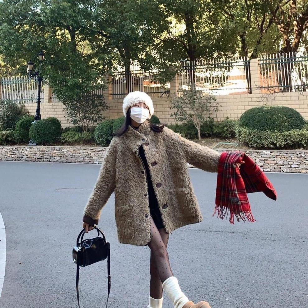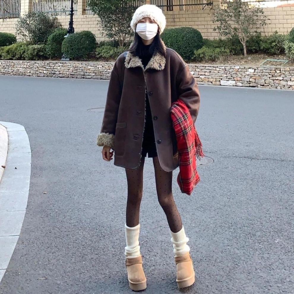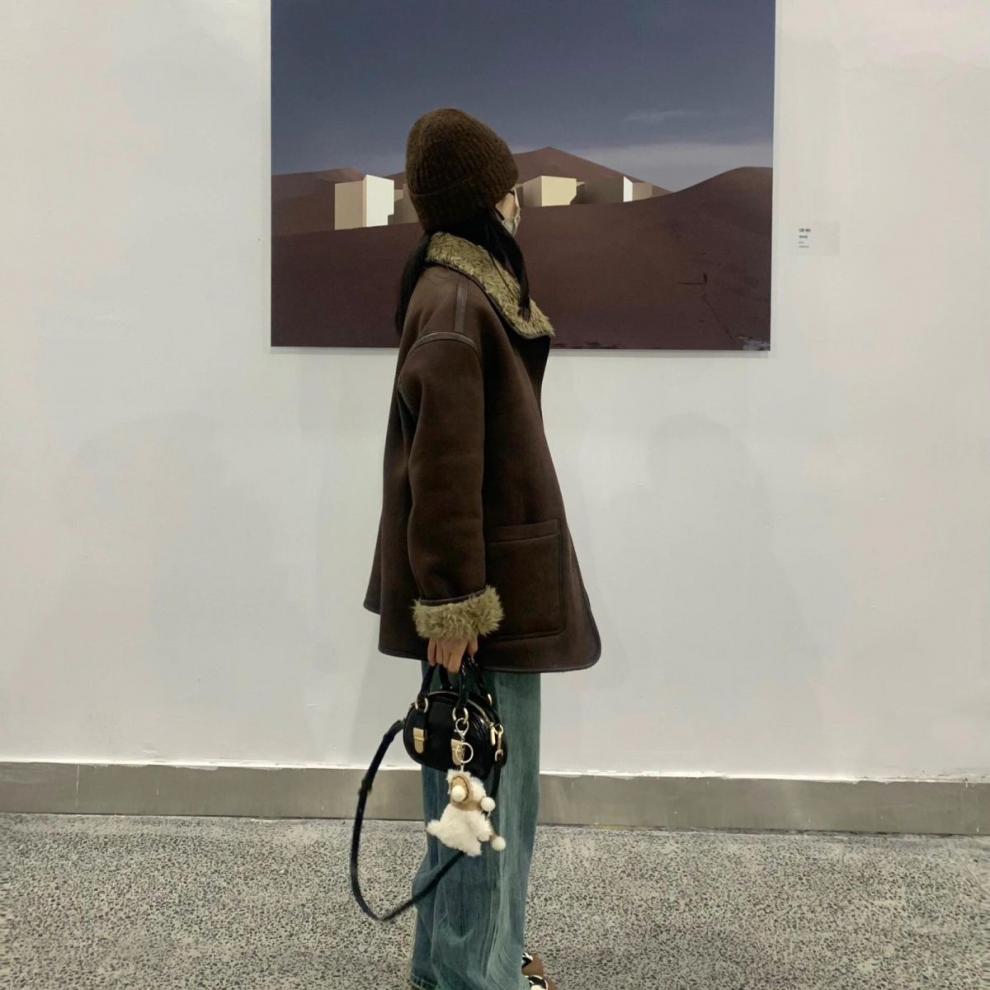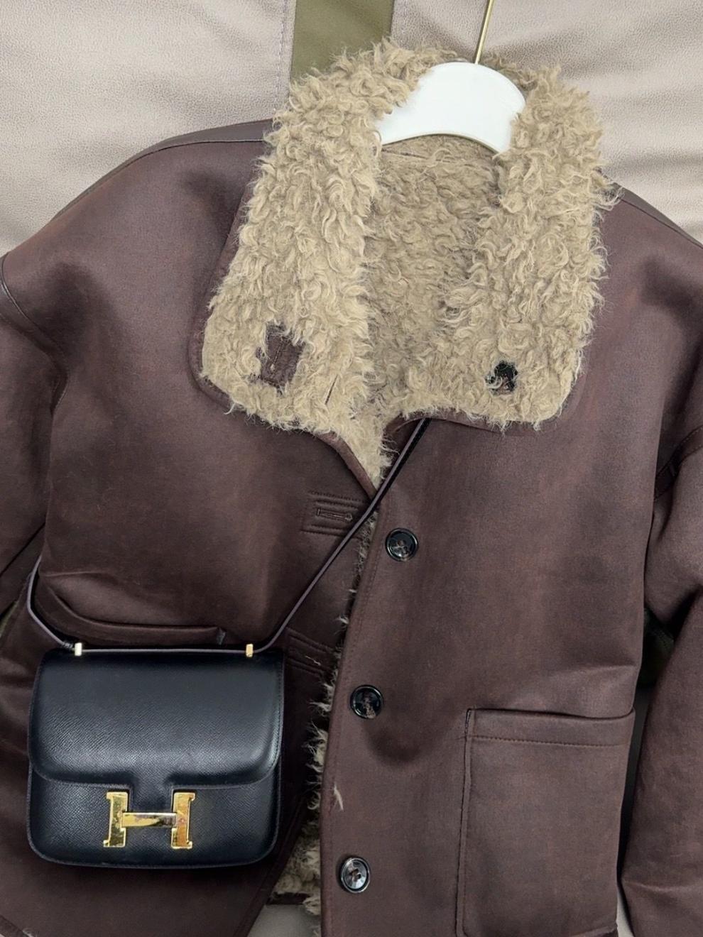 Shanli Dadi Chaqueta de una pieza de piel de cordero de doble cara para industria pesada Invierno Nuevo Suelto Grueso Cálido Abrigo Locomotora