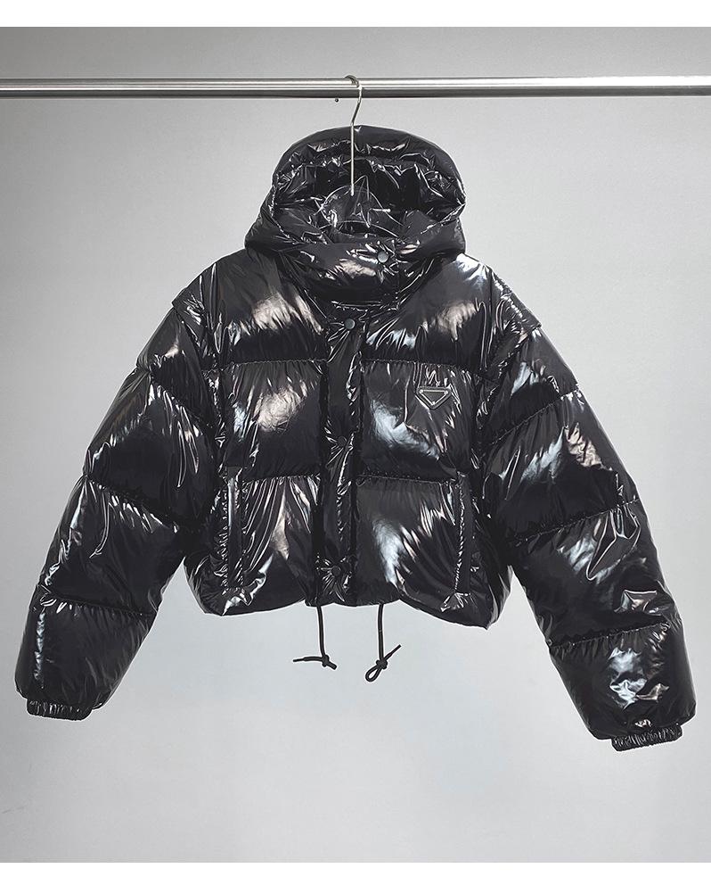Precio especial Niche 2024 - Chaqueta corta con capucha negra desmontable y cálida para mujer