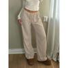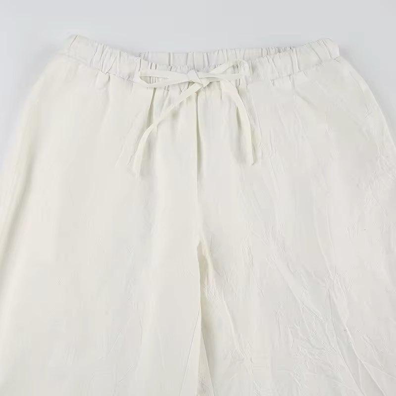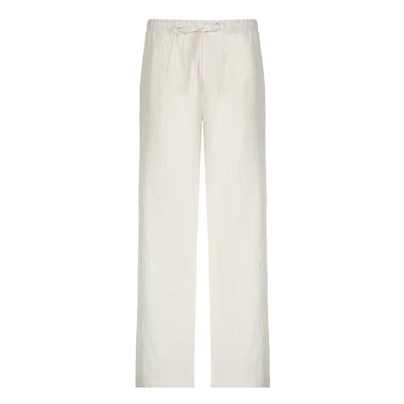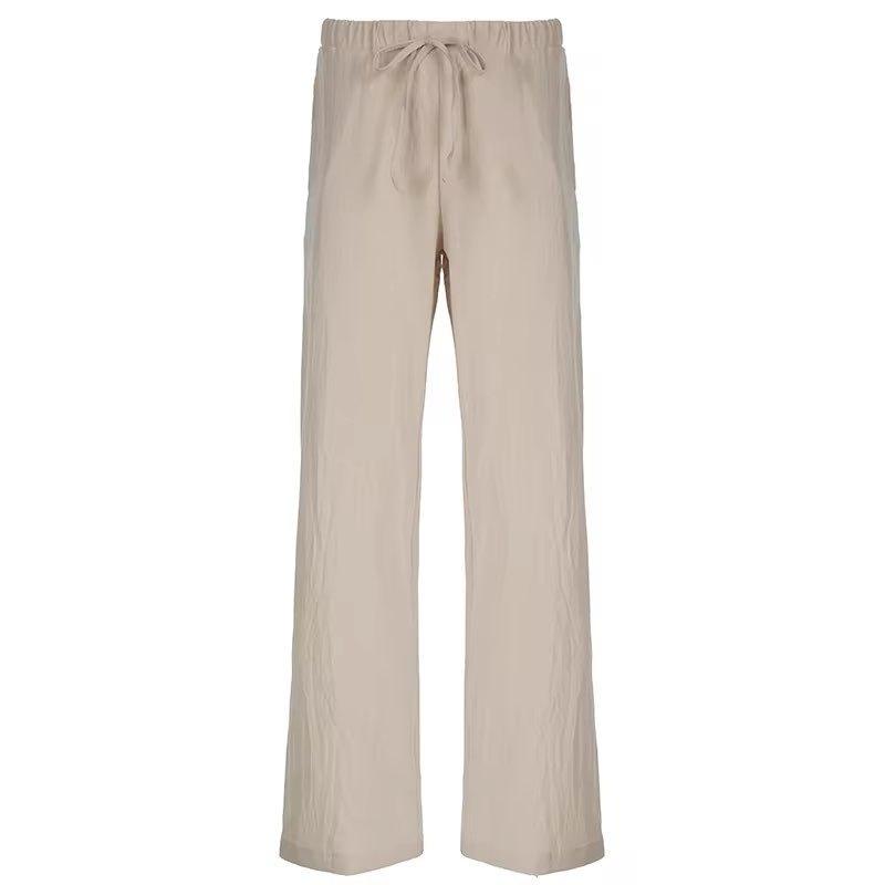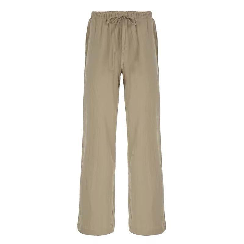 Pantalones casuales de color sólido personalizados a la moda para mujer, novedad de verano 2025, pantalones largos rectos con diseño de cordón y cintura elástica