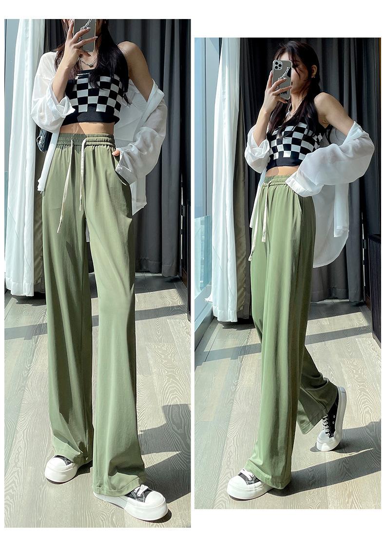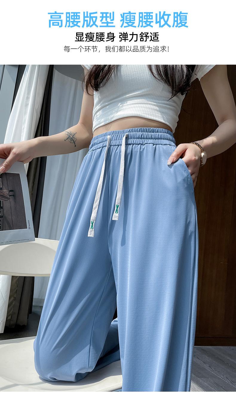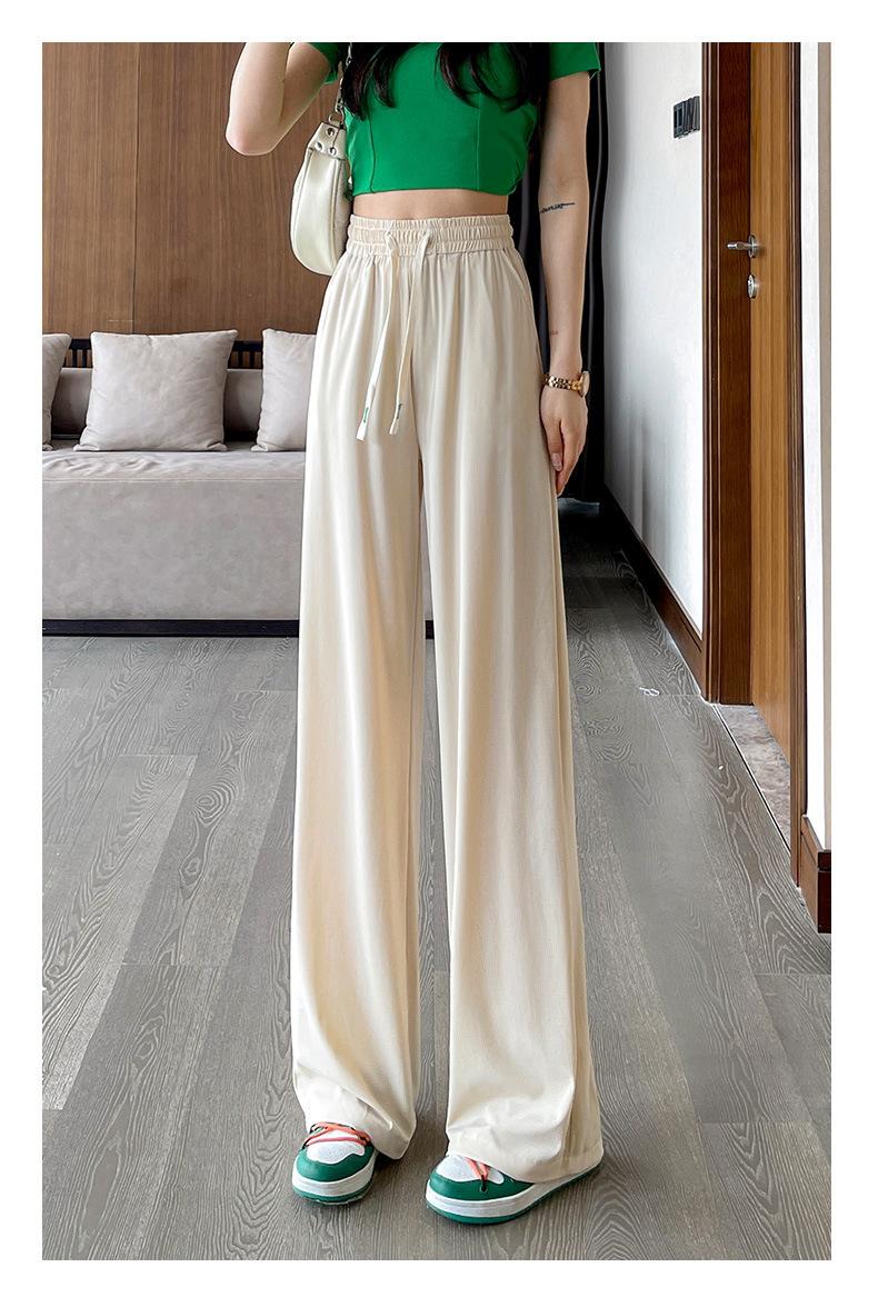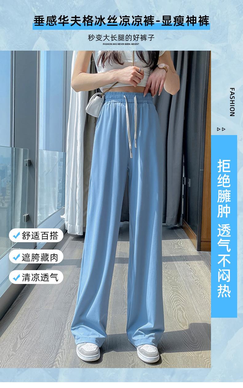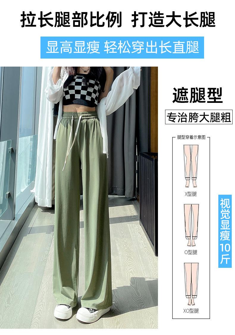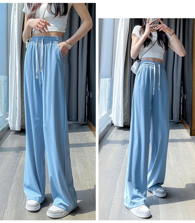 Pantalones anchos de seda de hielo con cordón ajustable para mujer, pantalones rectos holgados de verano 2024, pantalones casuales adelgazantes de talla grande.