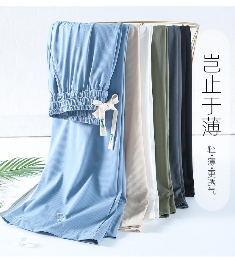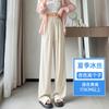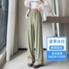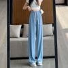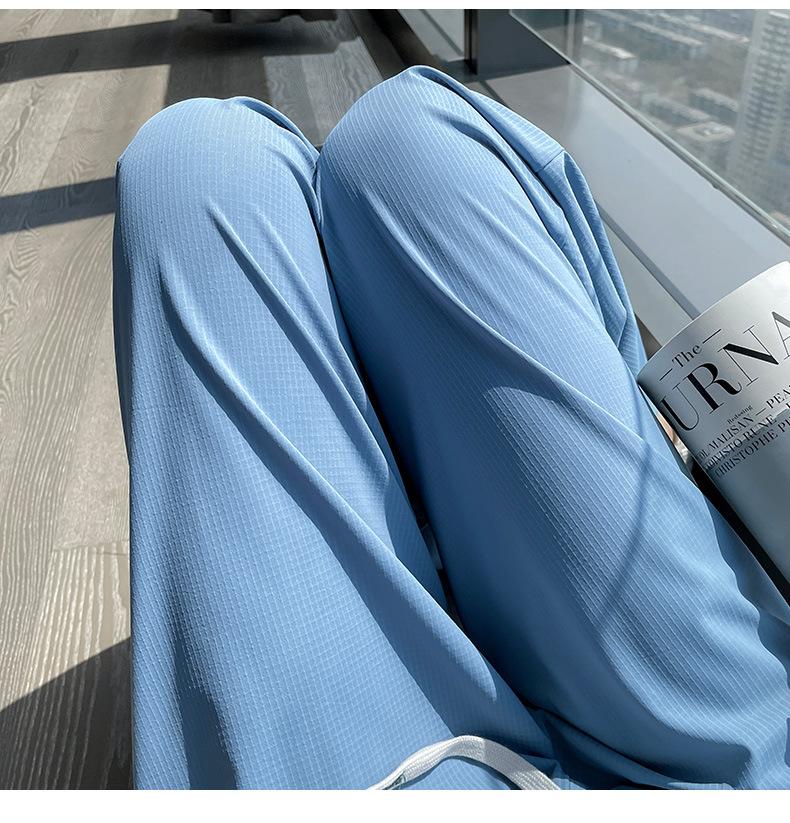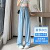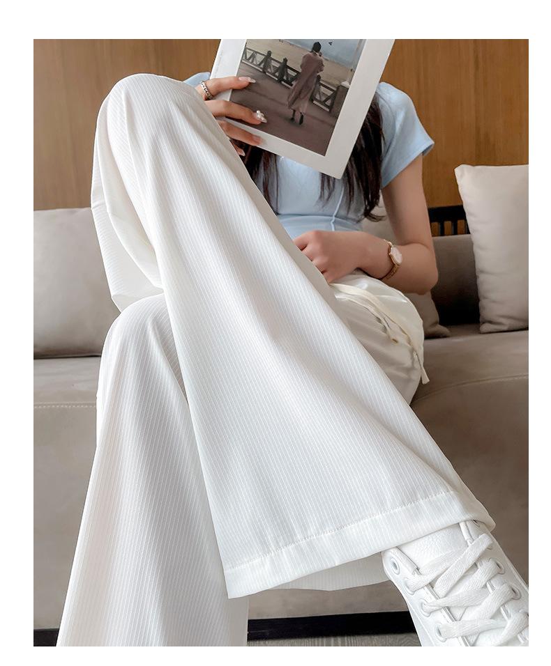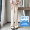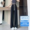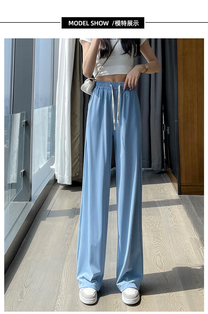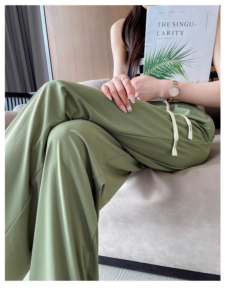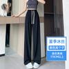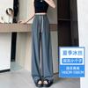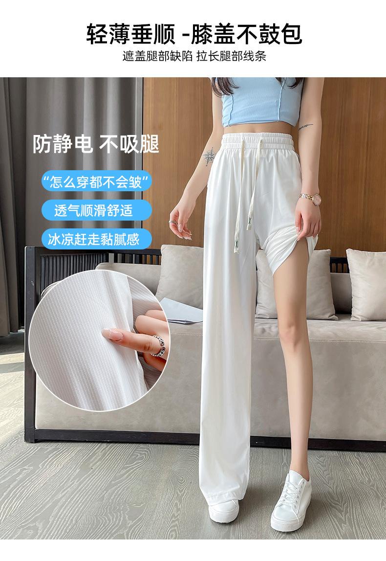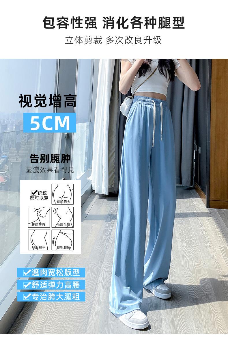 Pantalones anchos de seda de hielo con cordón ajustable para mujer, pantalones rectos holgados de verano 2024, pantalones casuales adelgazantes de talla grande.