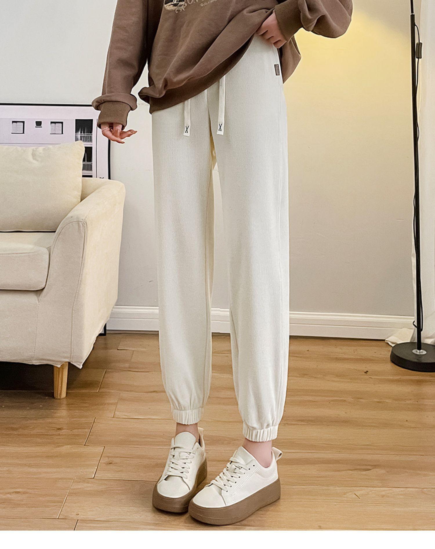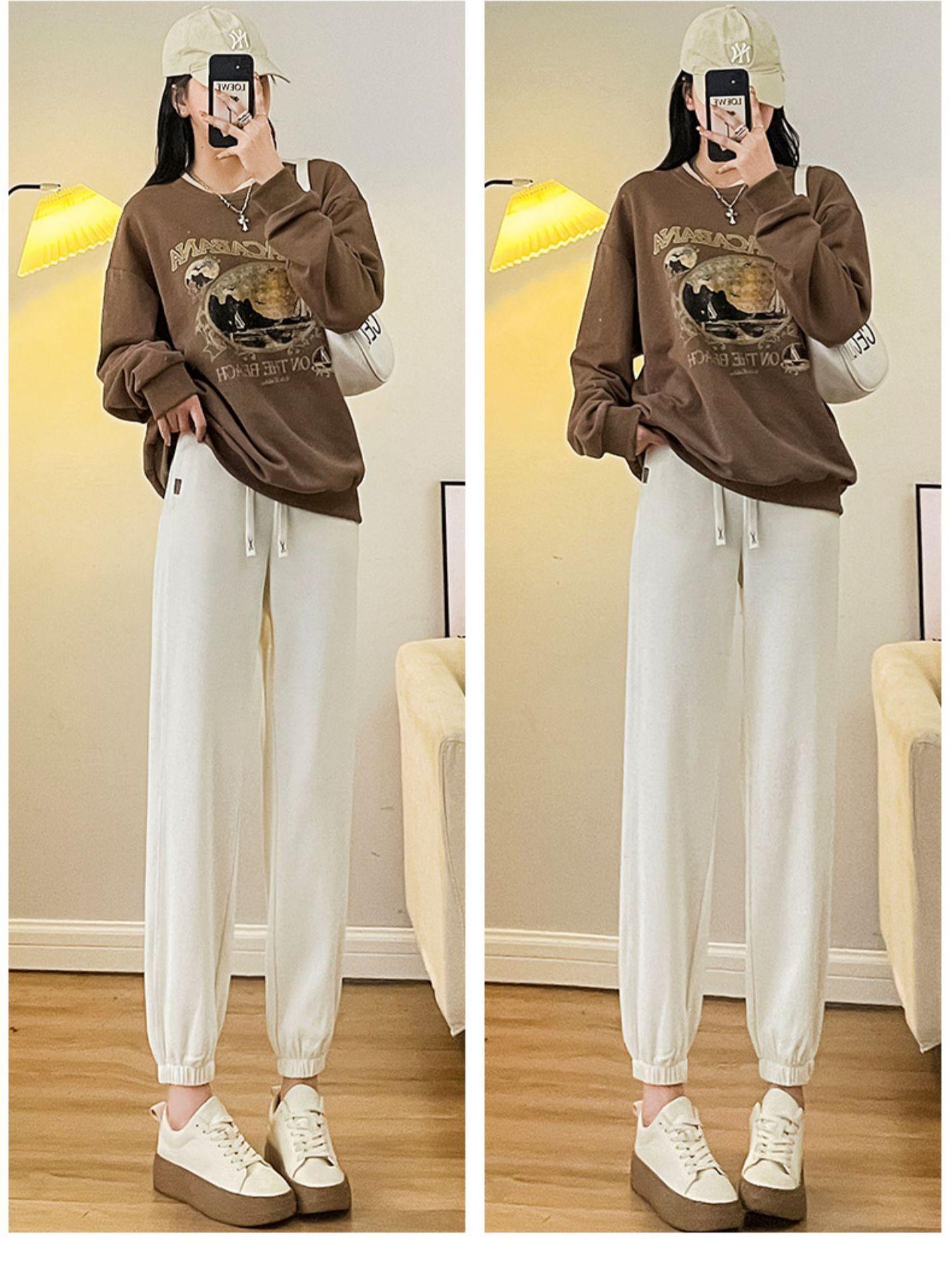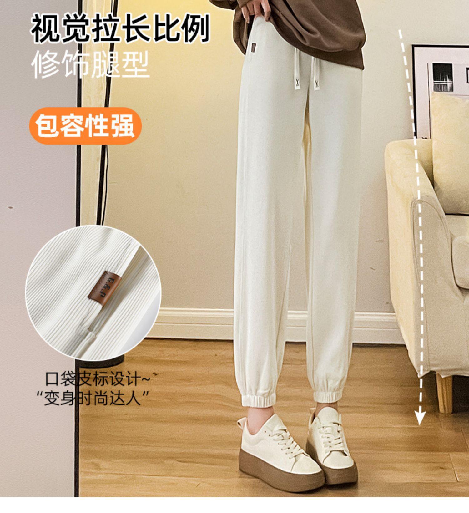 Pantalones Deportivos de Talla Grande para Primavera y Otoño 2024 para Mujer, Adelgazantes, de Cintura Alta, Holgados, Casuales, de Algodón Europeo Tejido, Bombachos