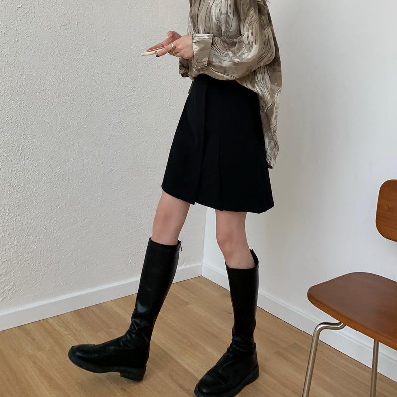 Falda plisada negra para mujer, verano 2025, nueva falda de cintura alta, corte A, falda de traje pequeño, falda a la cadera