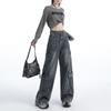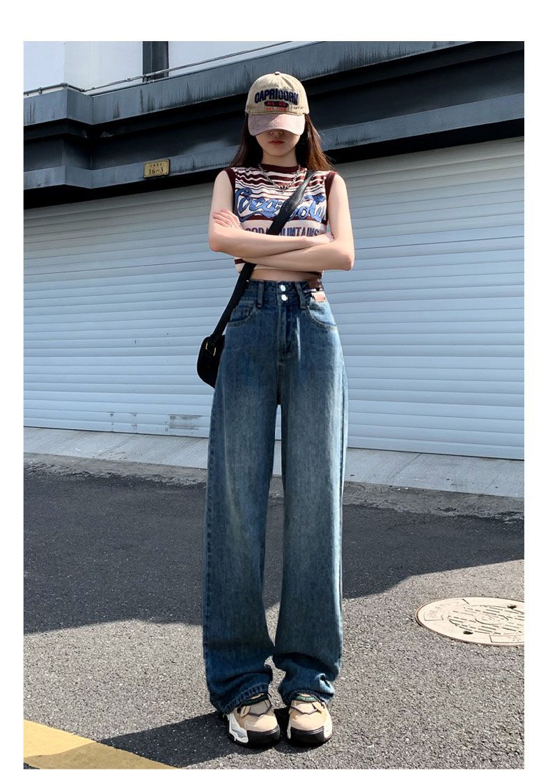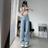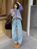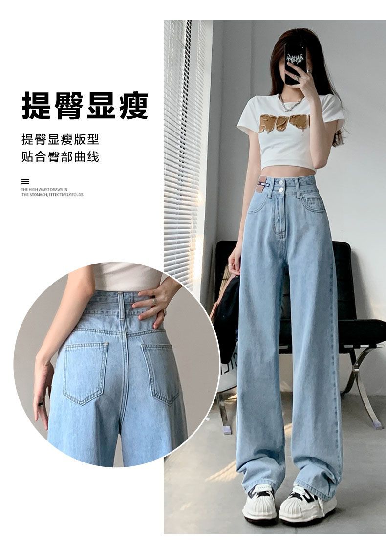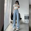 Pantalones vaqueros azules claros largos, holgados, ajustados, de pierna ancha, 2025, rectos, combinables, de cintura alta, para mujer.