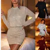 Vestido de Lentejuelas Femenino de Manga Larga con Cuello Alto Elegante, Falda Corta, Bodycon y Vestido de Gala, Nuevo Estilo de Comercio Exterior Europeo y Americano 2026