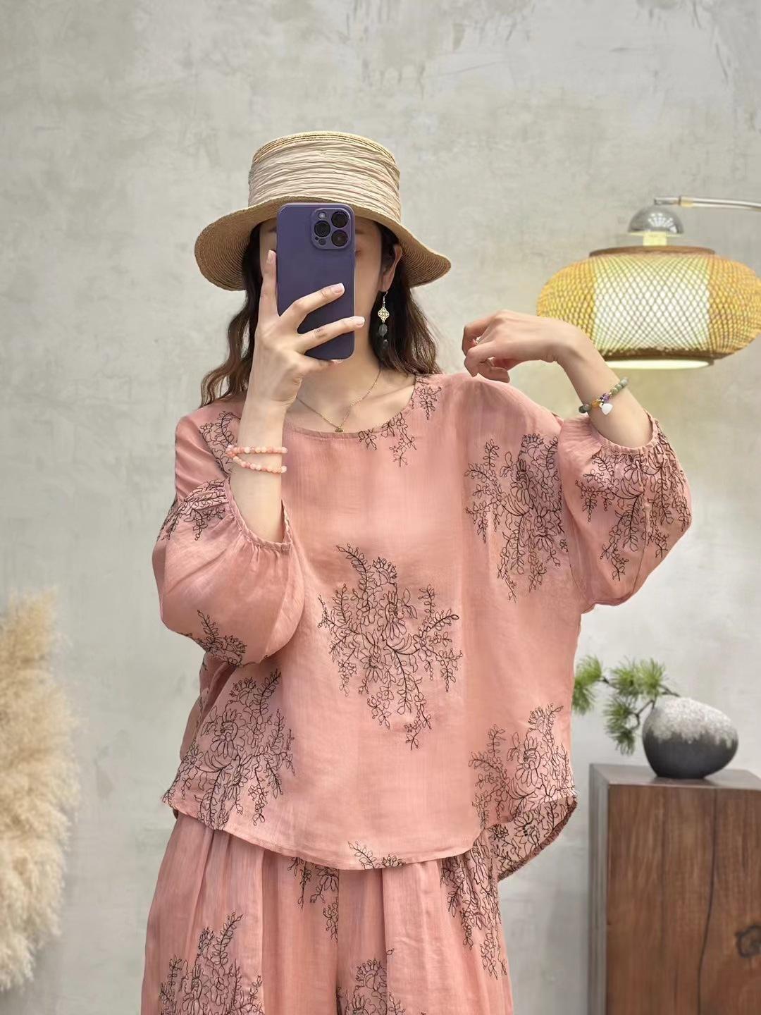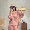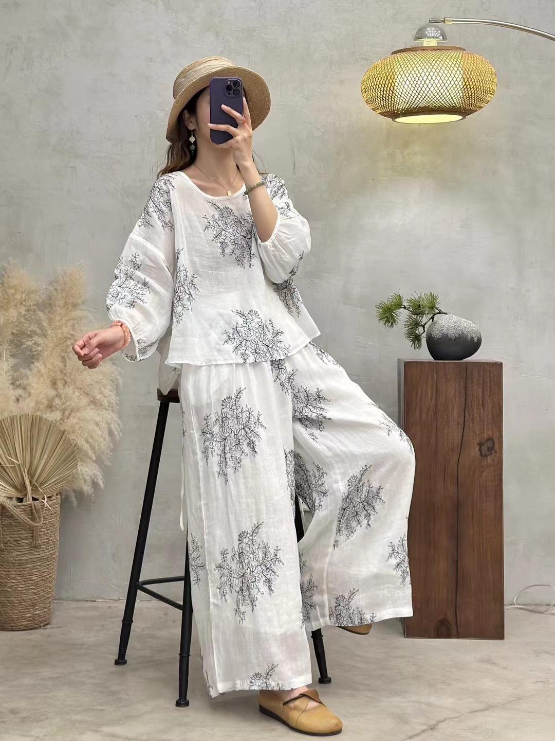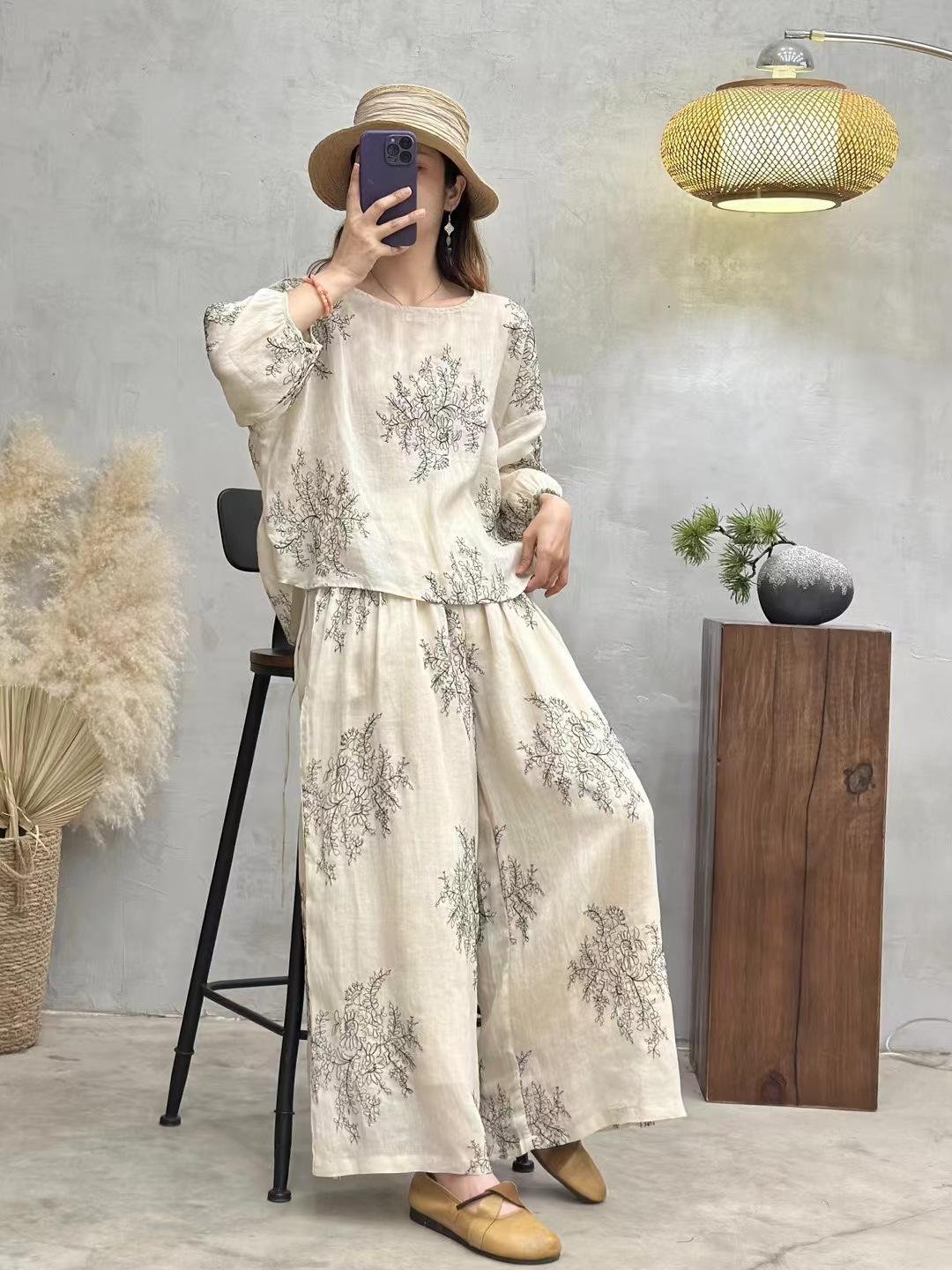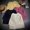 Camisa de cuello redondo con bordado industrial de ramio, estilo retro artístico, para mujer, primavera 2025