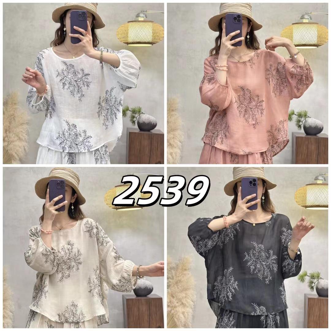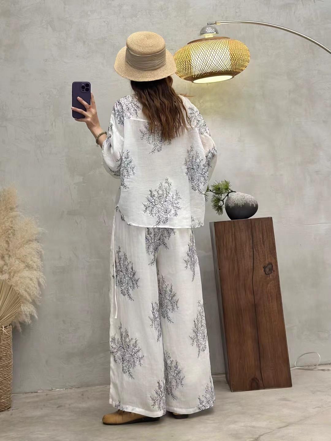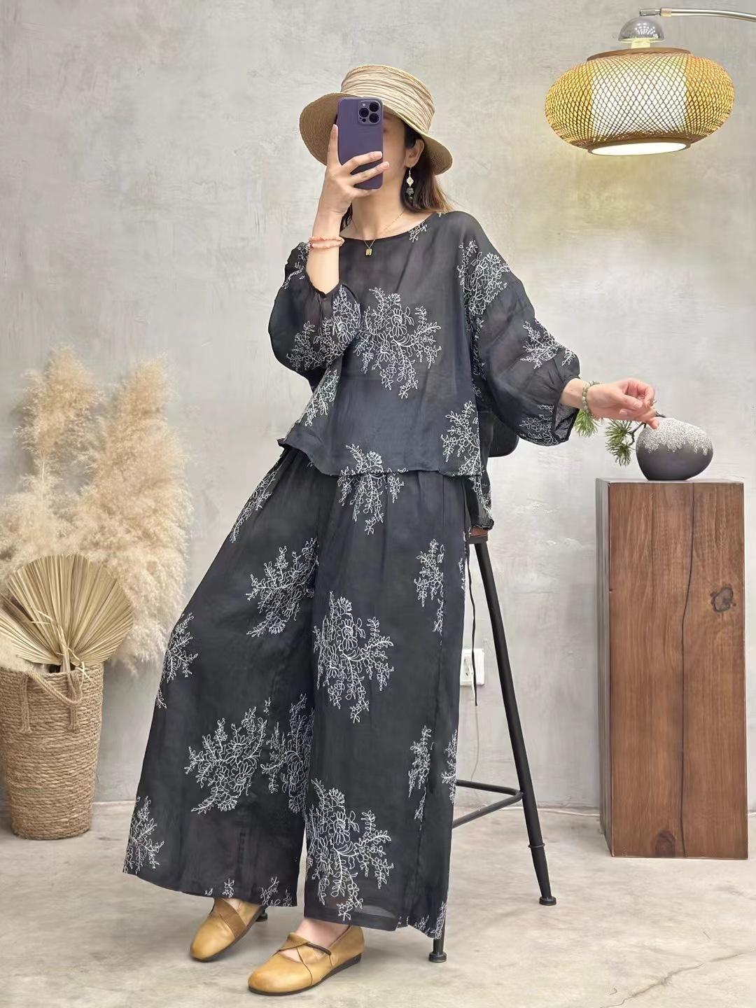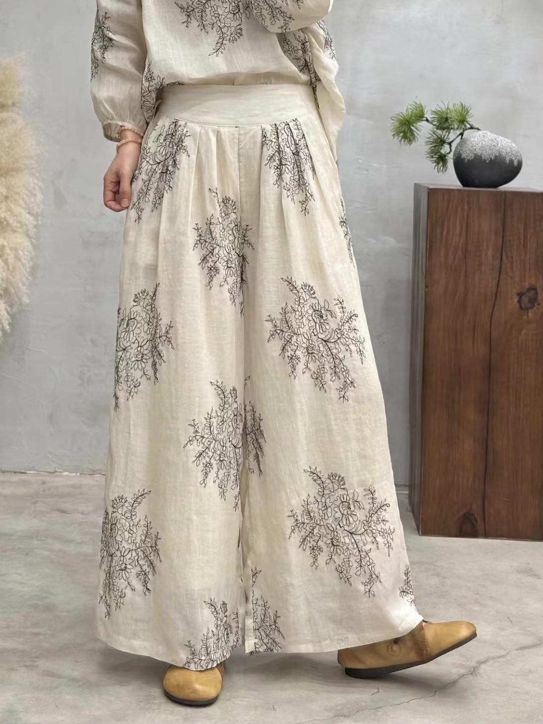 Camisa de cuello redondo con bordado industrial de ramio, estilo retro artístico, para mujer, primavera 2025