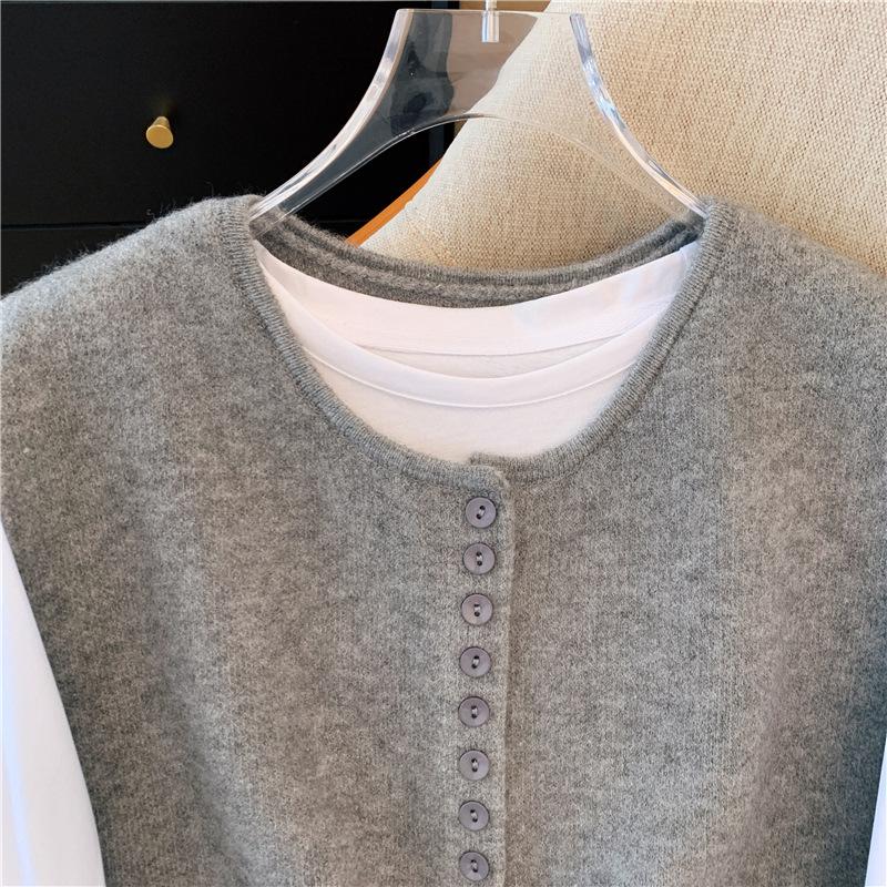 Chaleco tipo cárdigan de punto con cuello redondo estilo Chanel para mujer, otoño e invierno, nuevo, elegante, ajustado, apilado, para uso exterior.
