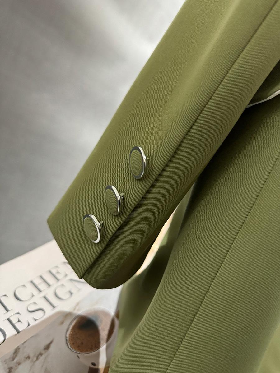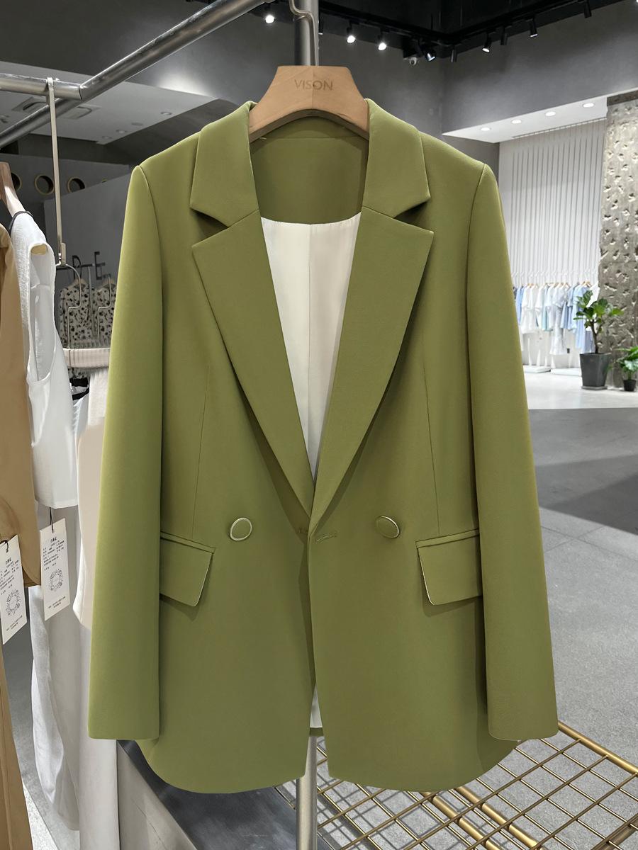 Chaqueta de traje elegante verde de alta gama para mujer, primavera 2025, nueva diosa, estilo occidental, adelgazante, traje pequeño, traje de otoño.
