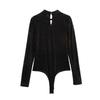 Moda transfronteriza europea y americana Joker color sólido cuello redondo flor quemada manga larga mono 2025 primavera nuevo B481886