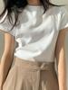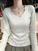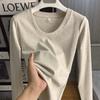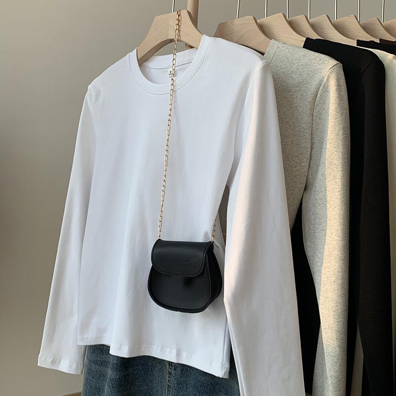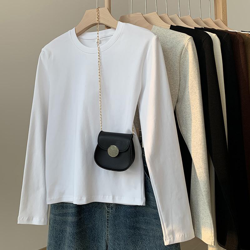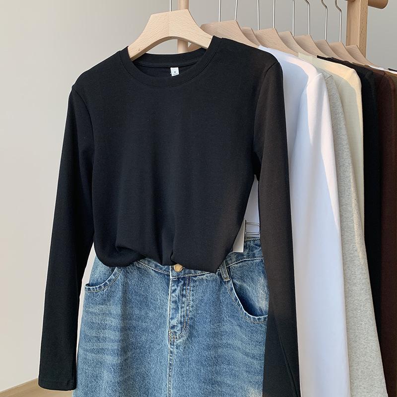 Camiseta blanca de manga larga de algodón con hombros descubiertos para mujer, top informal de otoño, de corte entallado, básica y apilada.