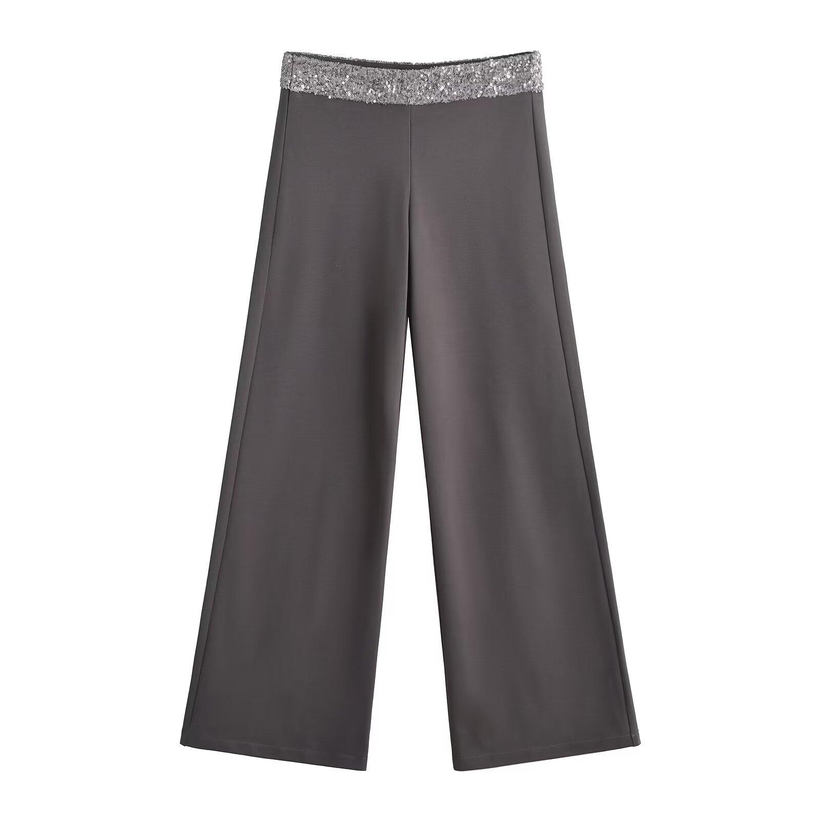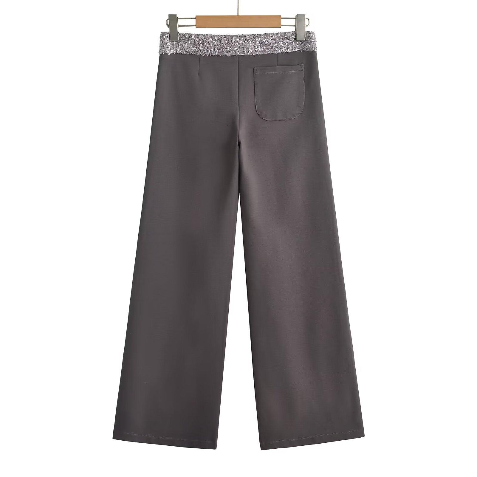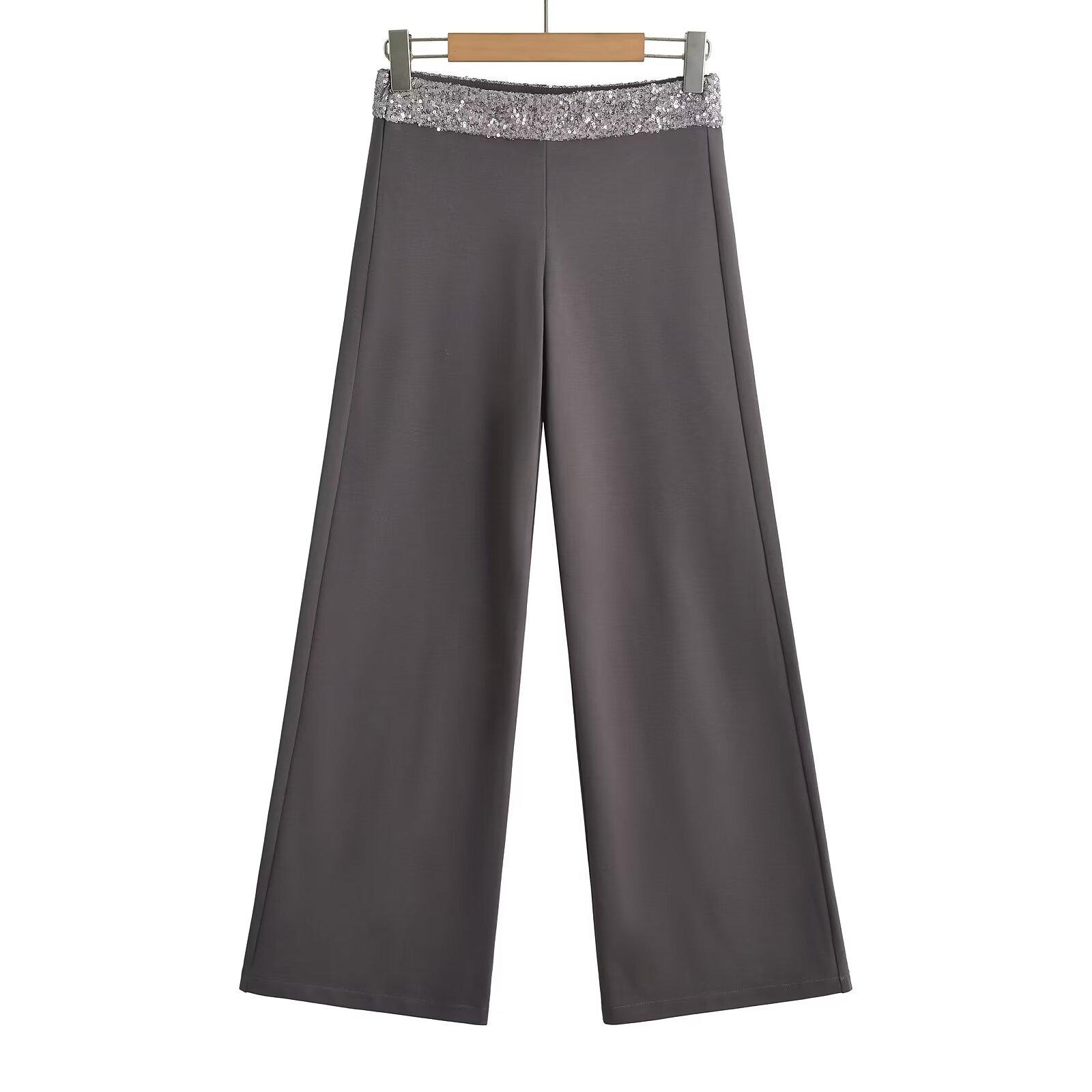 Pantalones rectos holgados con cintura alta y diseño de Sense para mujer, novedad de otoño 2024, pantalones casuales ajustados con lentejuelas, pantalones de vestir para mujer