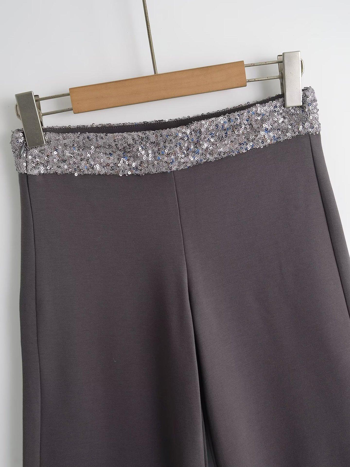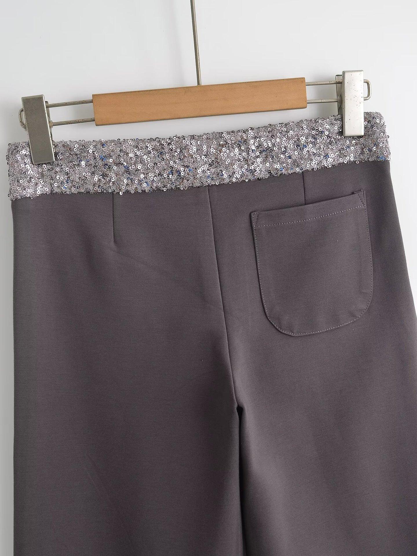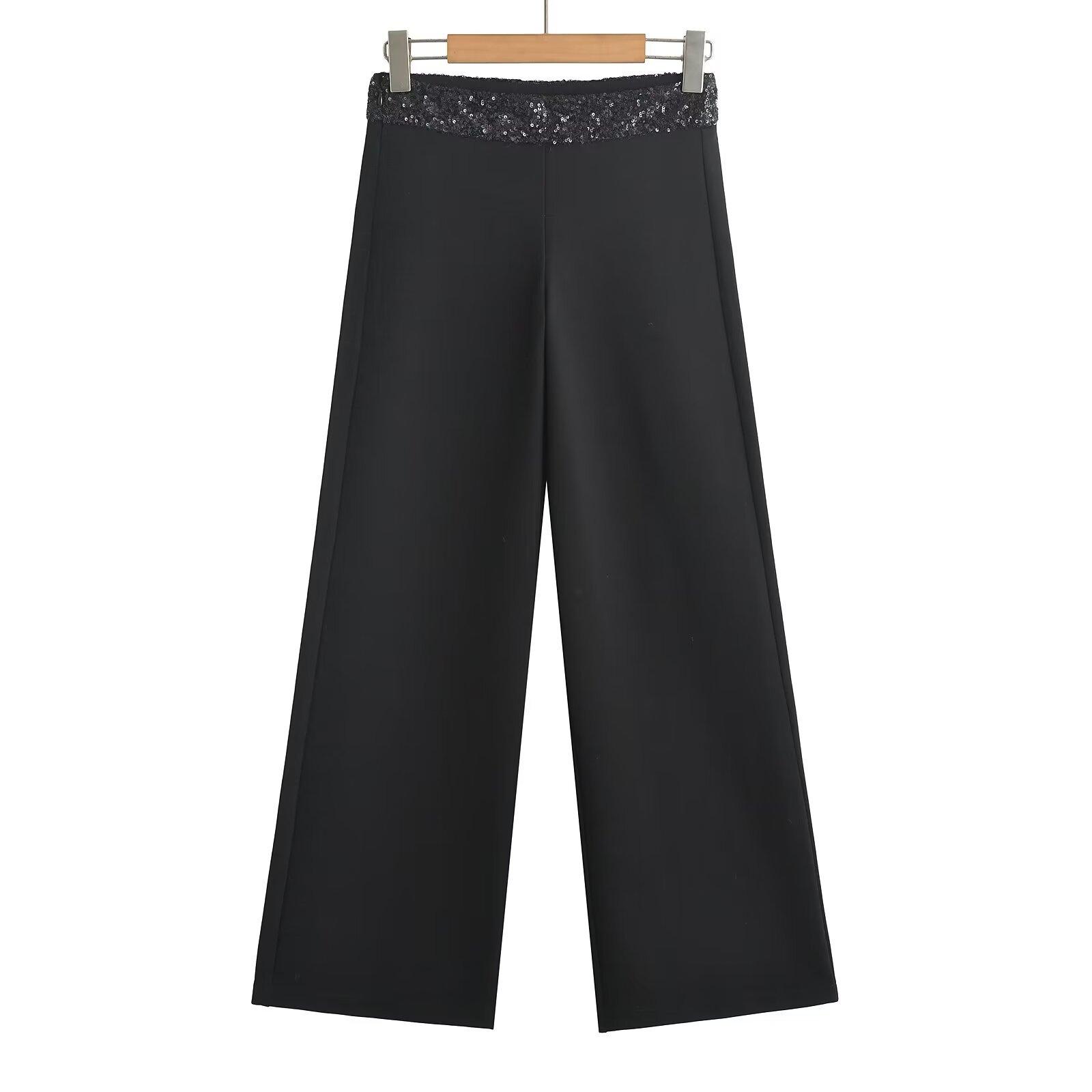 Pantalones rectos holgados con cintura alta y diseño de Sense para mujer, novedad de otoño 2024, pantalones casuales ajustados con lentejuelas, pantalones de vestir para mujer