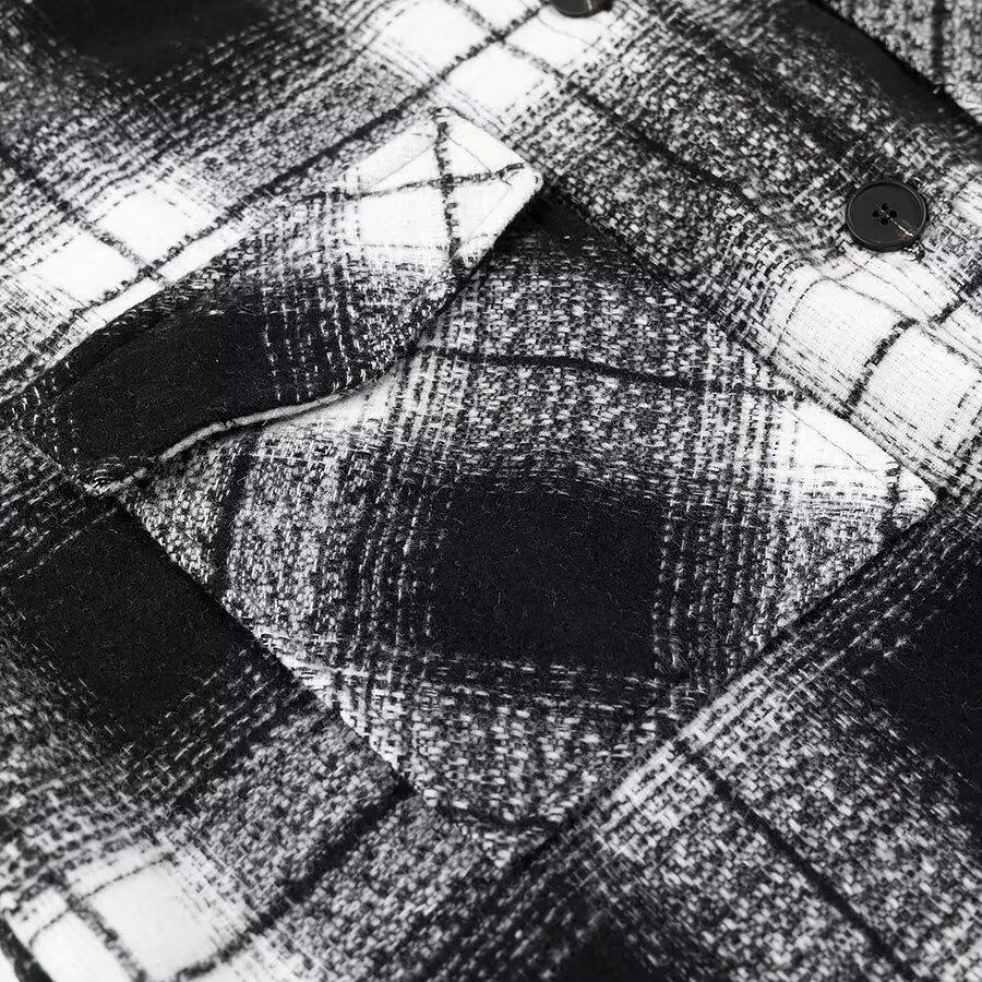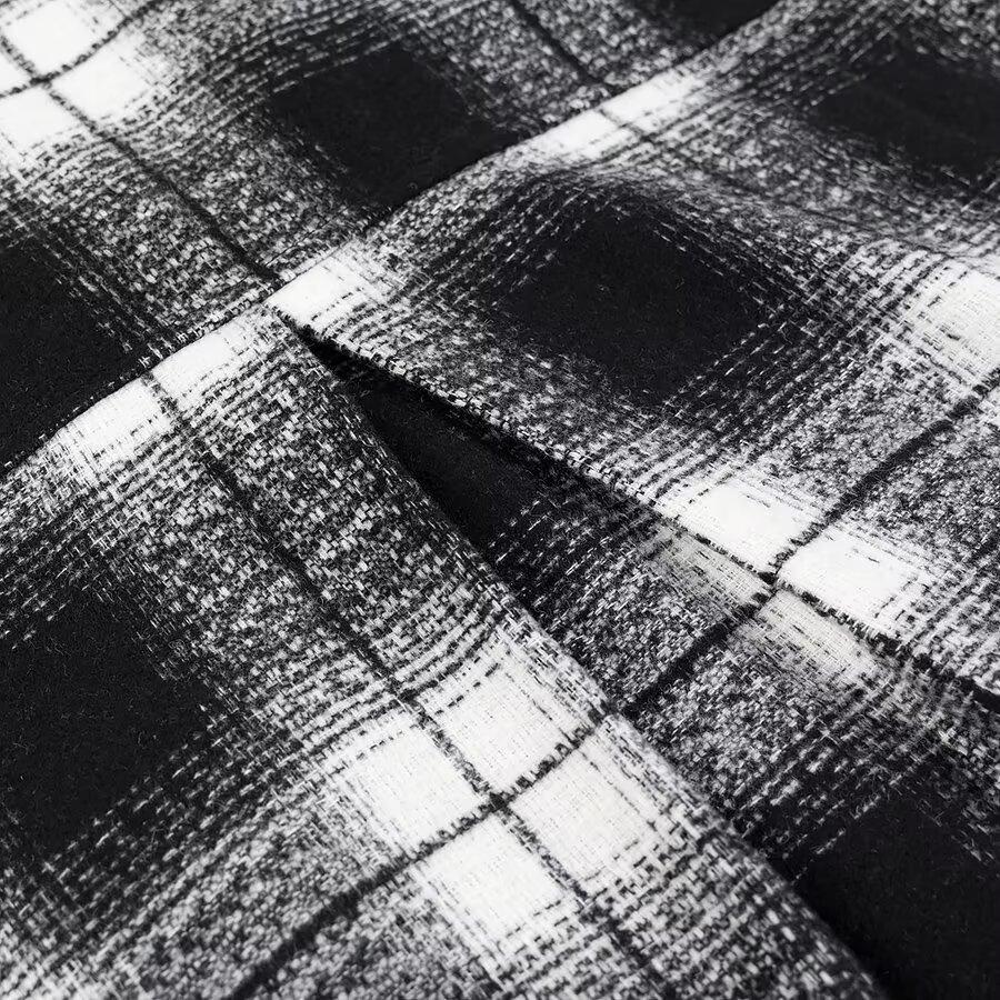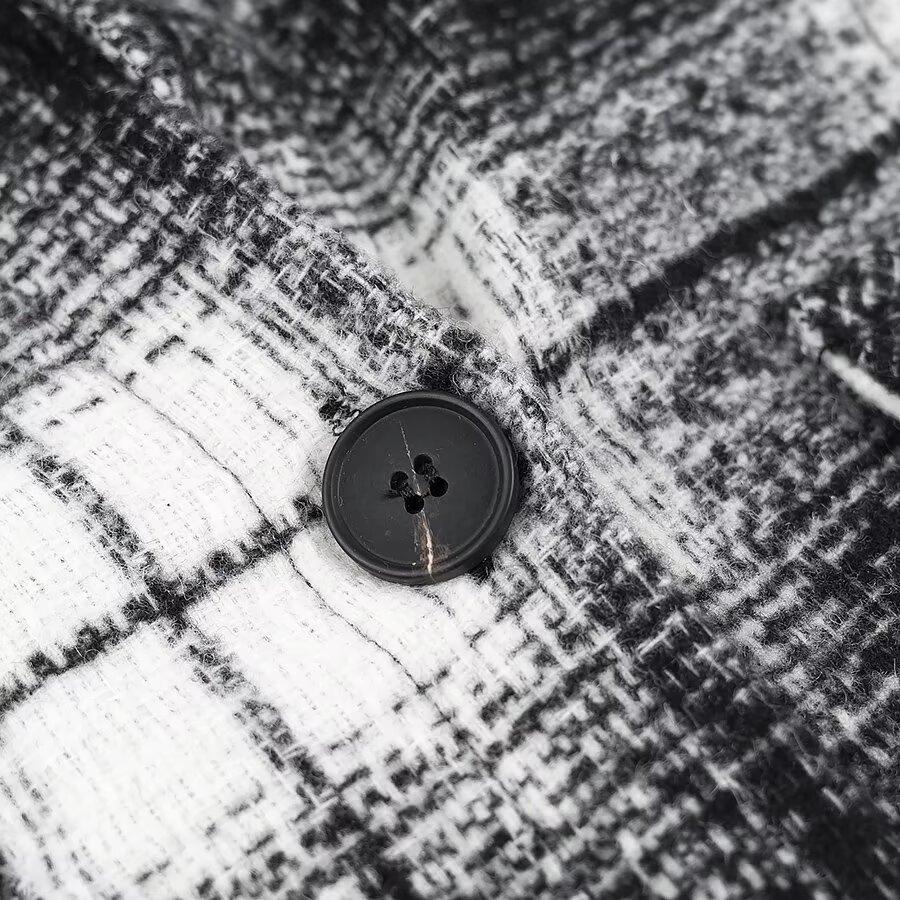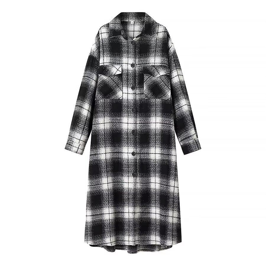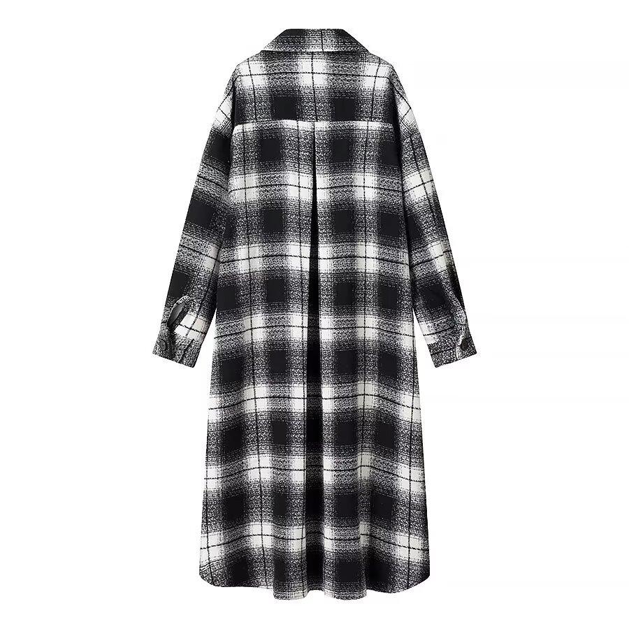 Abrigo largo a cuadros blanco y negro nuevo para mujer europea y americana de otoño e invierno 2024 de comercio exterior transfronterizo de Amazon