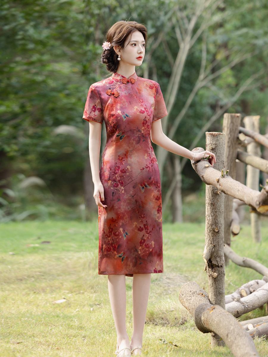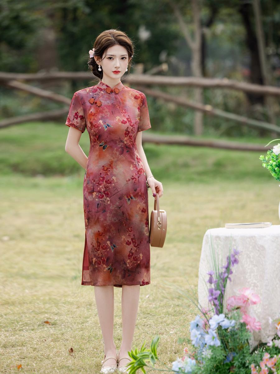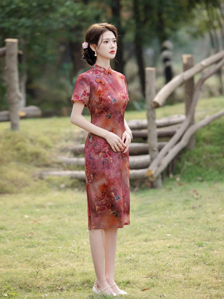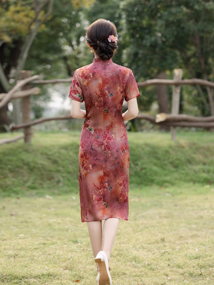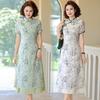 Vestido Cheongsam Vintage Elegante Verano 2025 Nuevo Vestido Estampado Estilo Chino Ropa de Diario para Madres Adelgazante Cubierta de Carne