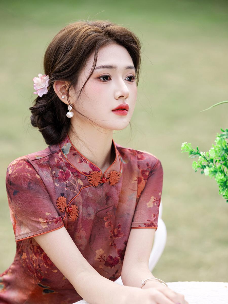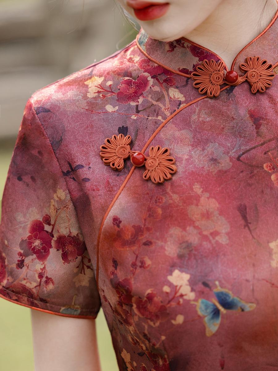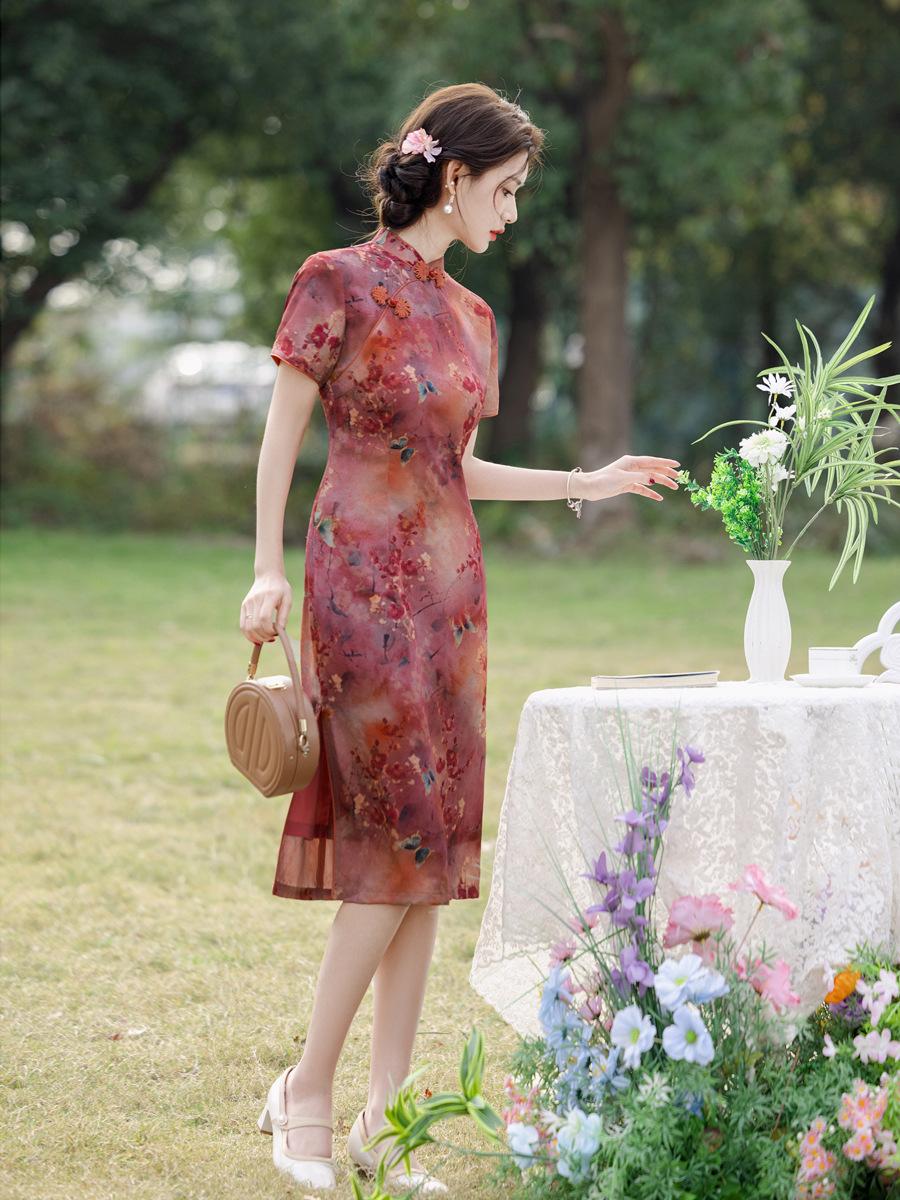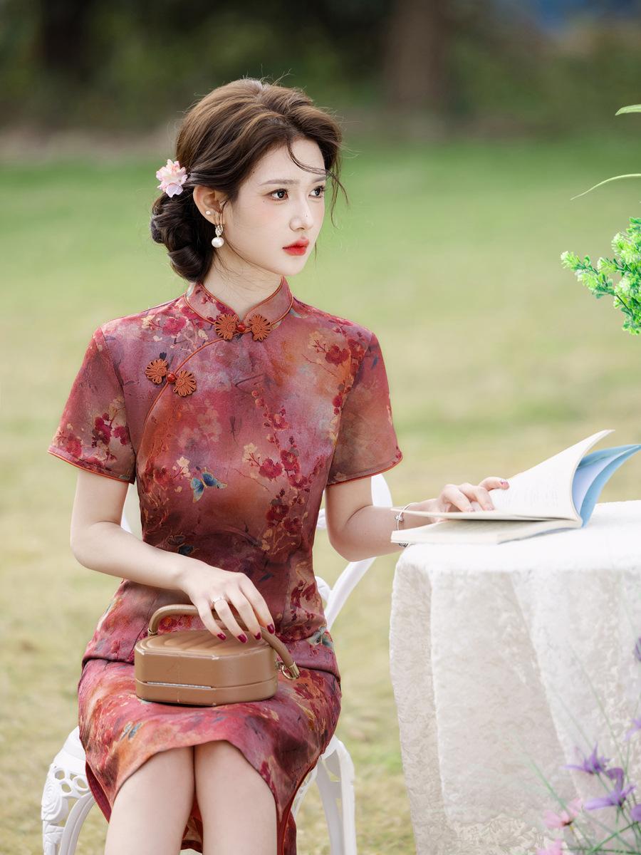 Vestido Cheongsam Vintage Elegante Verano 2025 Nuevo Vestido Estampado Estilo Chino Ropa de Diario para Madres Adelgazante Cubierta de Carne