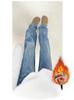 Pantalones vaqueros rectos, estrechos y gruesos con forro polar de color claro para mujer, nuevos pantalones de invierno holgados de cintura alta y pierna ancha adelgazantes.
