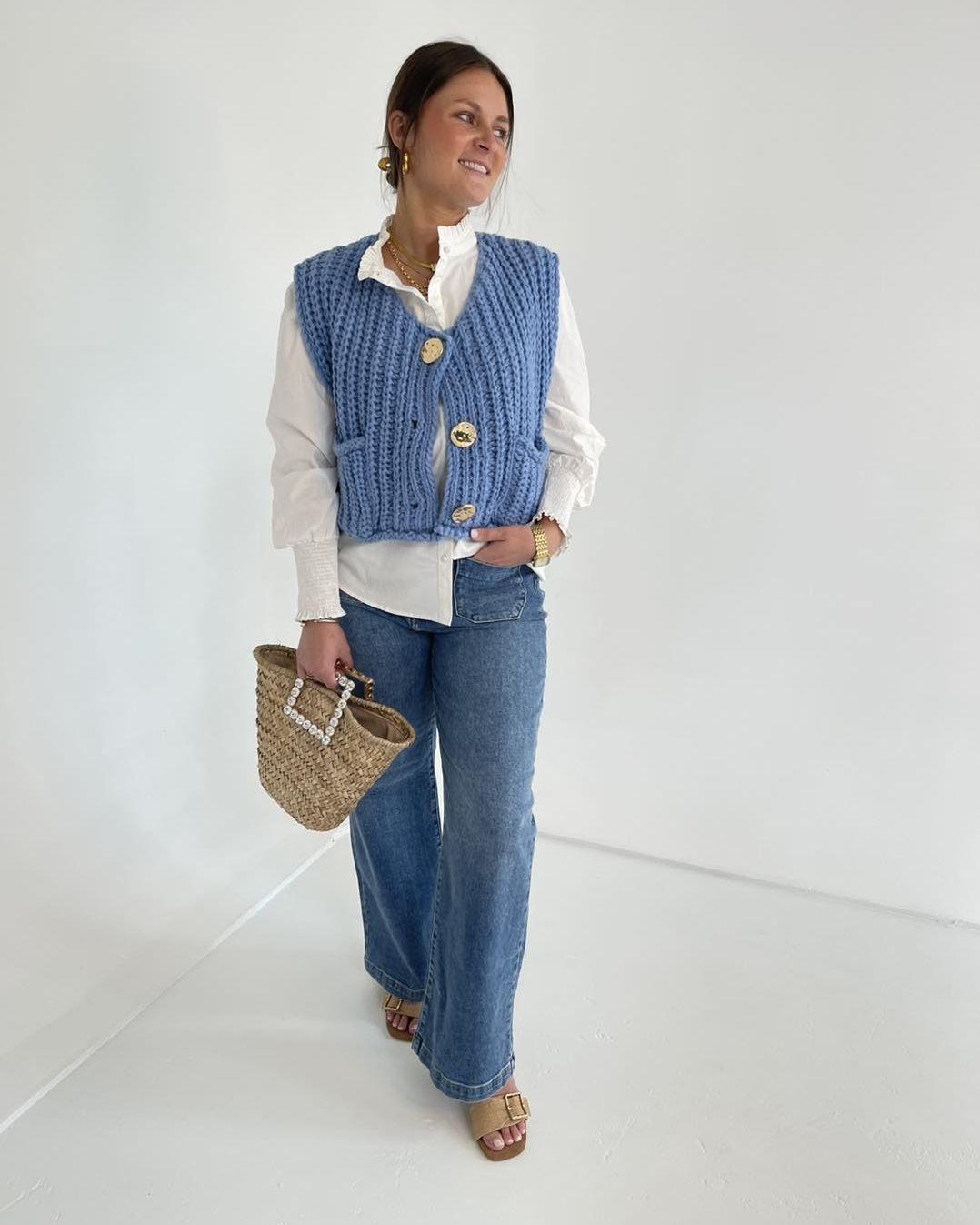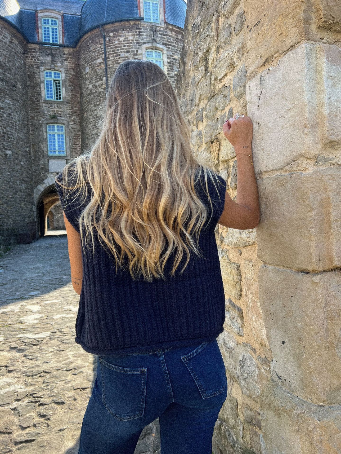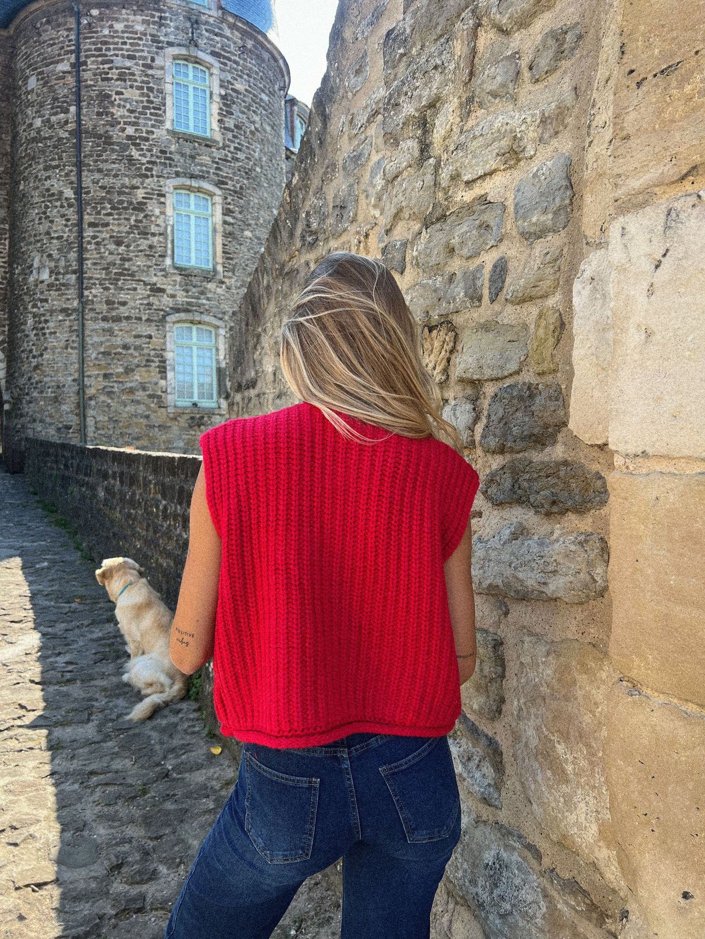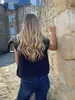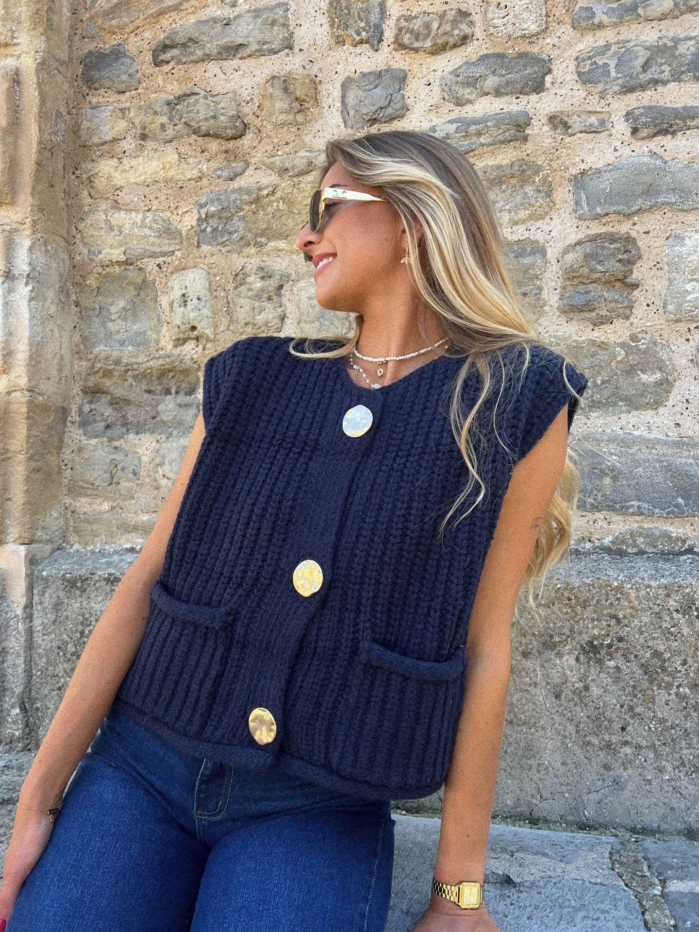 Chaleco de Moda Europeo y Americano para Mujer Nuevo Transfronterizo con Bolsillo, sin Mangas, Corto, de Punto