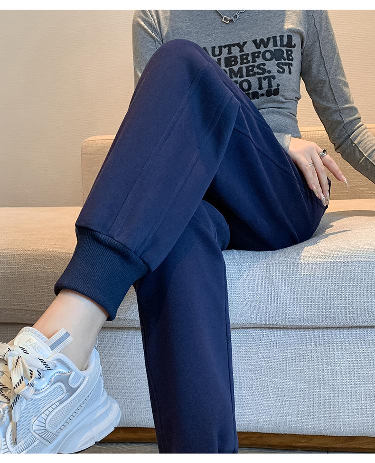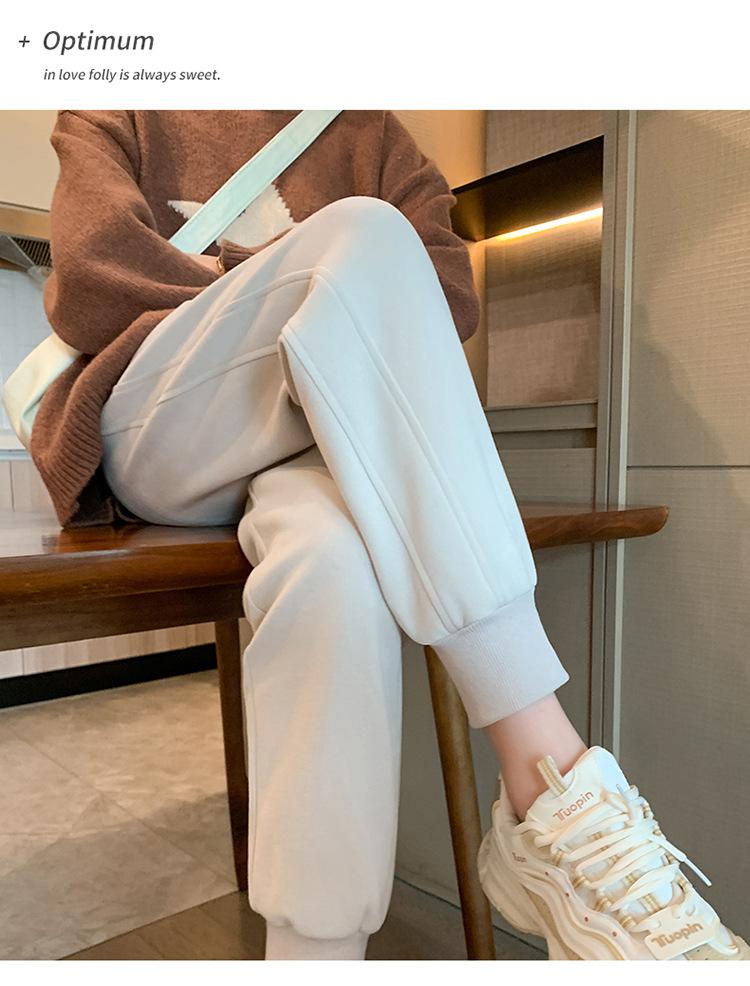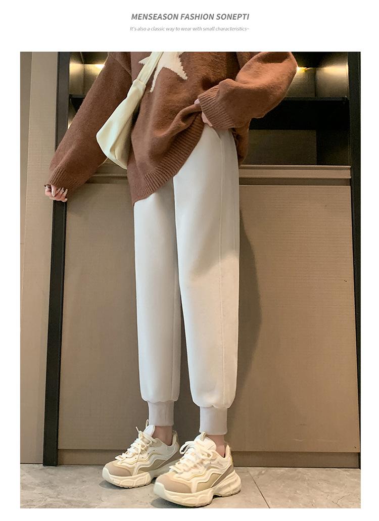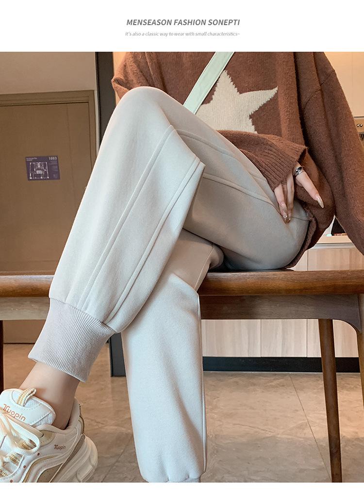 Pantalones deportivos blancos con forro polar para mujer, primavera y otoño 2025, nuevos pantalones de cintura alta a prueba de viento, pantalones casuales gruesos de invierno.