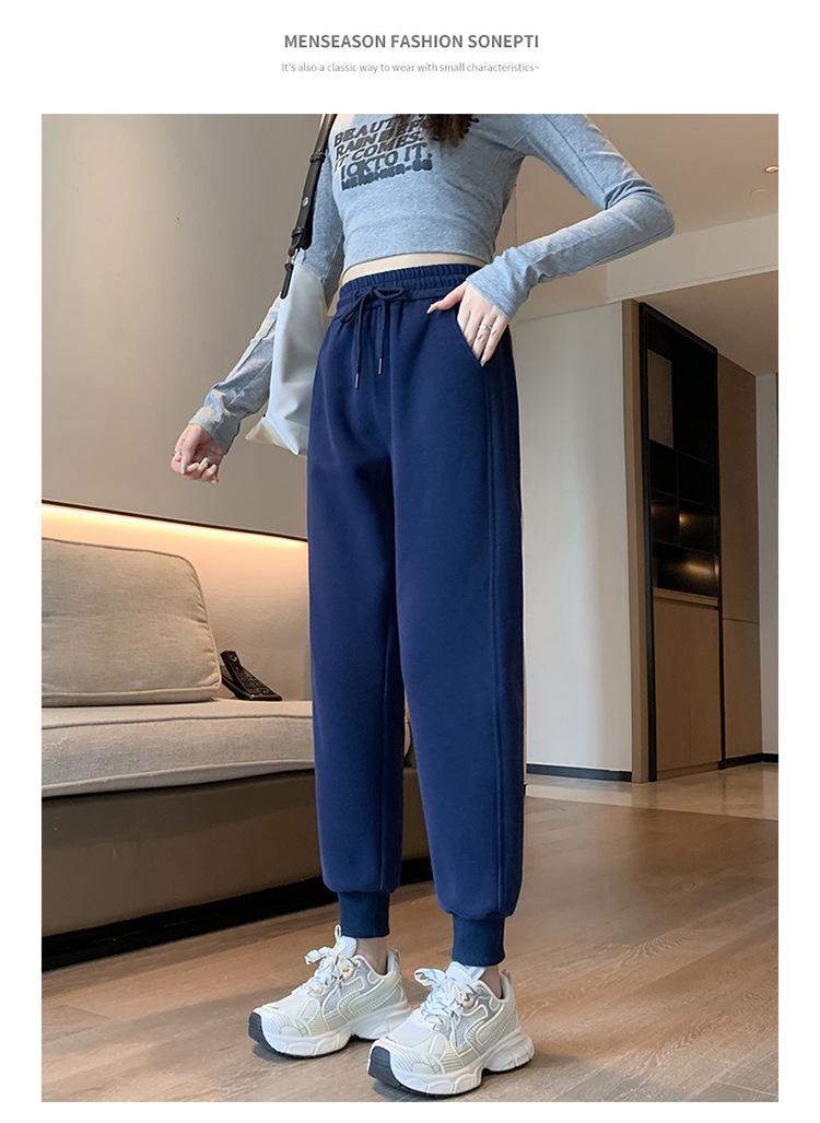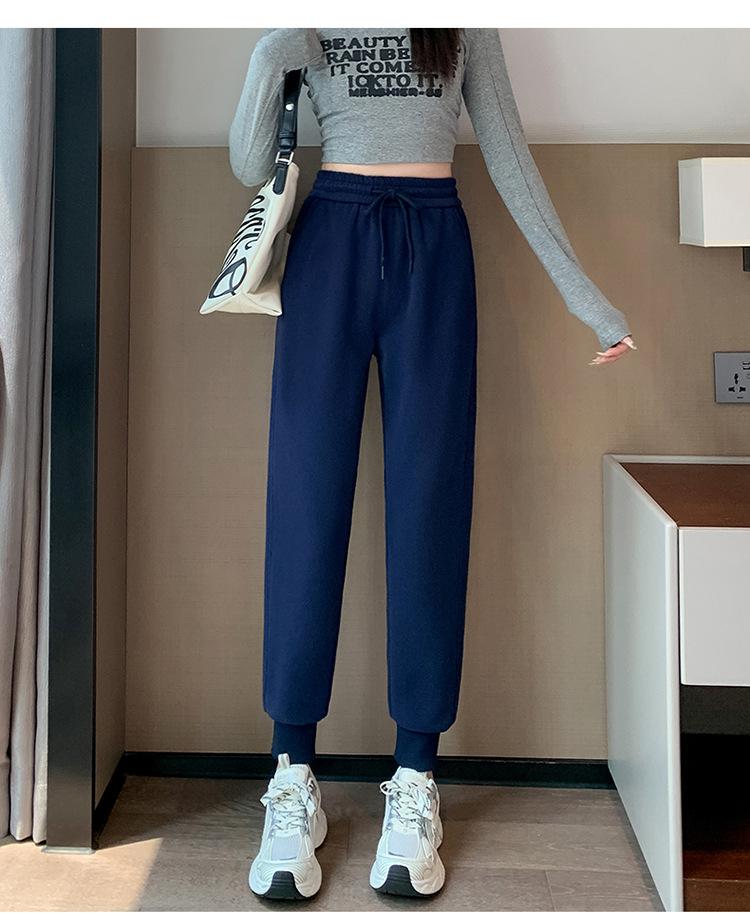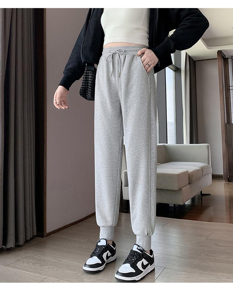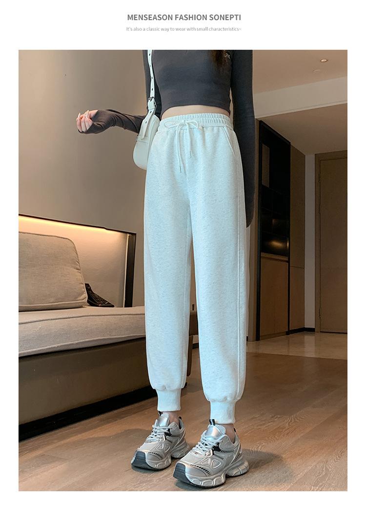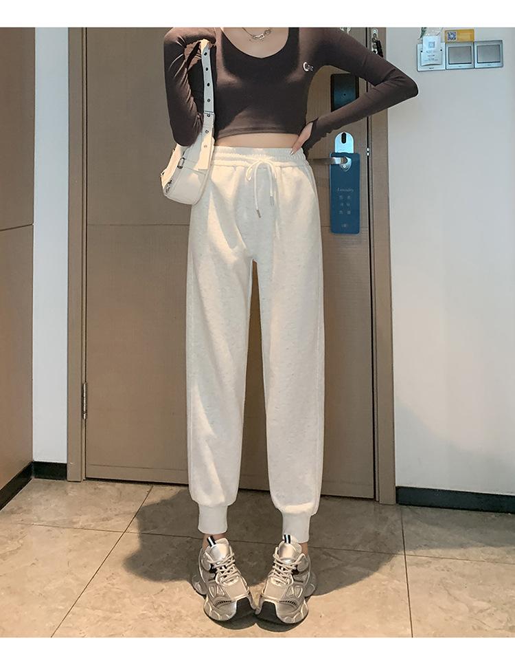 Pantalones deportivos blancos con forro polar para mujer, primavera y otoño 2025, nuevos pantalones de cintura alta a prueba de viento, pantalones casuales gruesos de invierno.