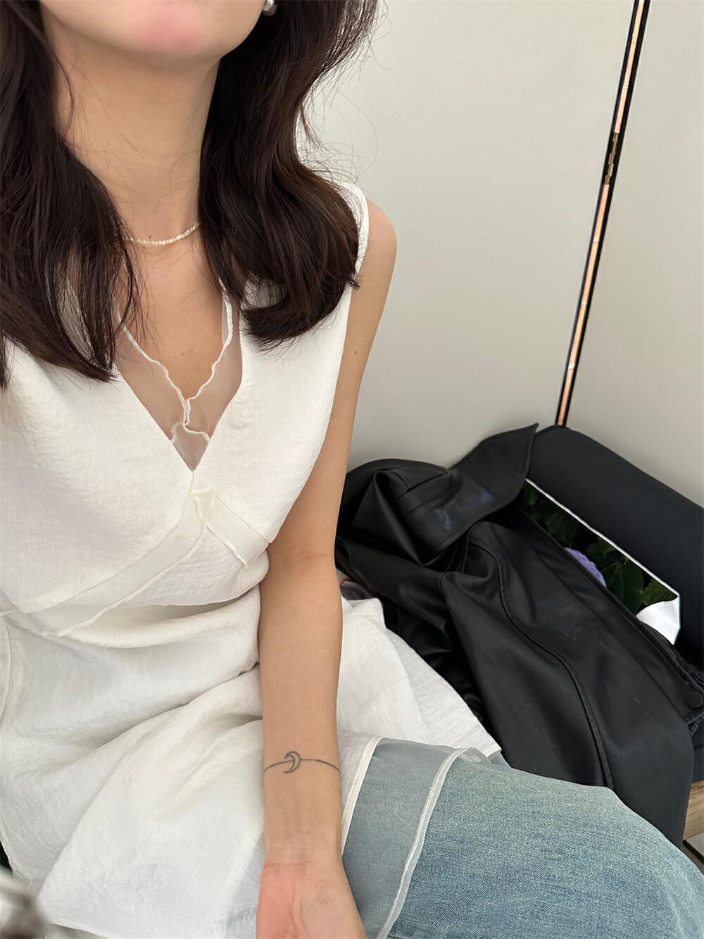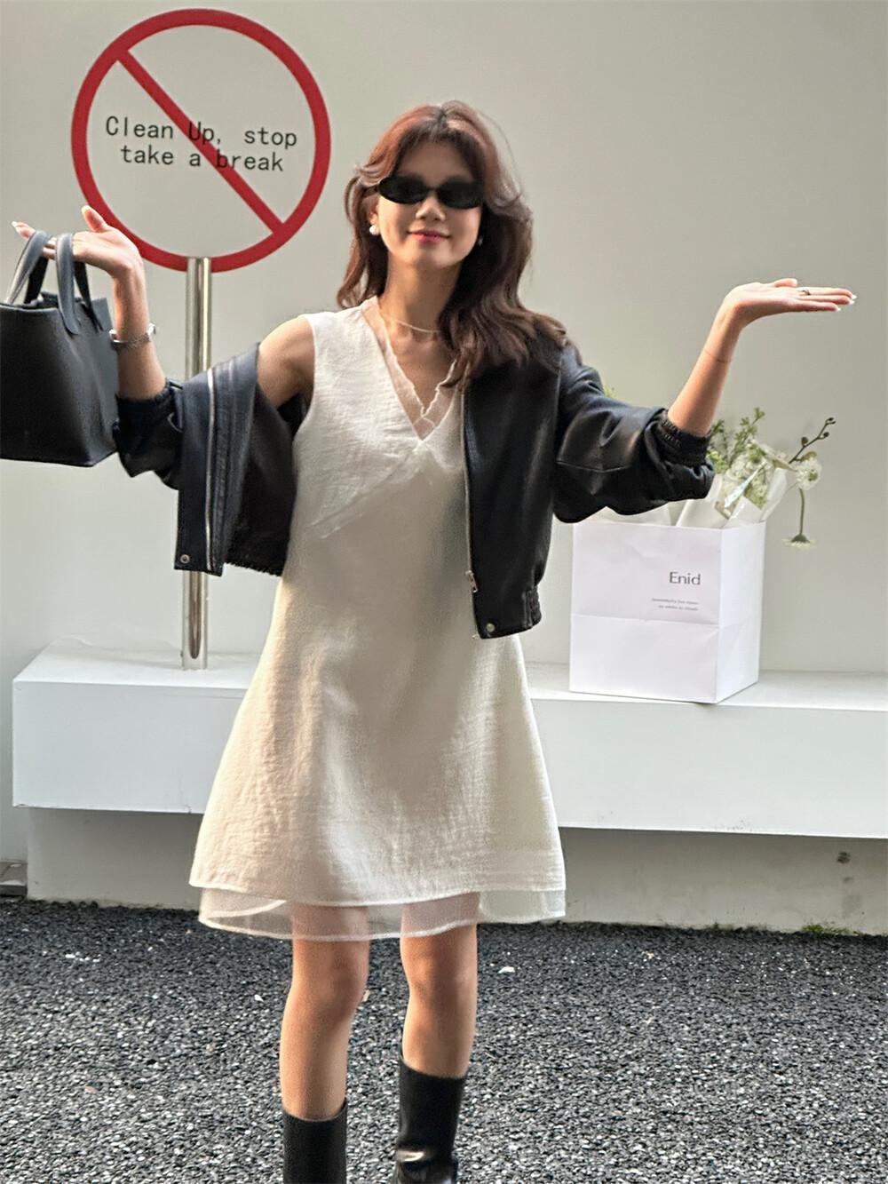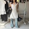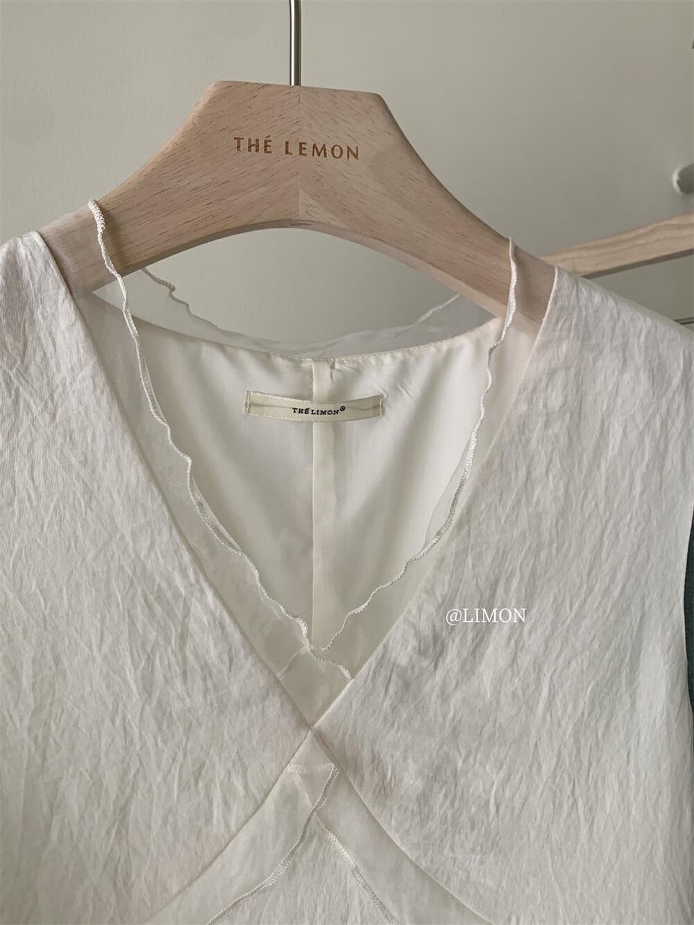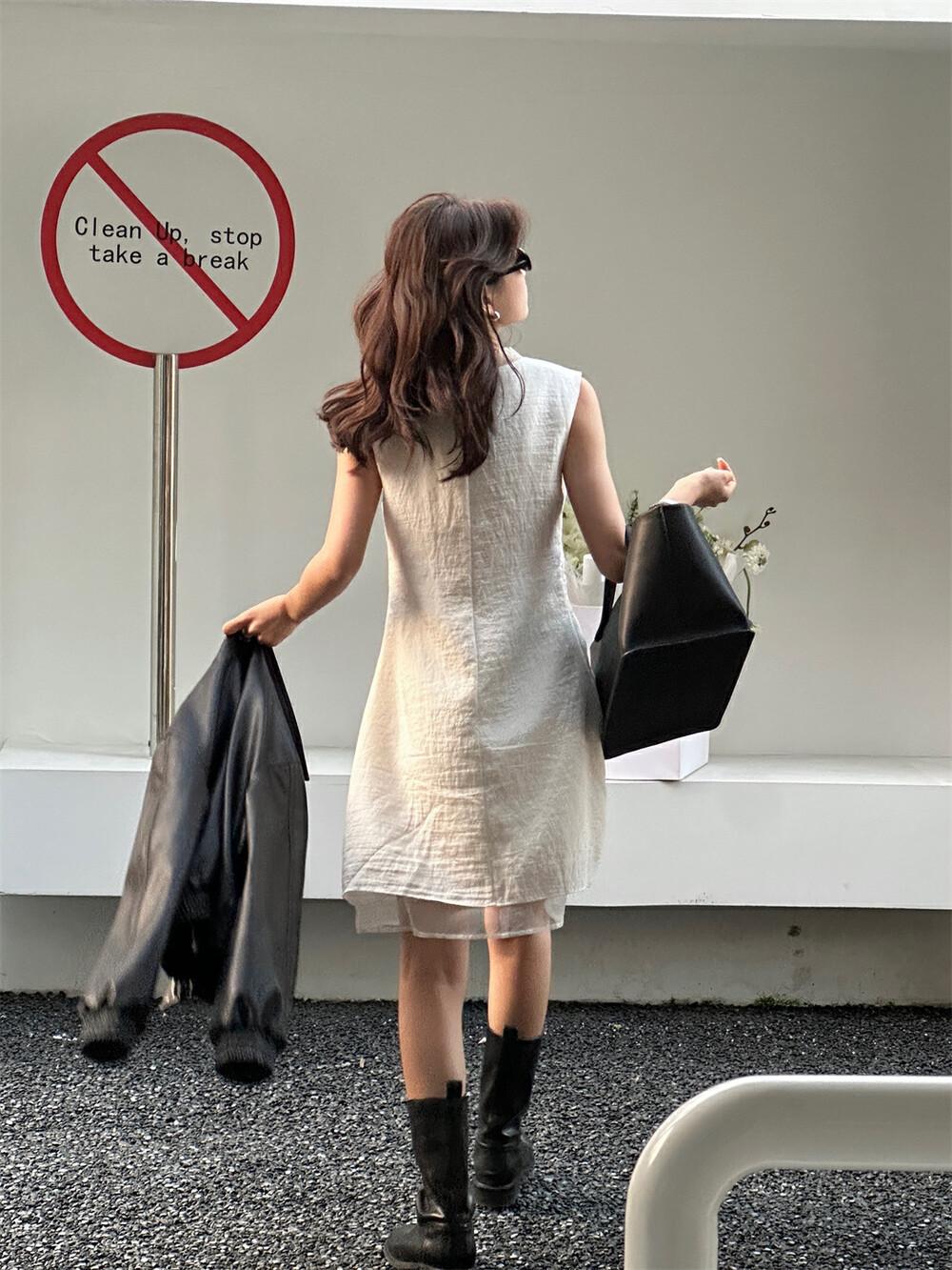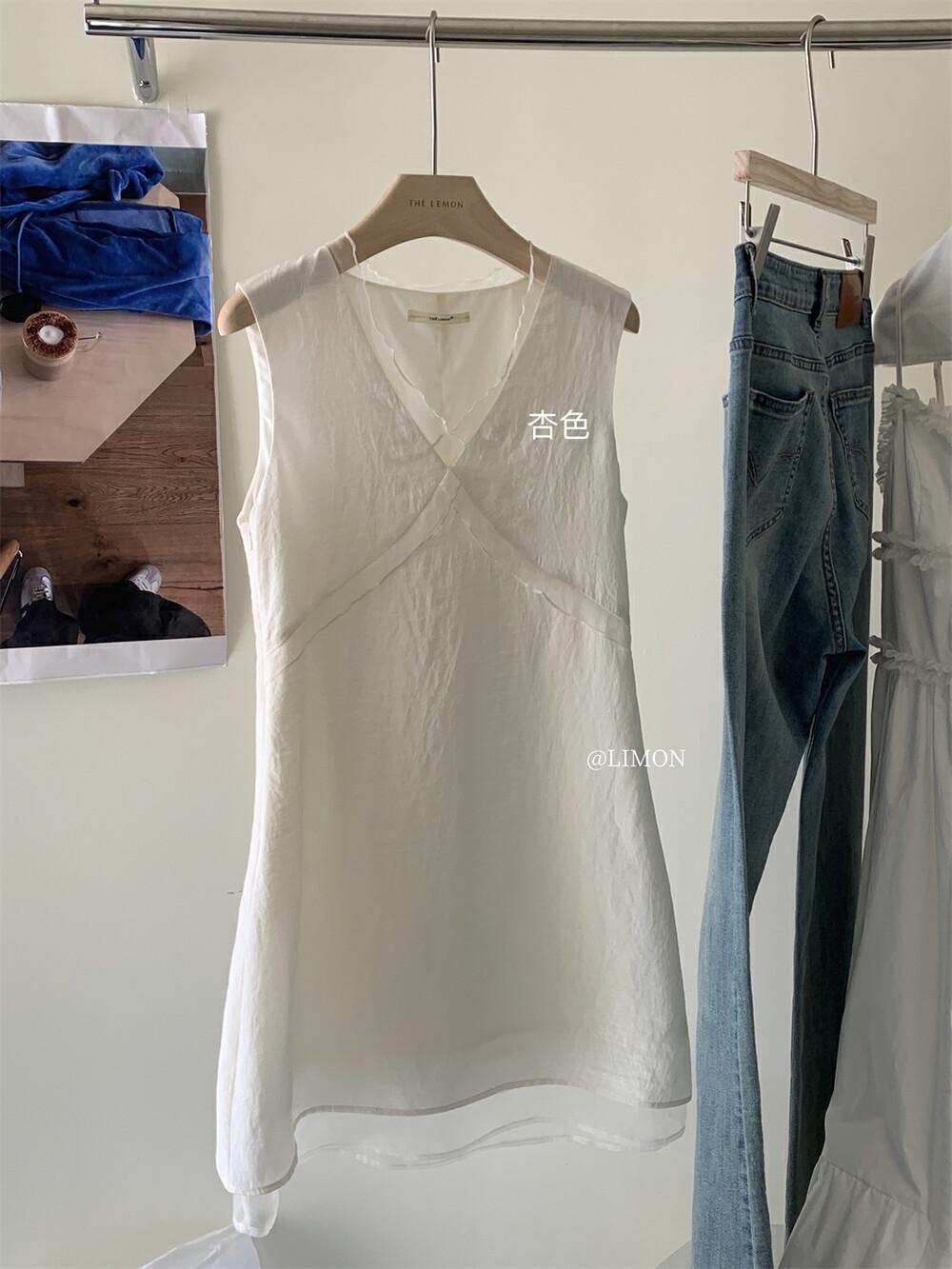 EL LIMÓN Té Verde Limón Primavera y Verano Nuevo Vestido Chaleco de Punto de Malla con Cremallera Lateral Cuello en V para Mujer Falda Línea A