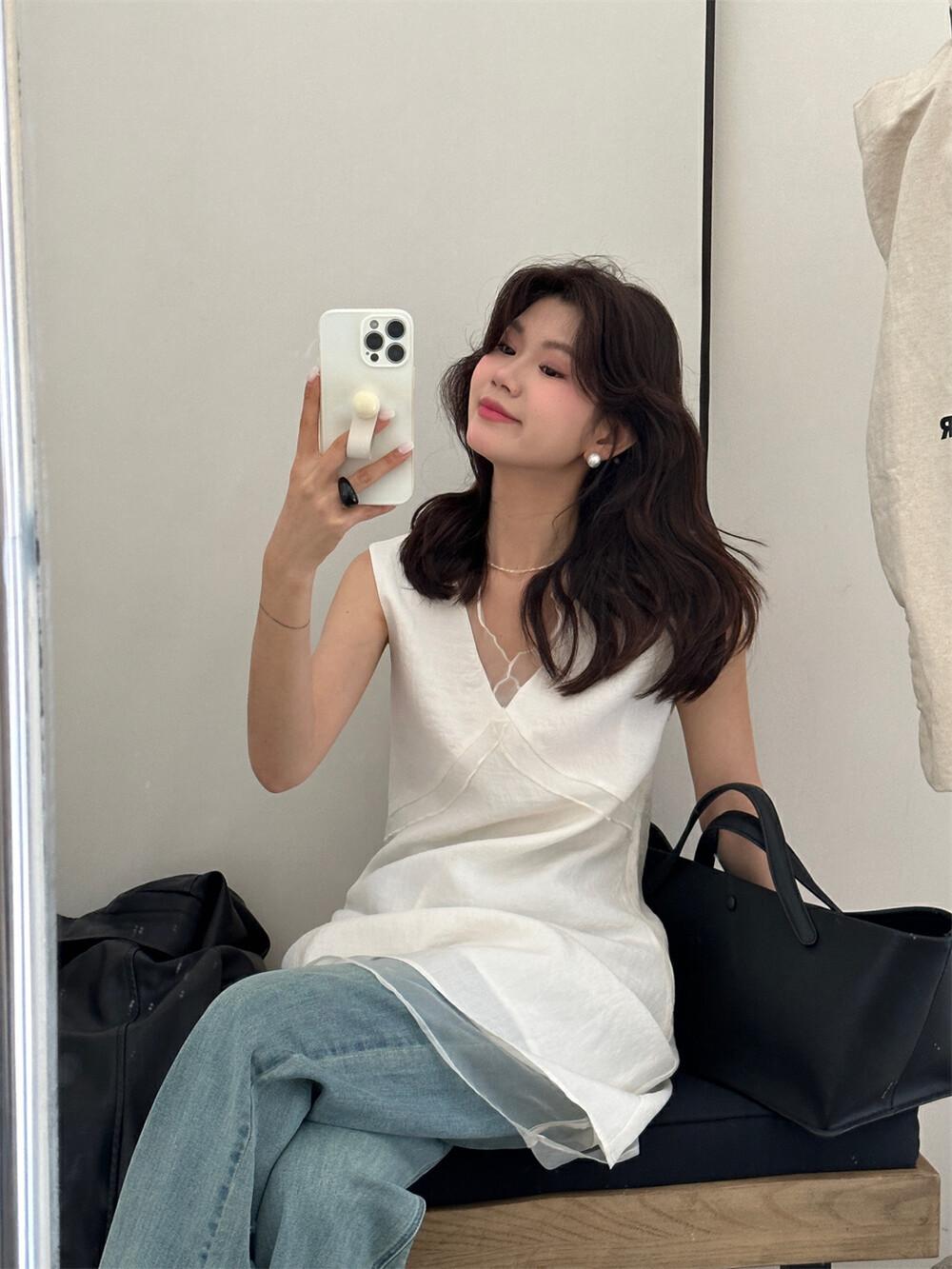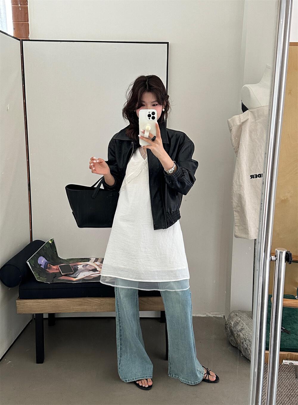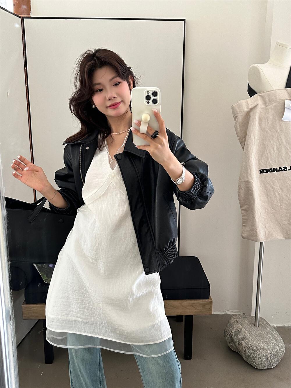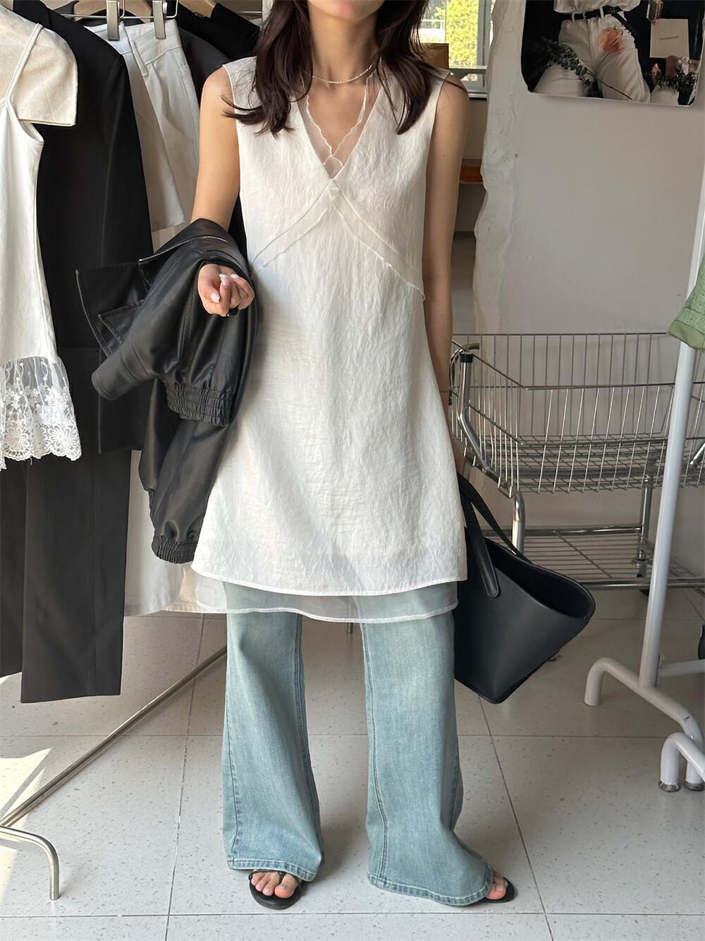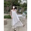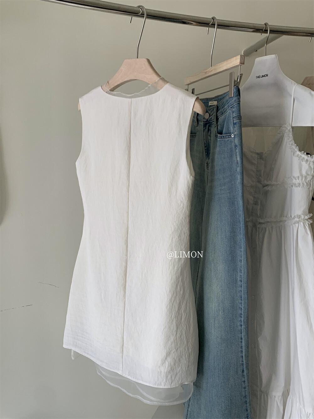 EL LIMÓN Té Verde Limón Primavera y Verano Nuevo Vestido Chaleco de Punto de Malla con Cremallera Lateral Cuello en V para Mujer Falda Línea A