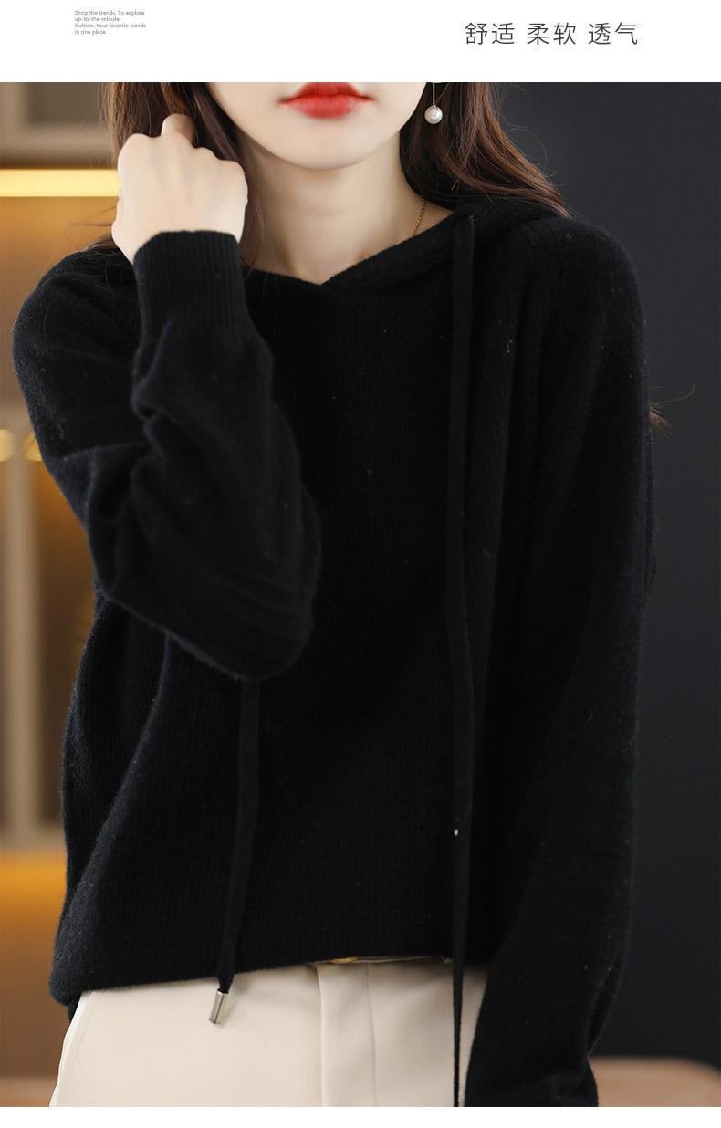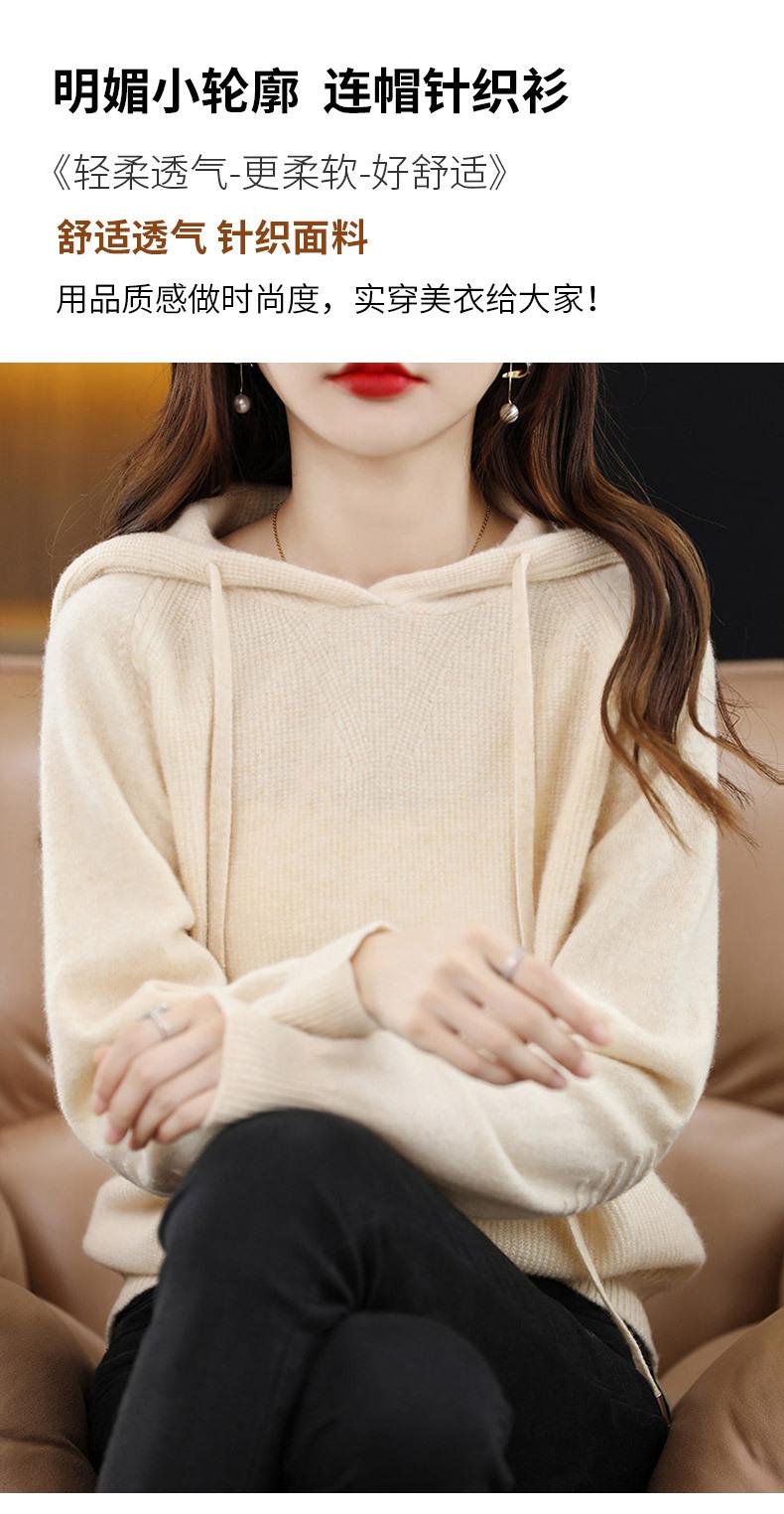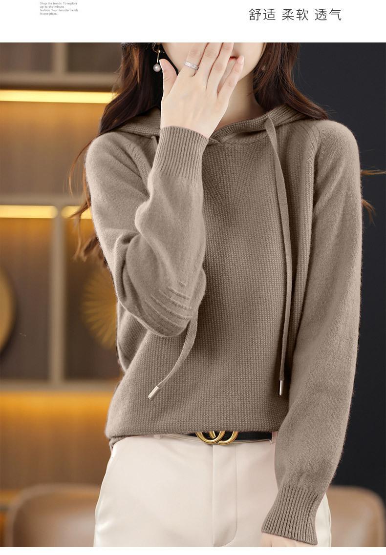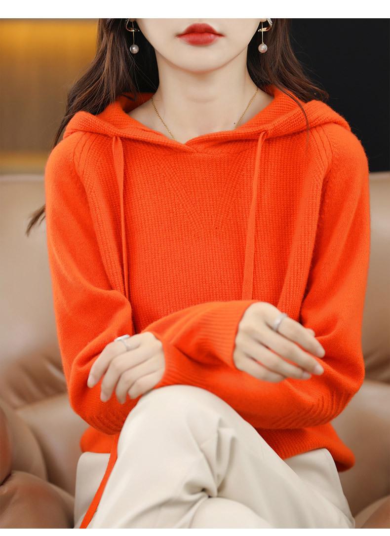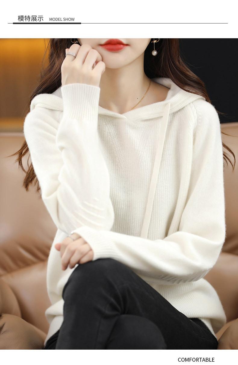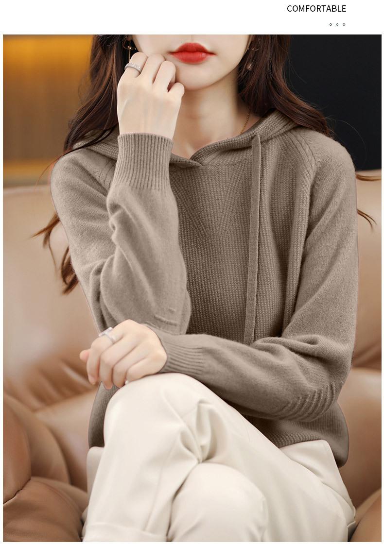 Suéter con capucha de punto grueso para primavera y otoño para mujer, estilo coreano, suelto, a la moda, base, chaqueta de lana sin cachemira, top