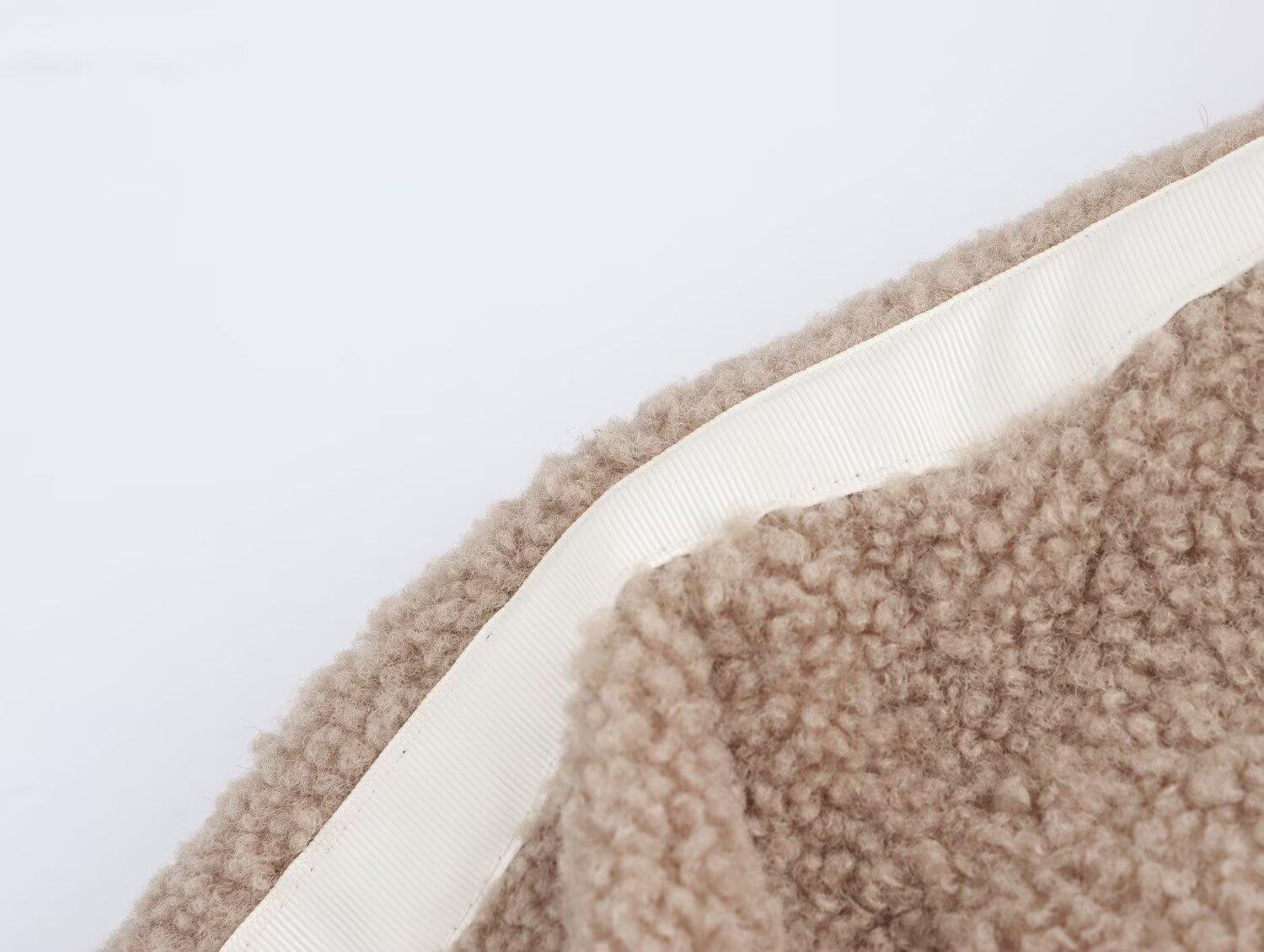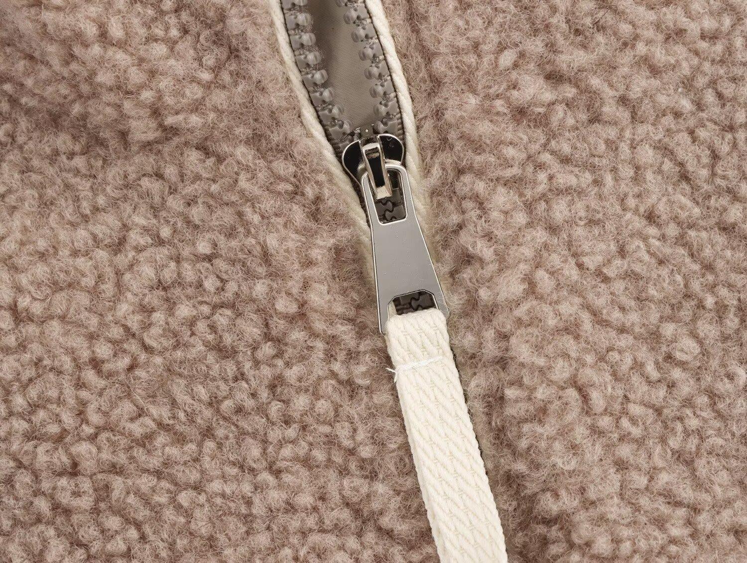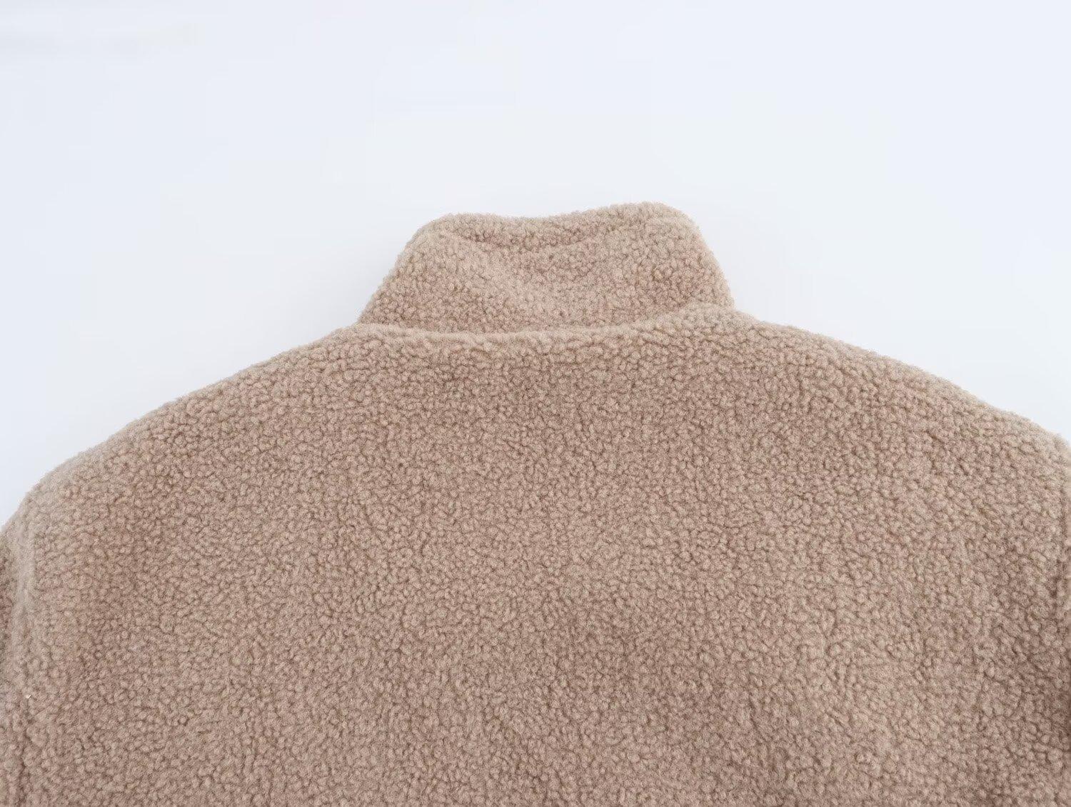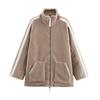Amazon comercio exterior transfronterizo ropa de mujer europea y americana 2024 primavera nuevo abrigo camello suelto con cremallera y tira lateral de lana de cordero